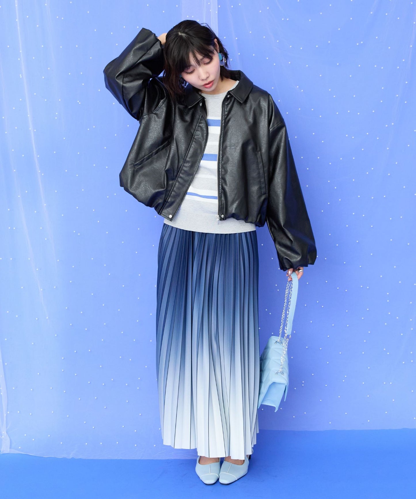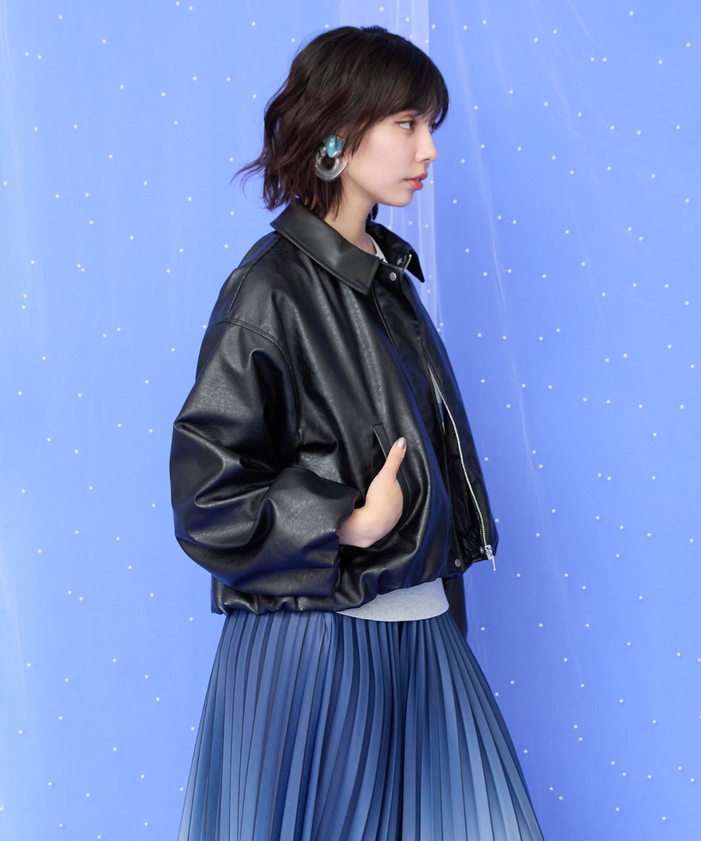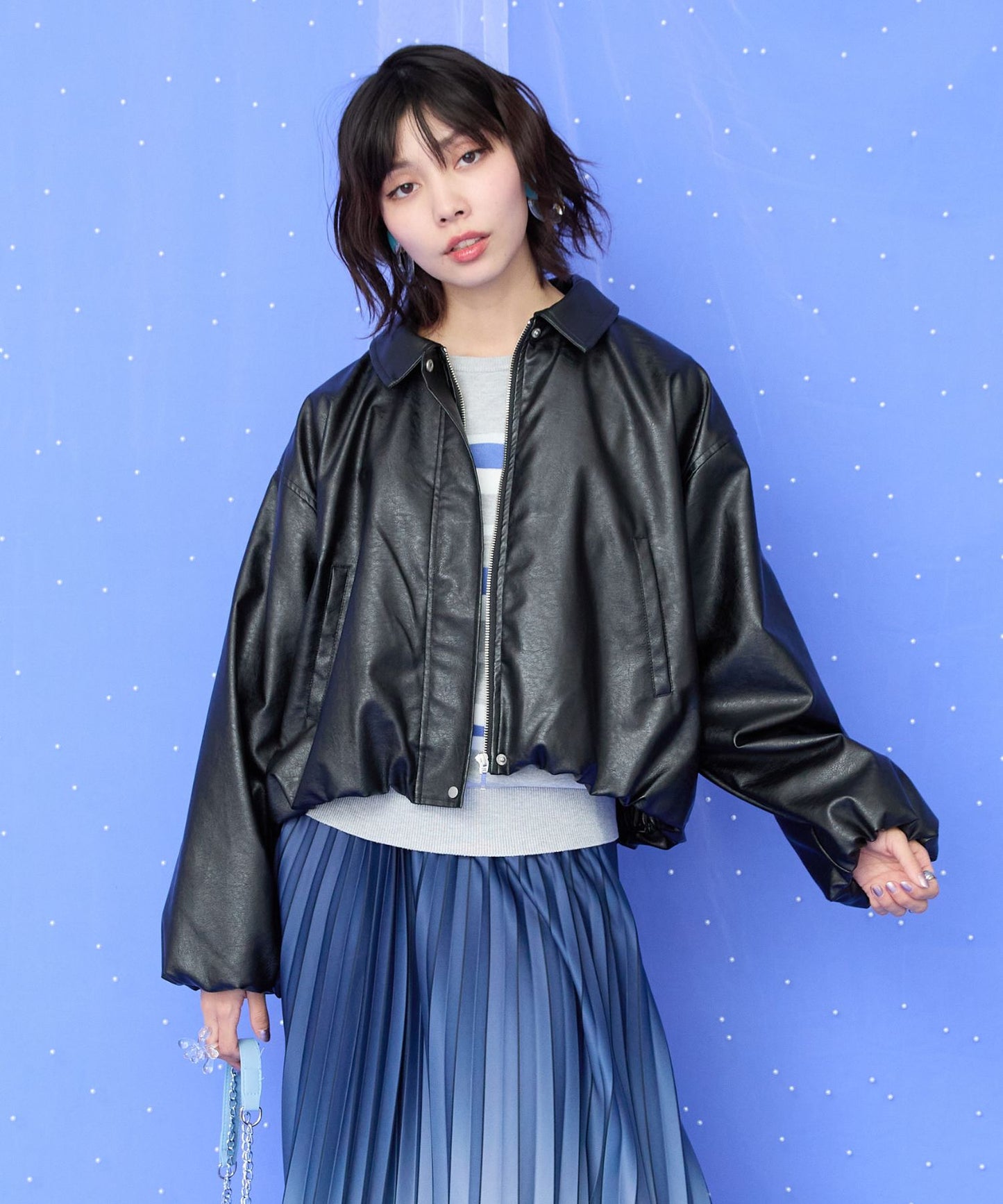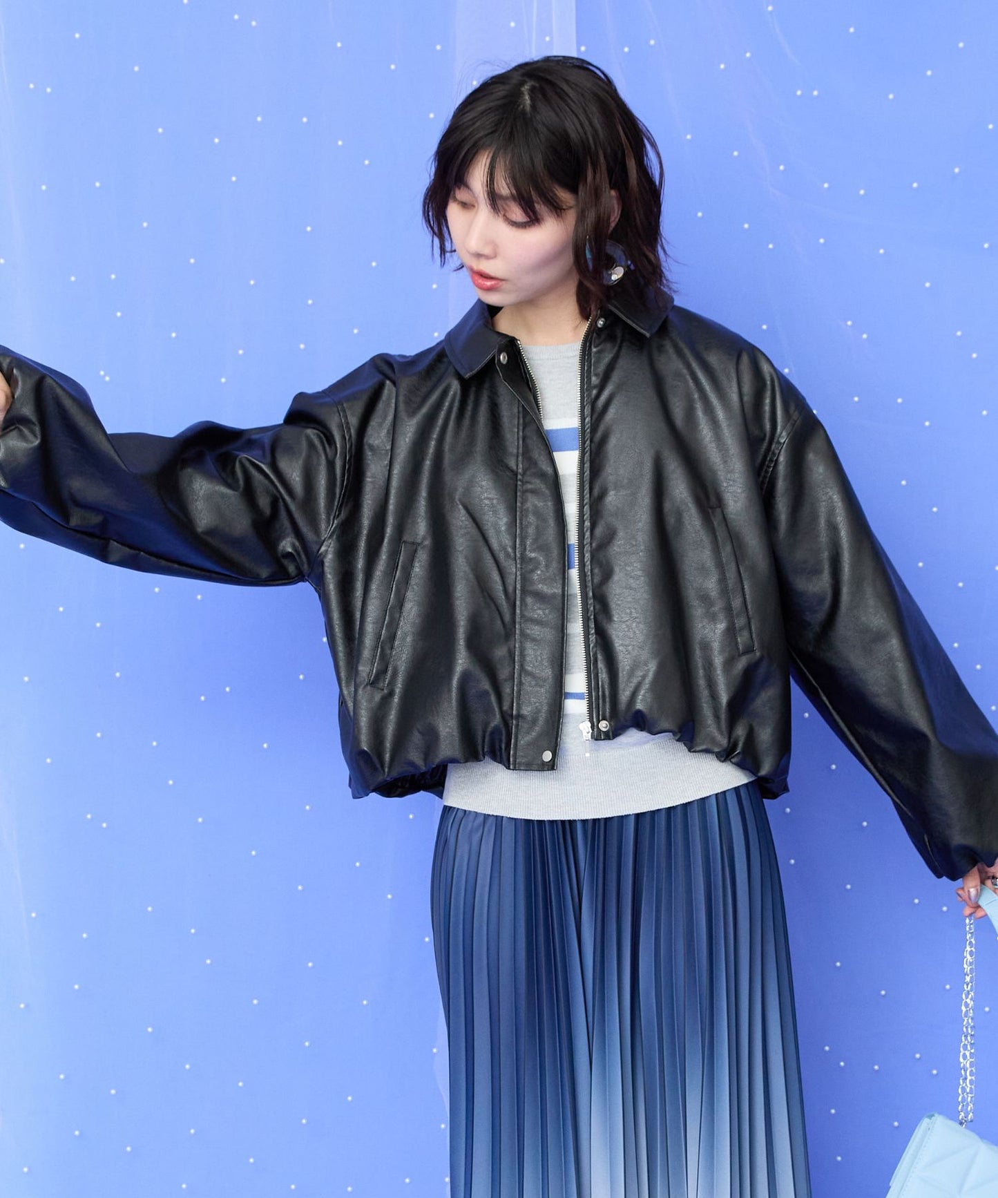 トレンド感あふれるクロップド丈のフェイクレザーブルゾン。