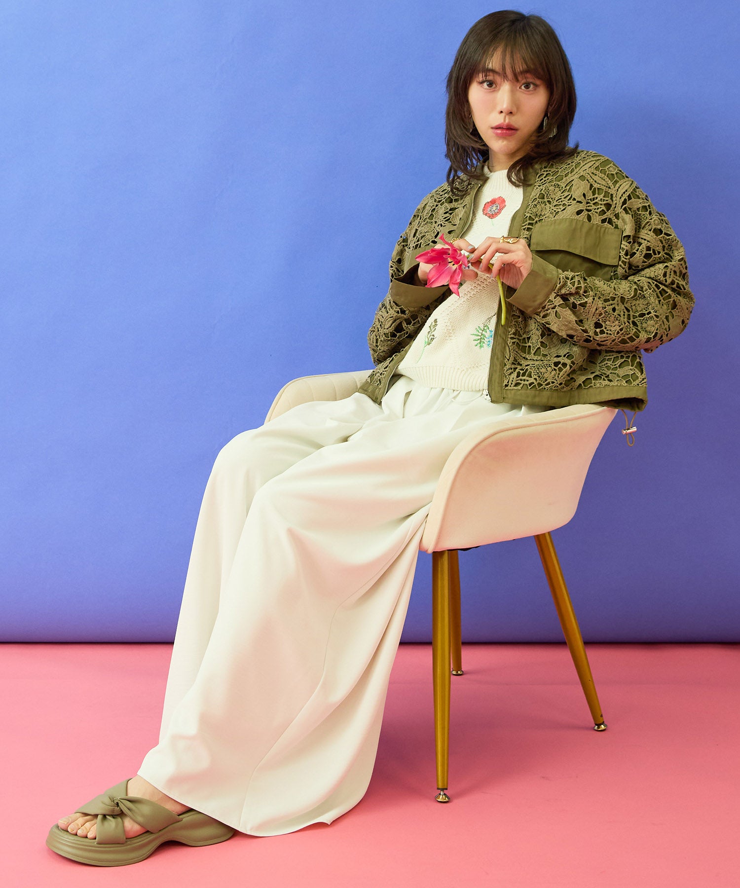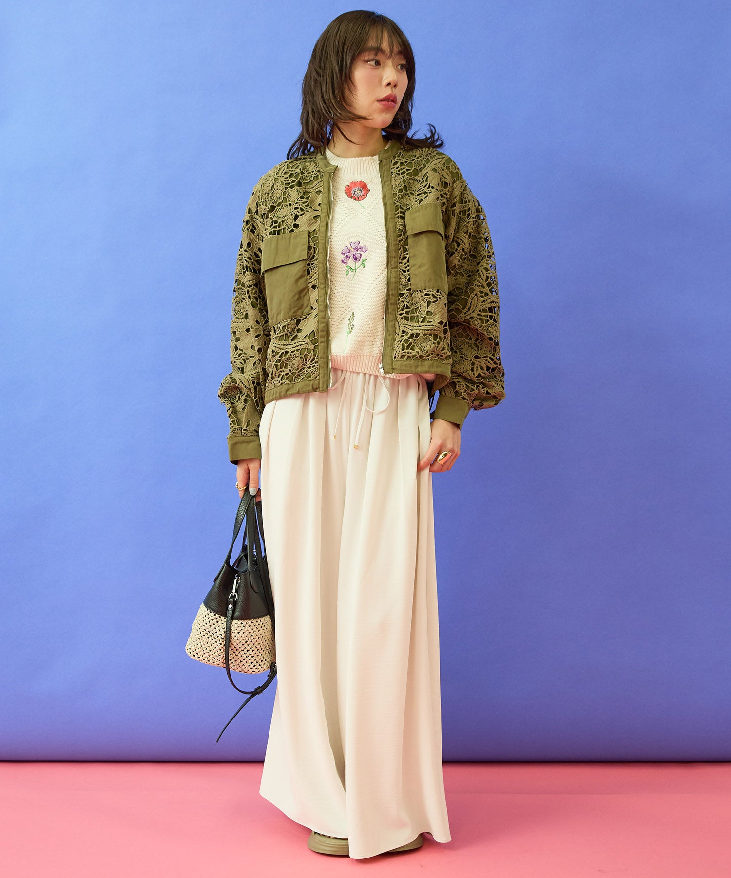 #ボタニカルレース #レースブルゾン #大人アウター #きれいめカジュアル #大人コーデ #春アウター #JETSETSOLOPLUS