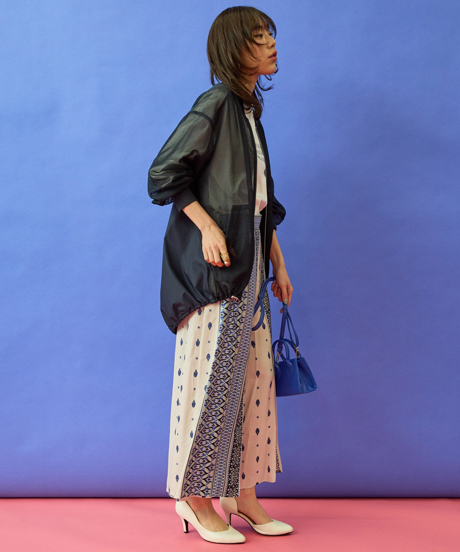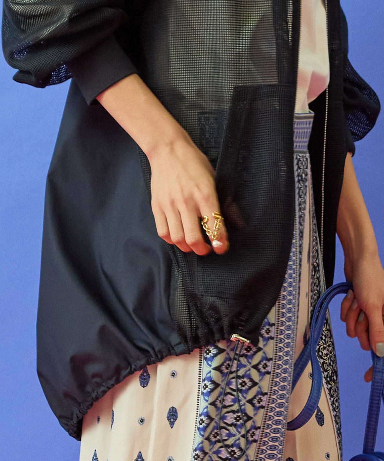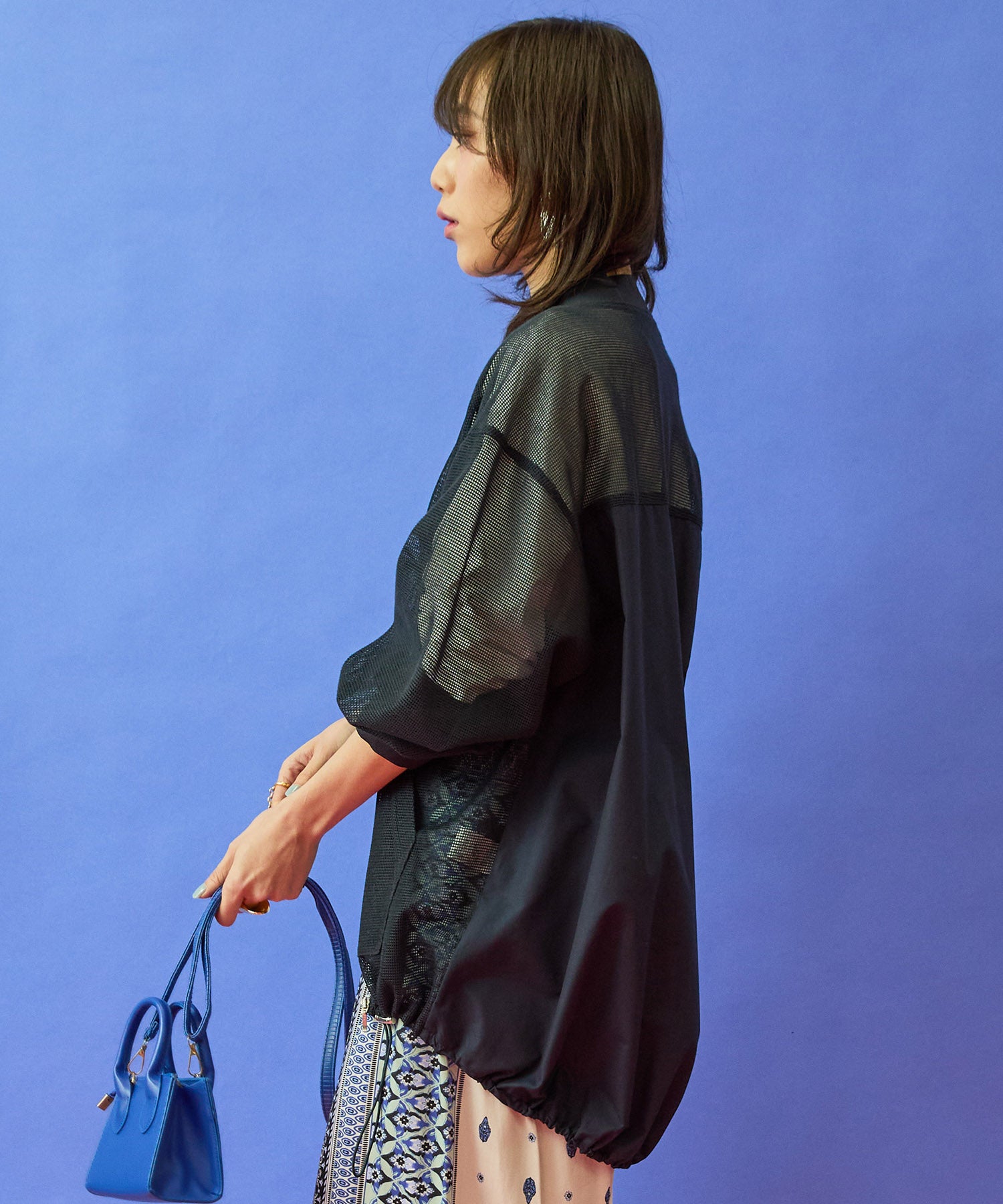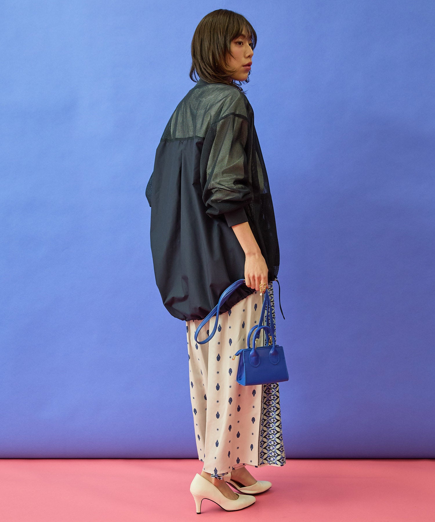 ・メッシュ×異素材のコントラストが印象的