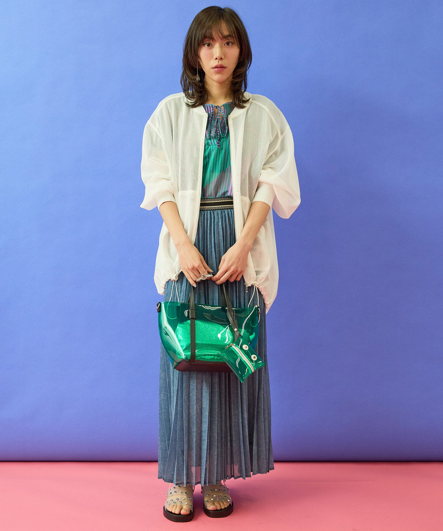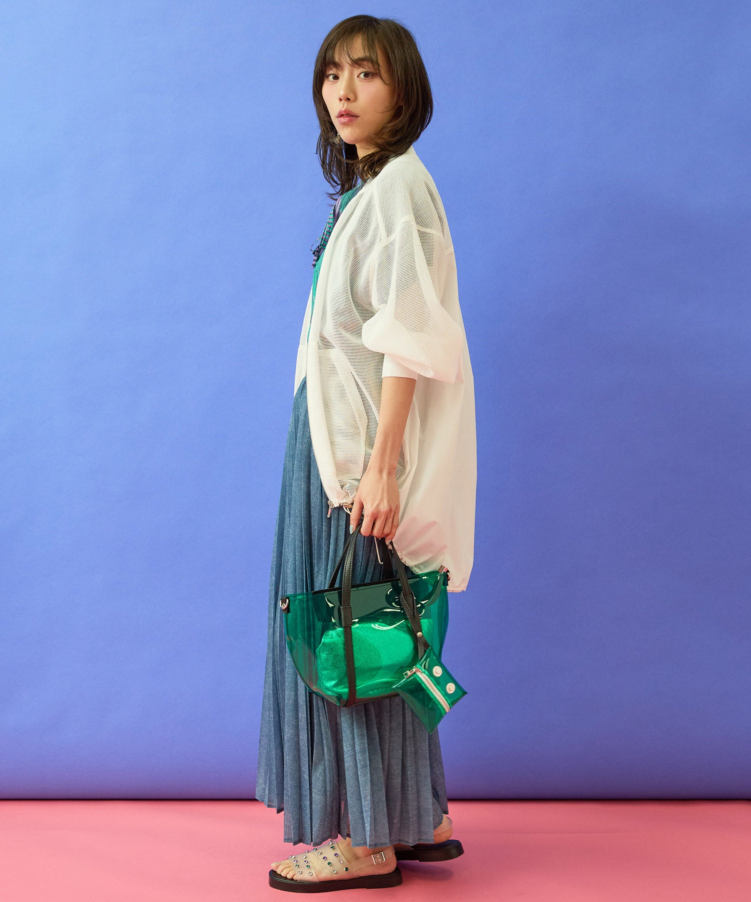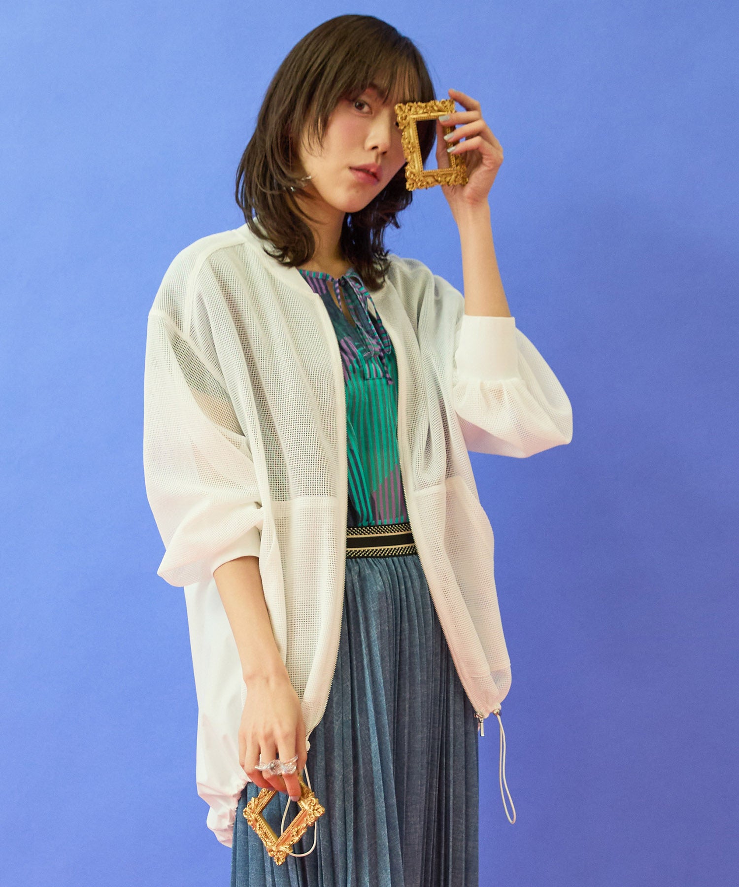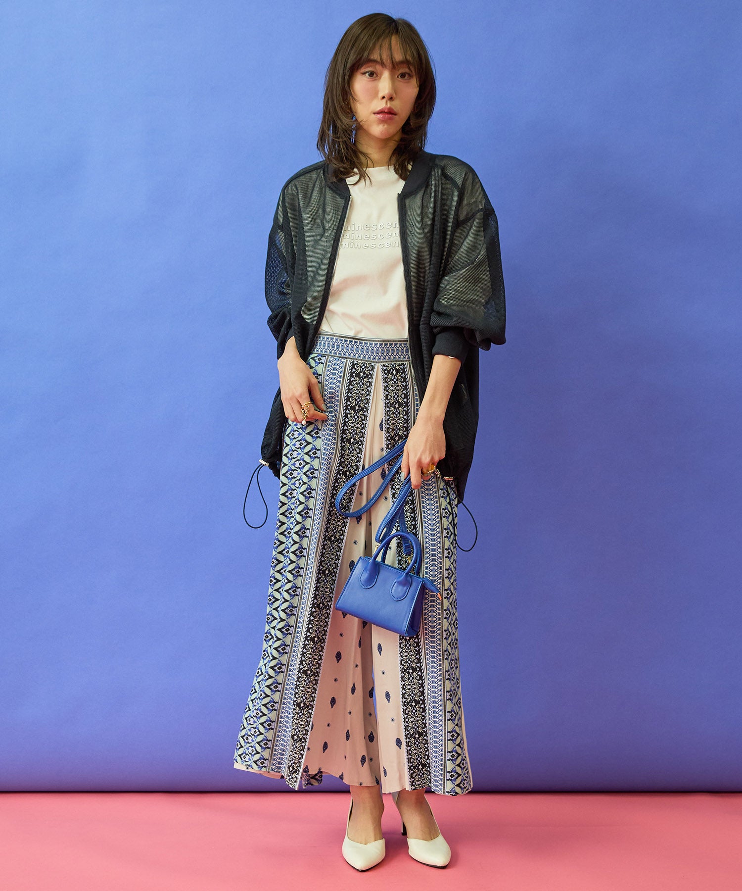 ・メッシュ×異素材のコントラストが印象的