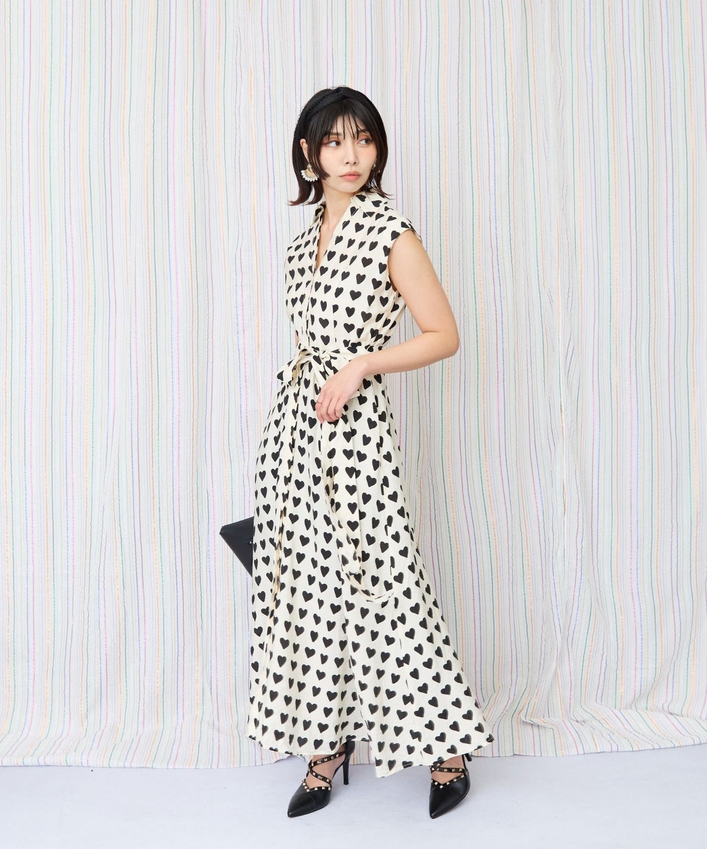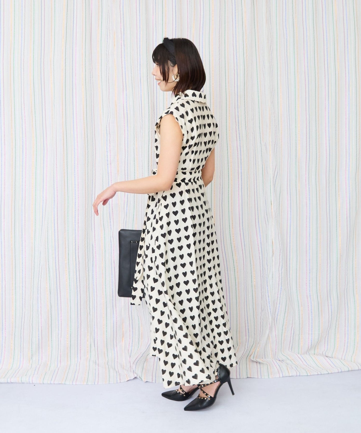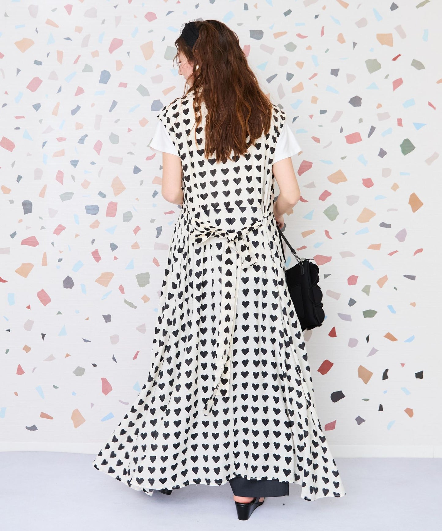 甘くなりすぎないモノトーンハートプリントが印象的なワンピース。