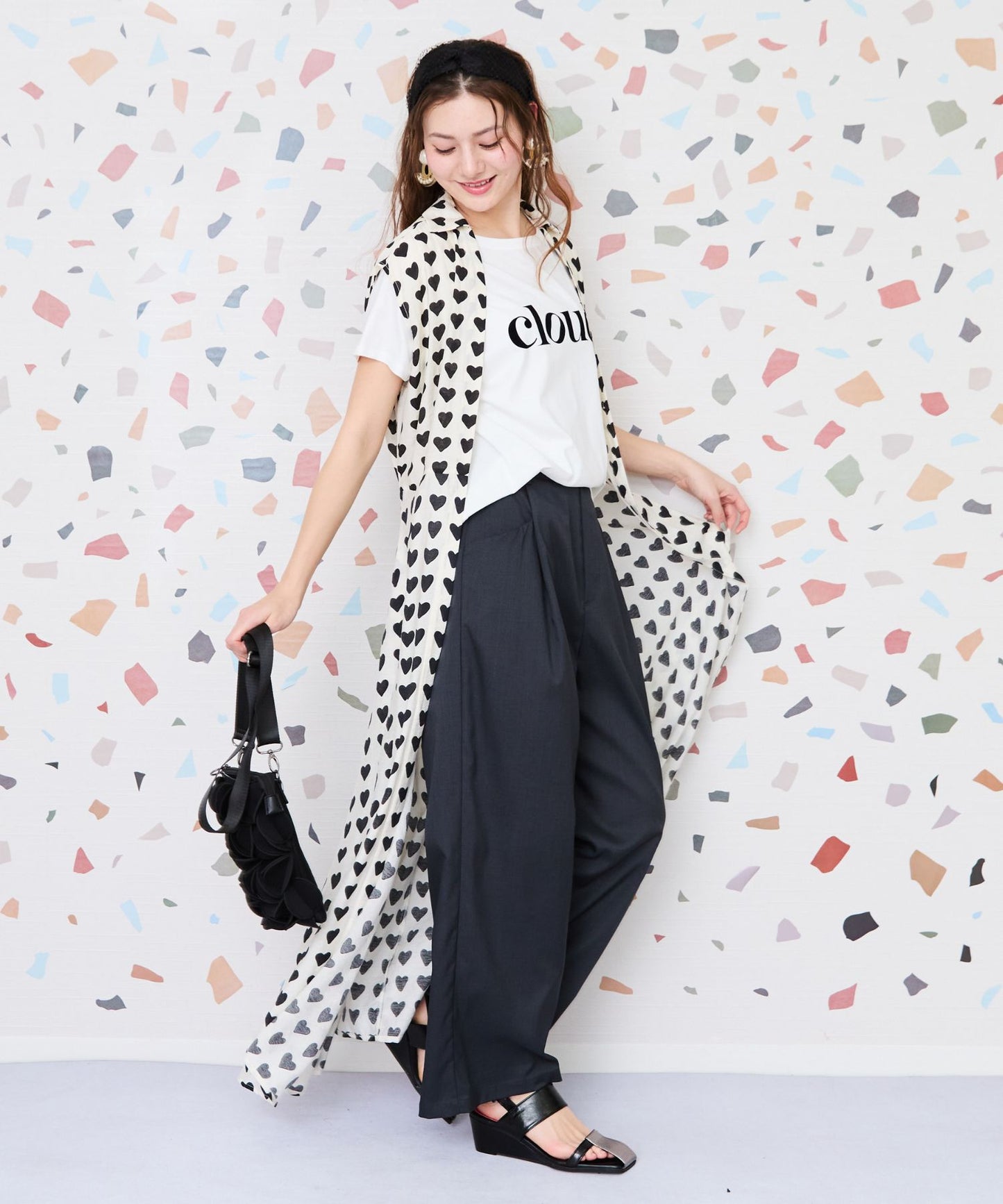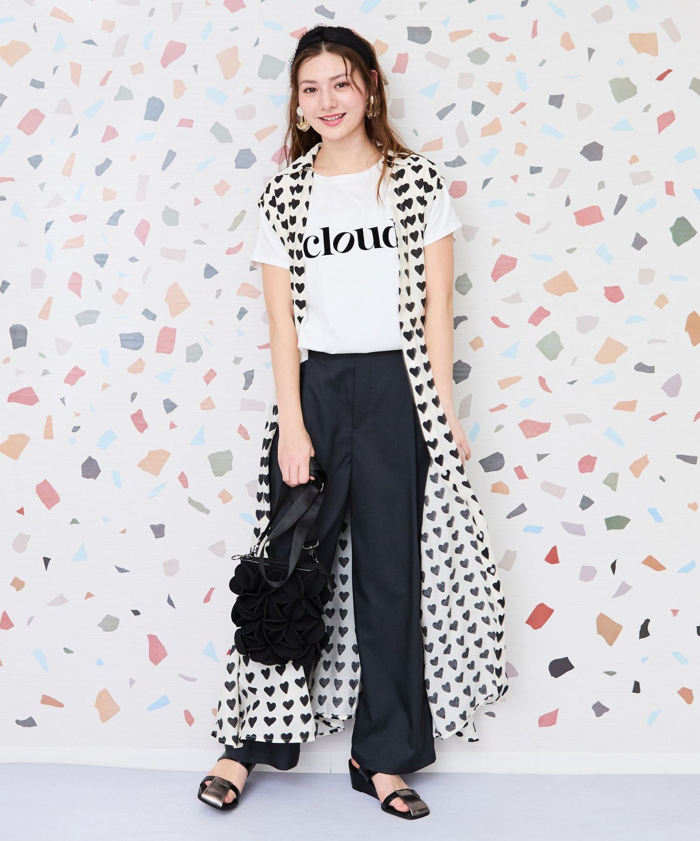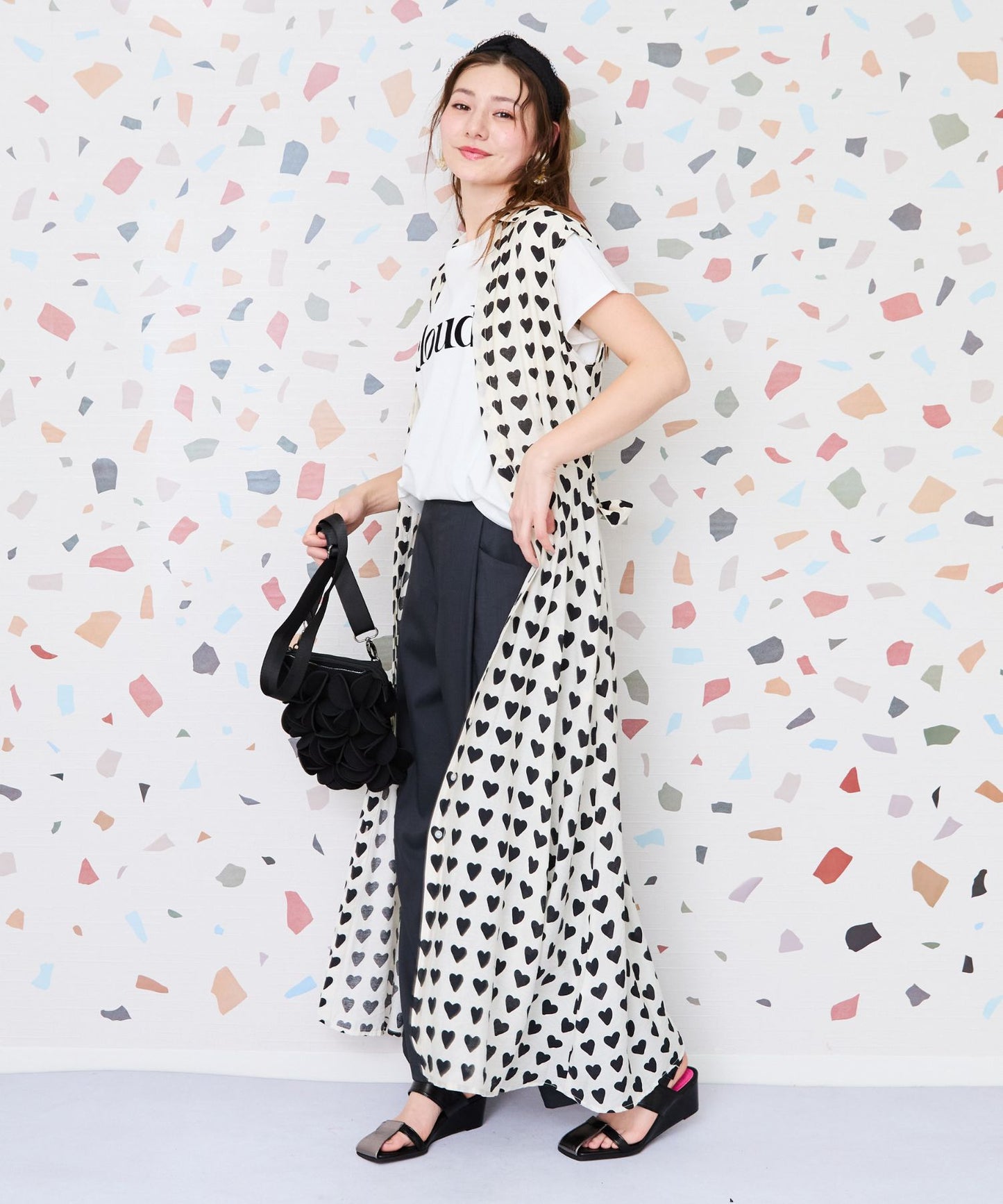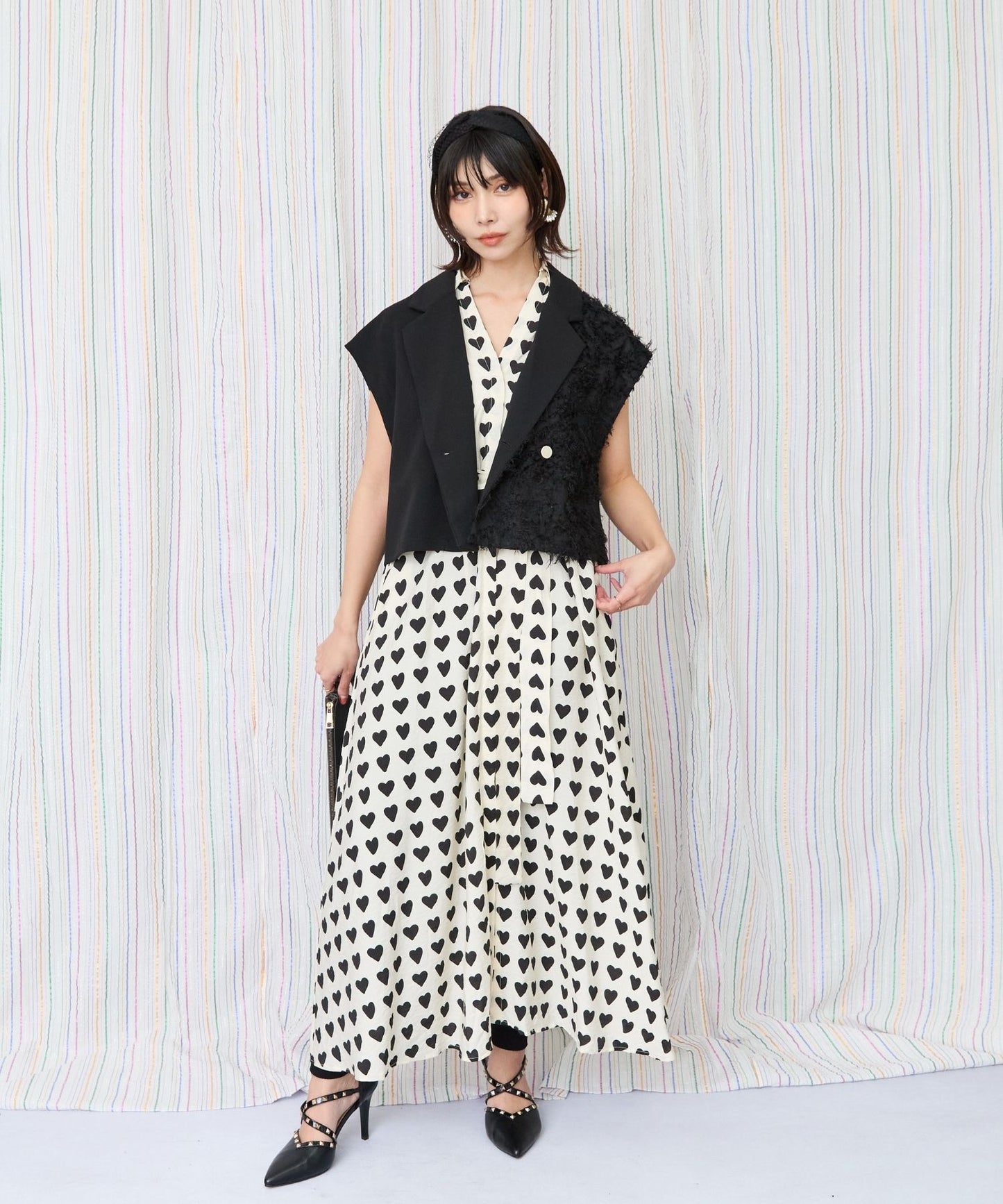 甘くなりすぎないモノトーンハートプリントが印象的なワンピース。