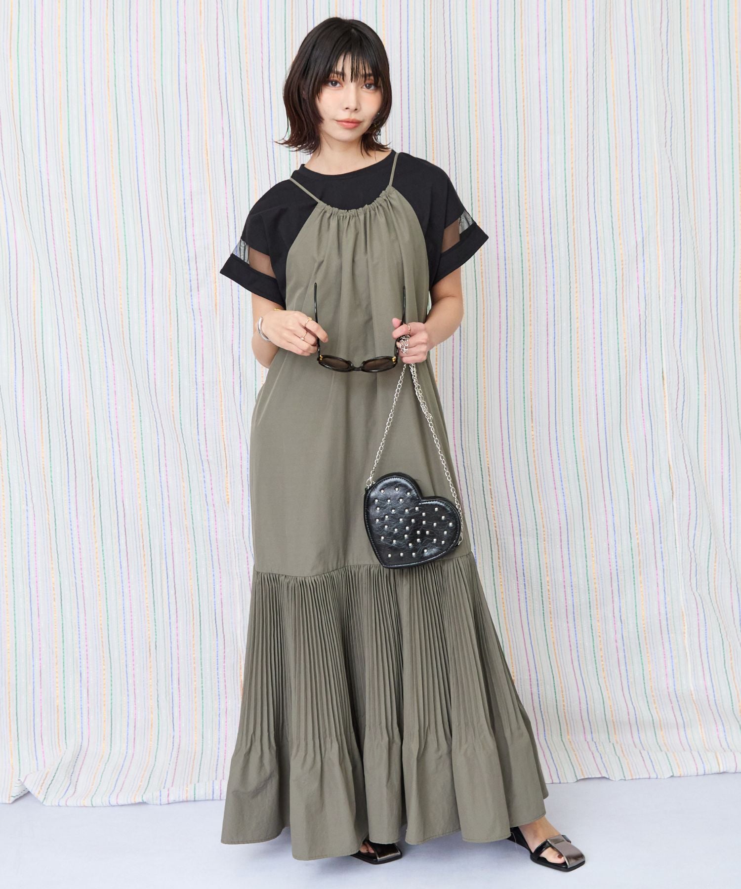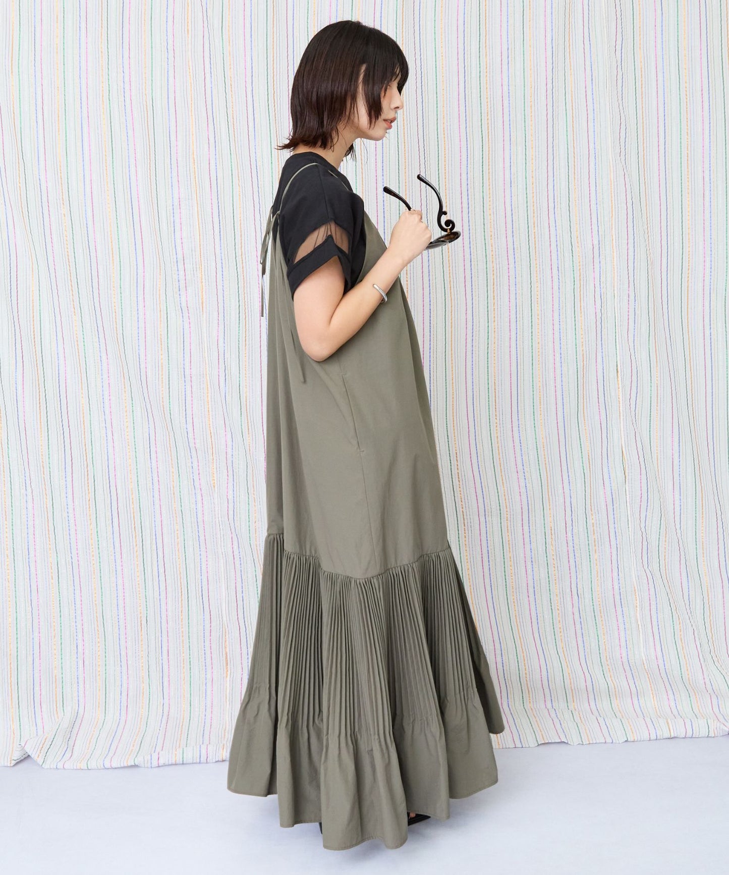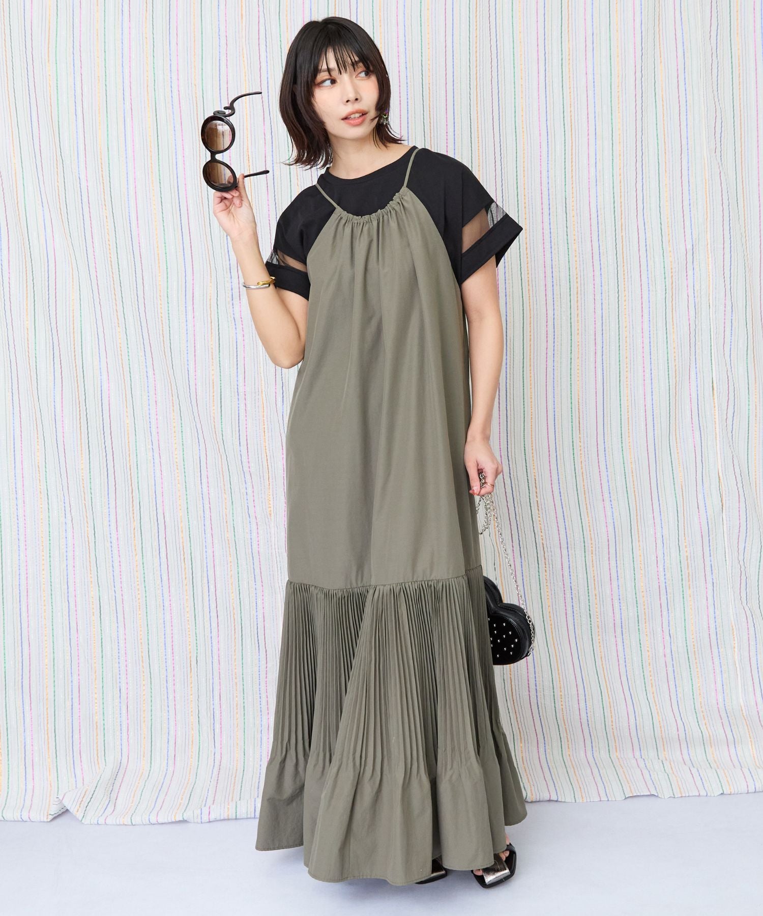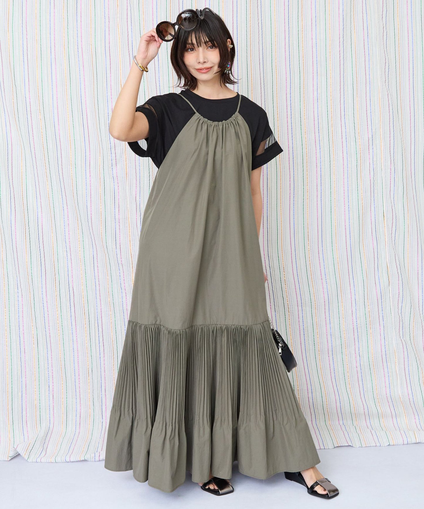 縦長ラインの美シルエットが魅力のティアードキャミワンピース