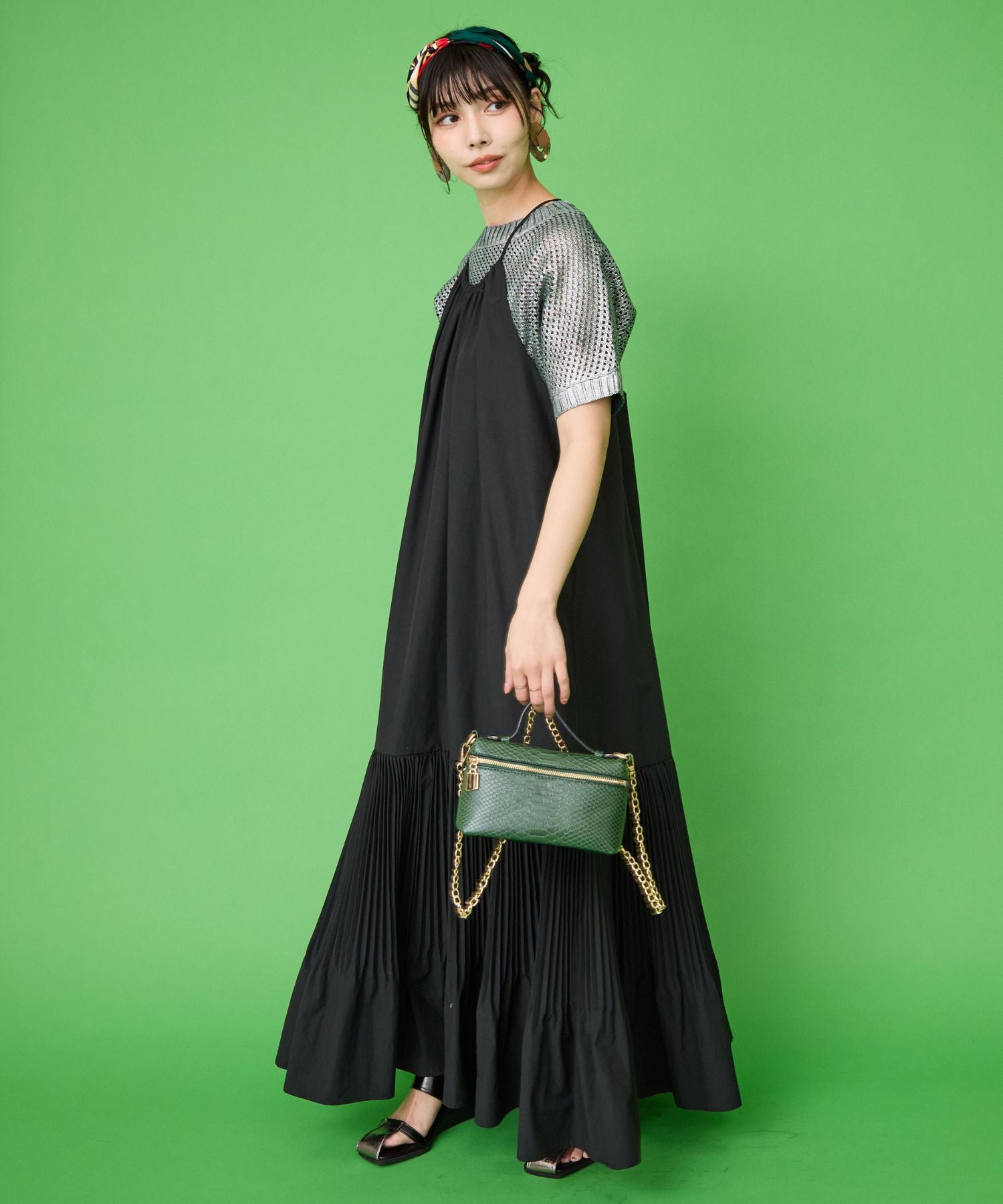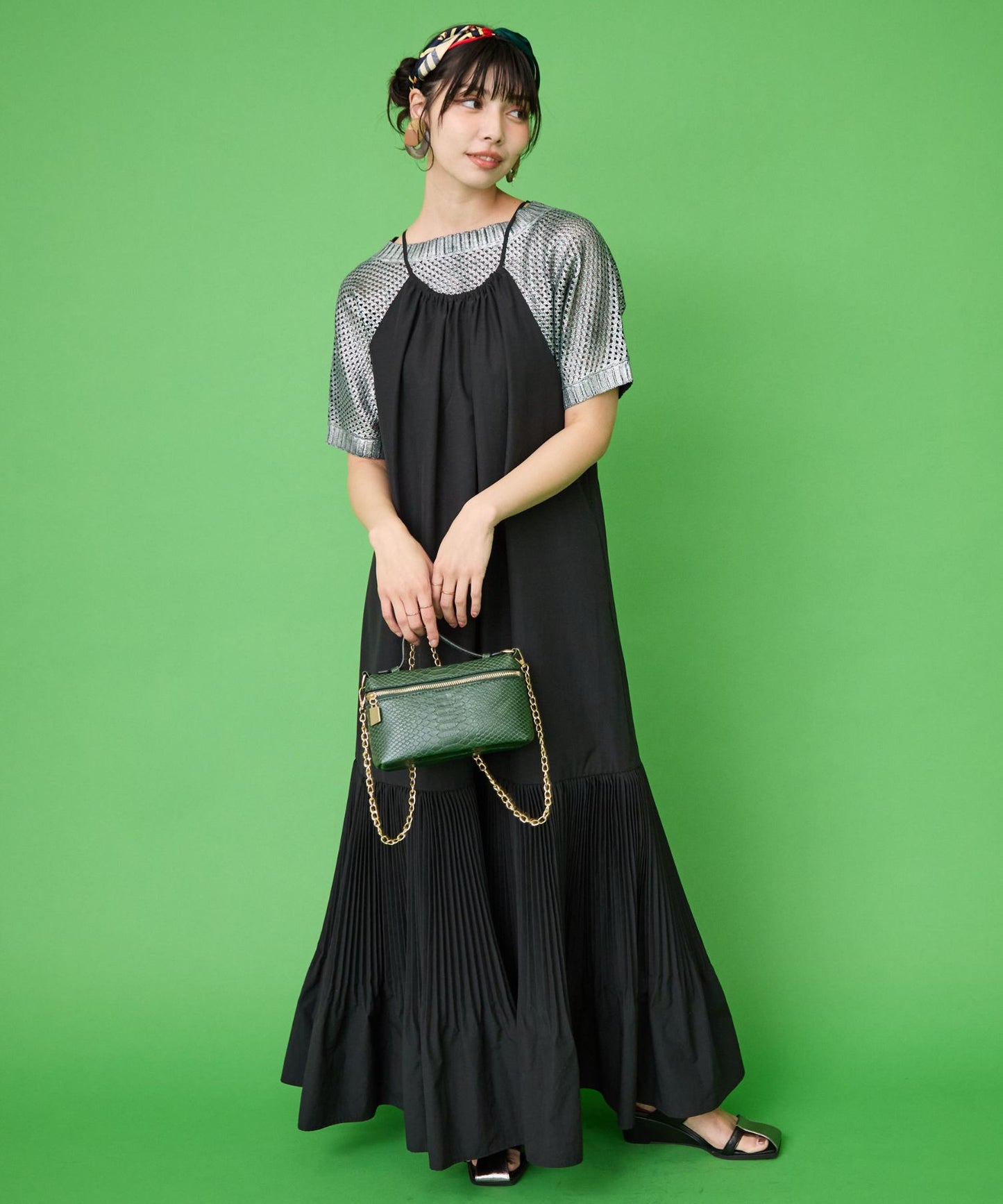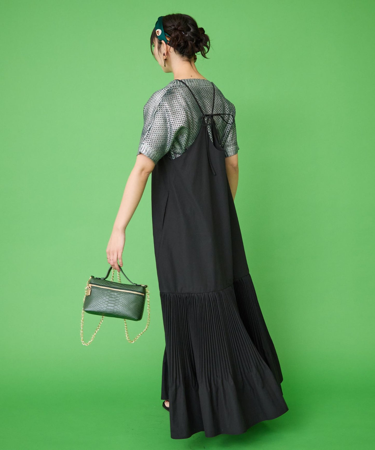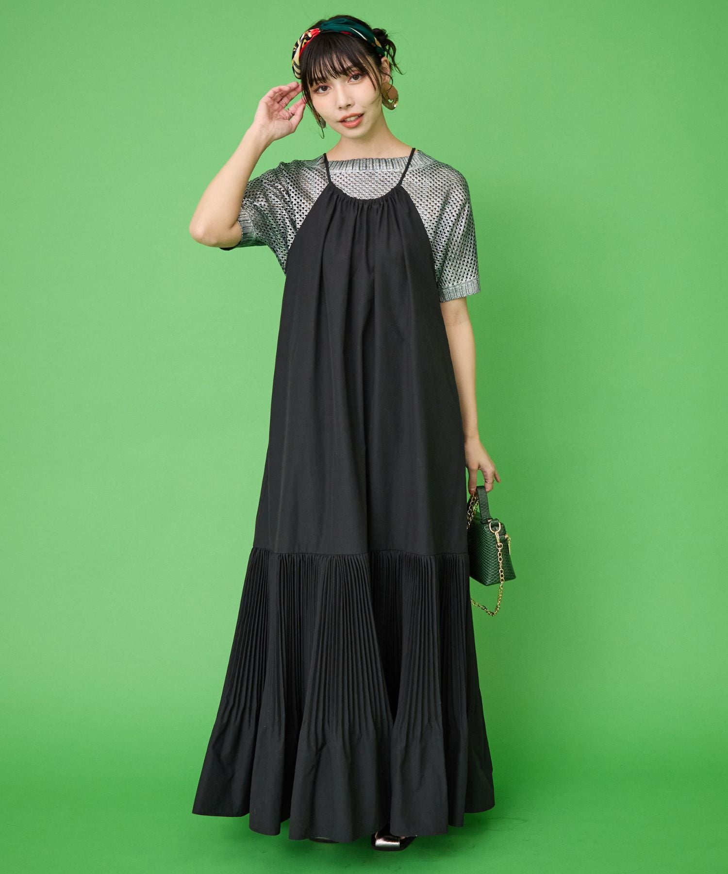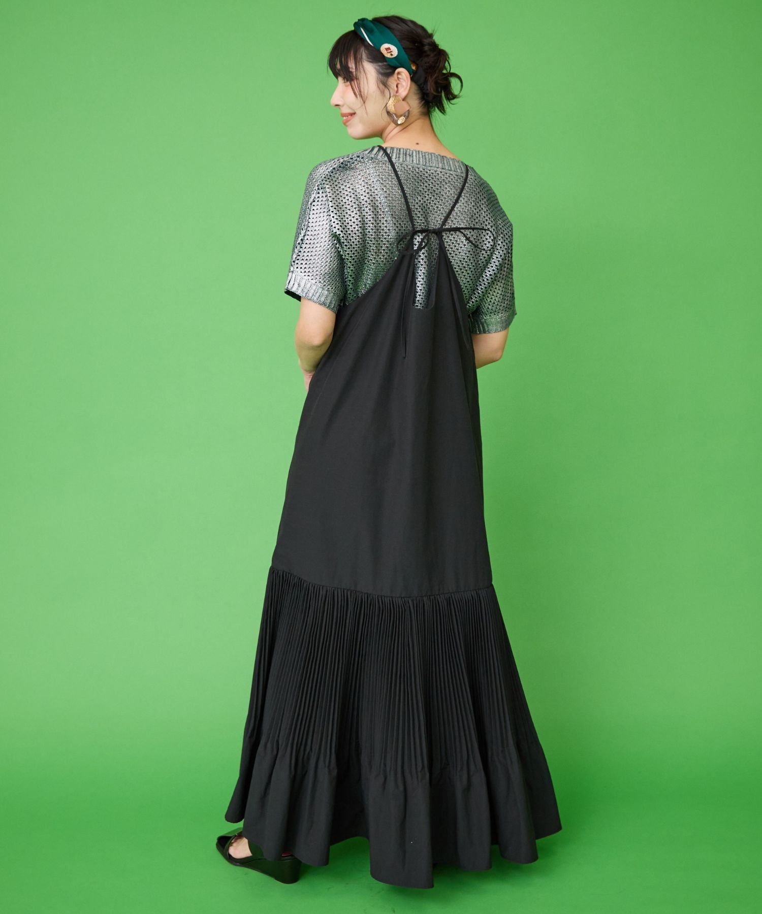 縦長ラインの美シルエットが魅力のティアードキャミワンピース