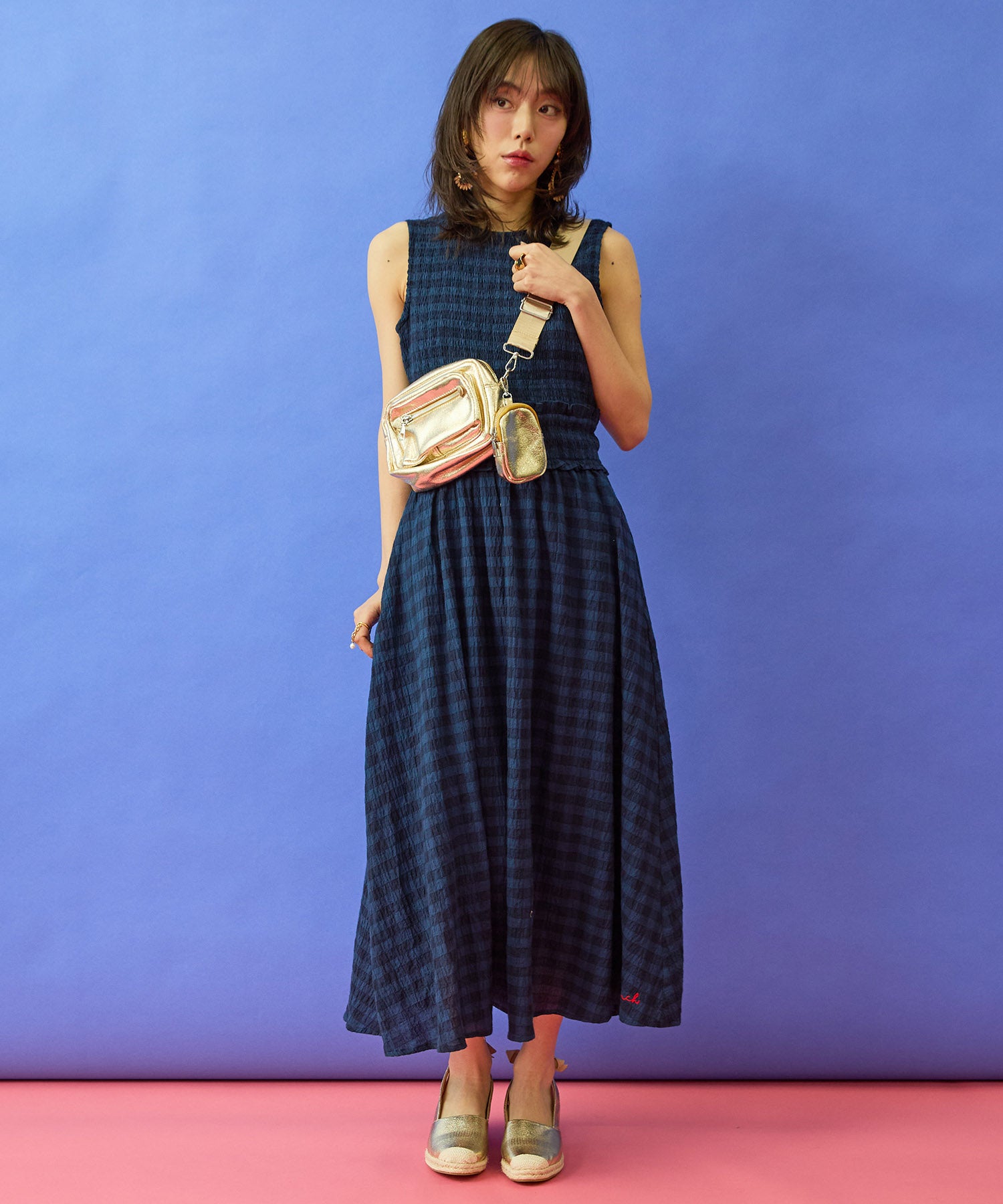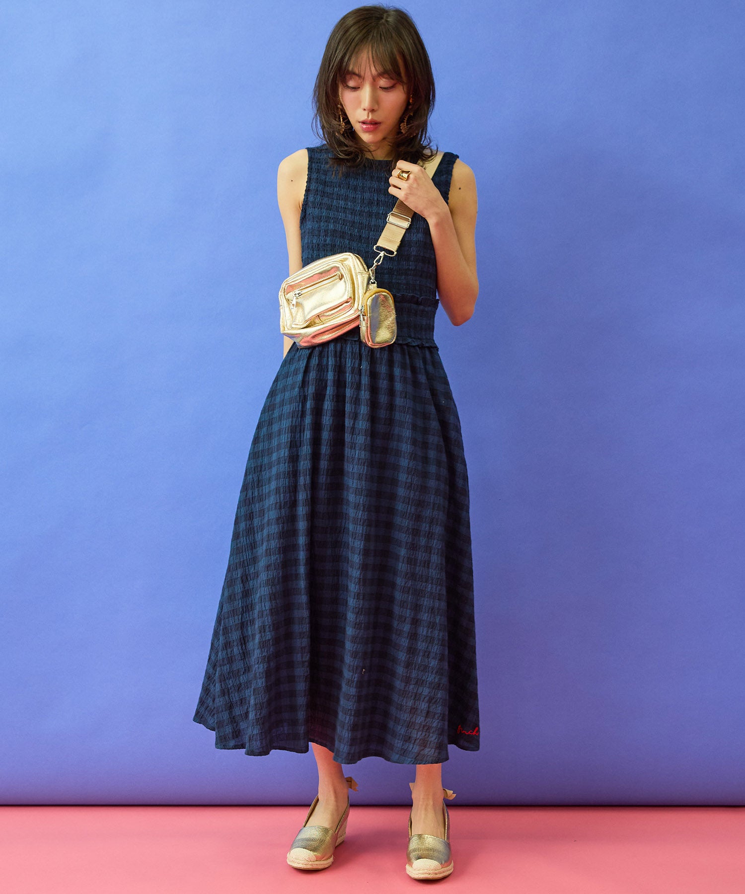 小物はシンプルにまとめると、チェック柄がより引き立ちます。