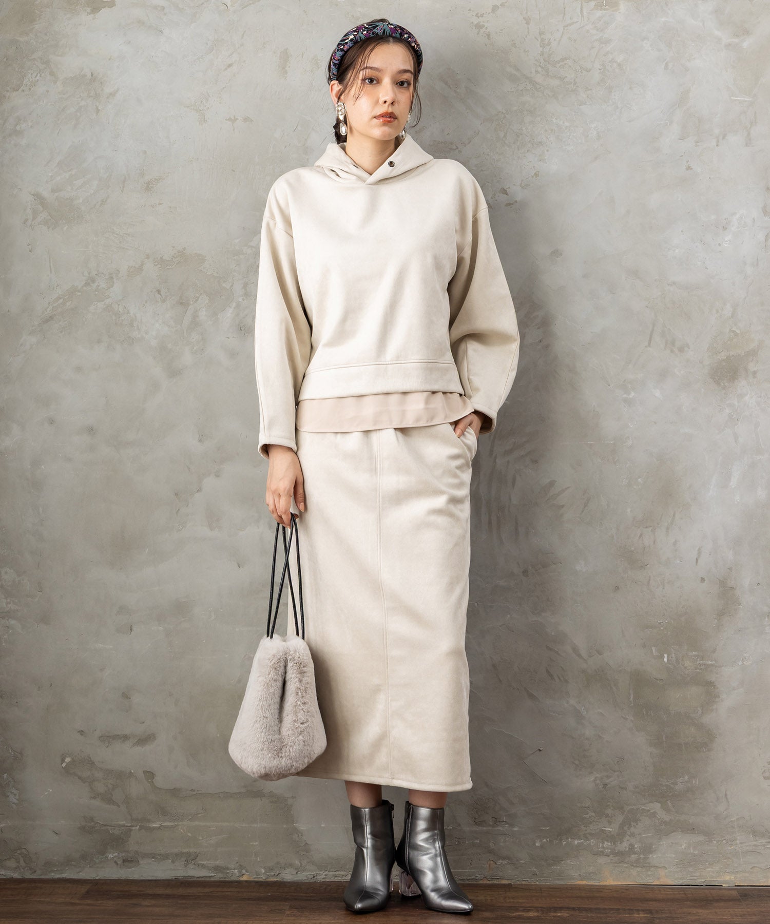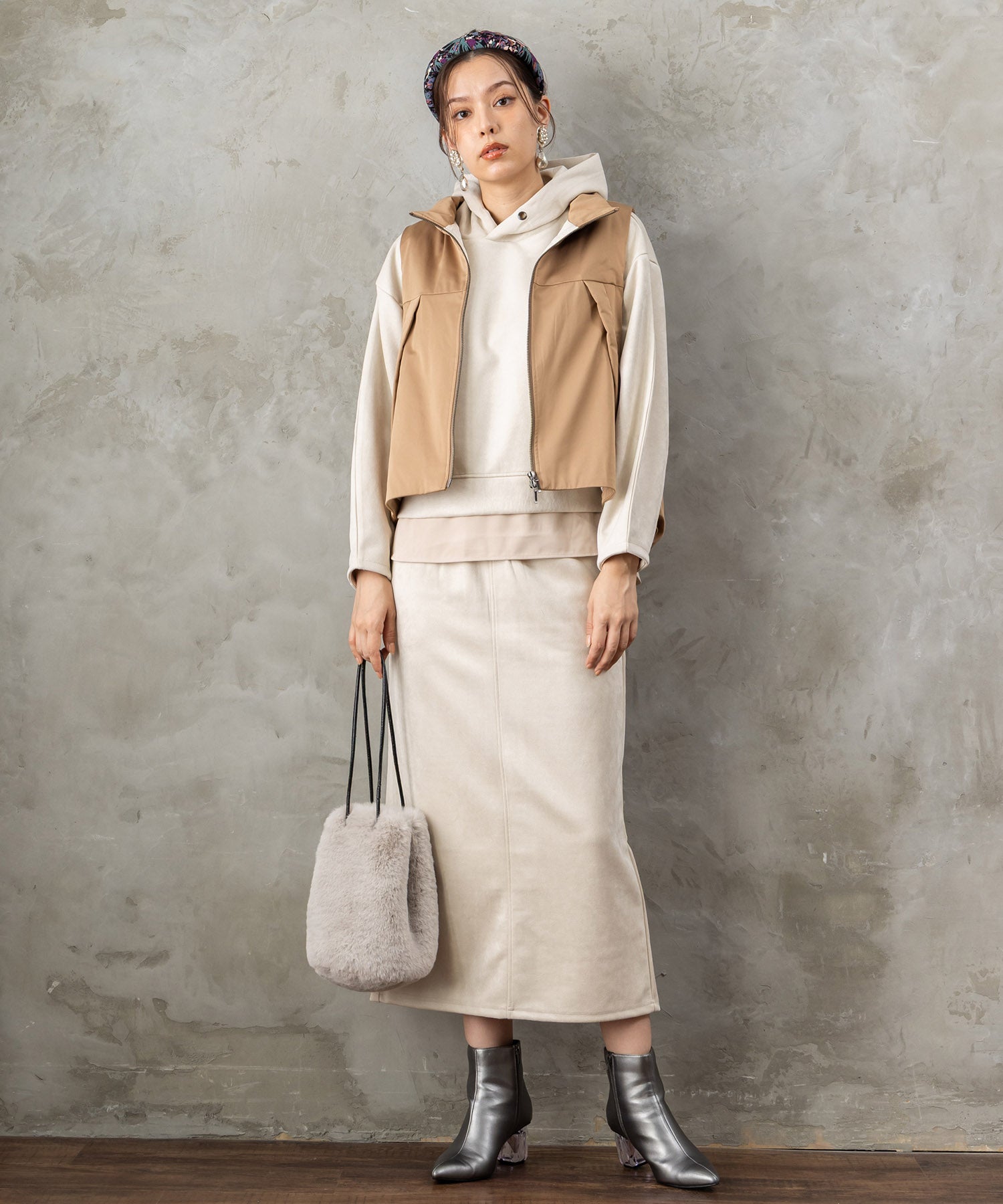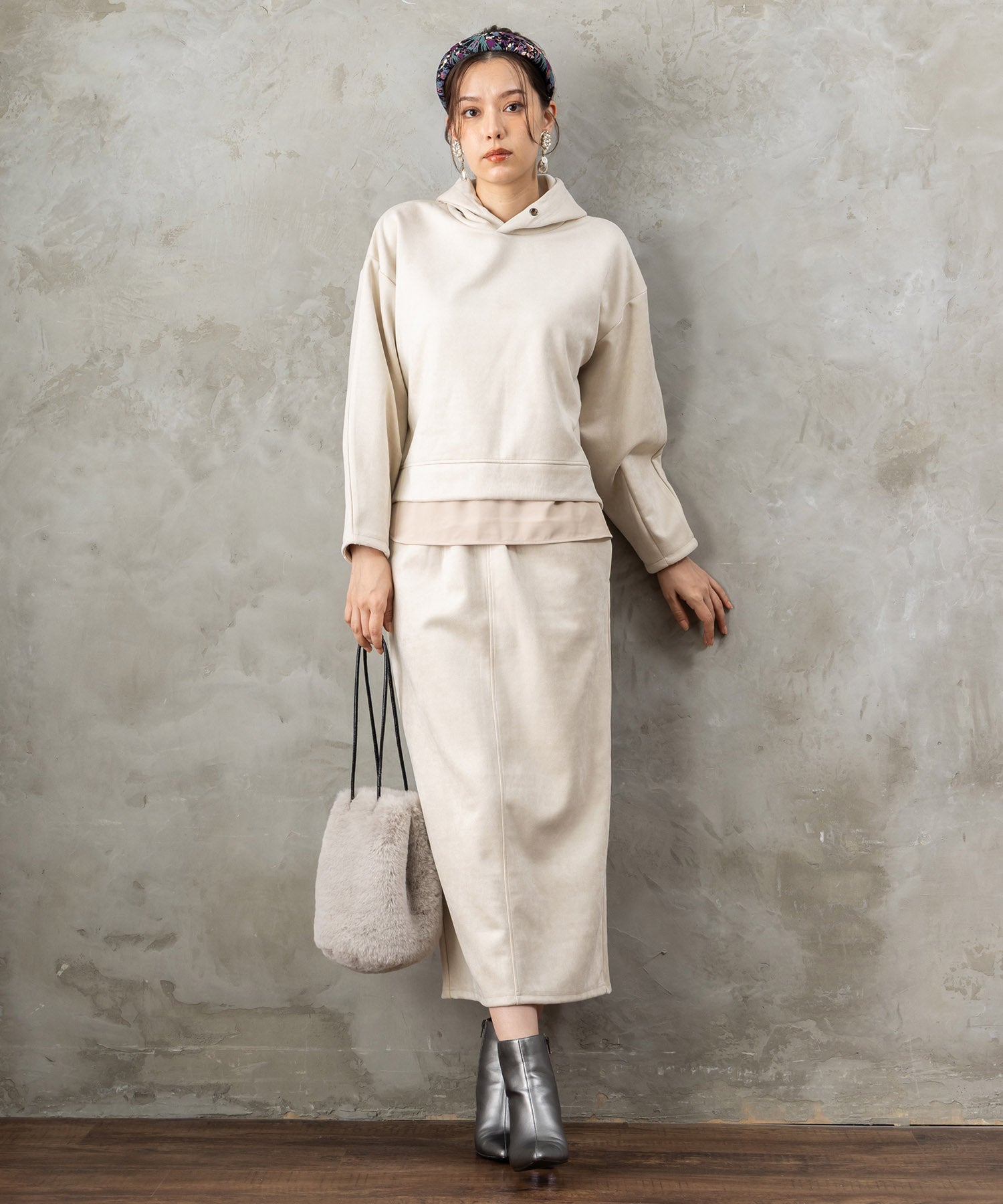 フーディーはデニムやスカートに合わせて、スカートはニットと合わせて着回し自在。