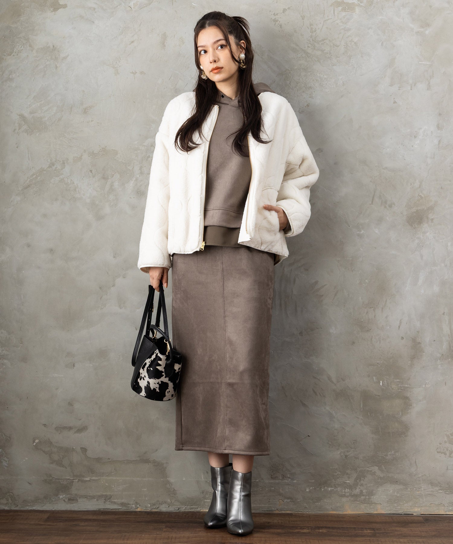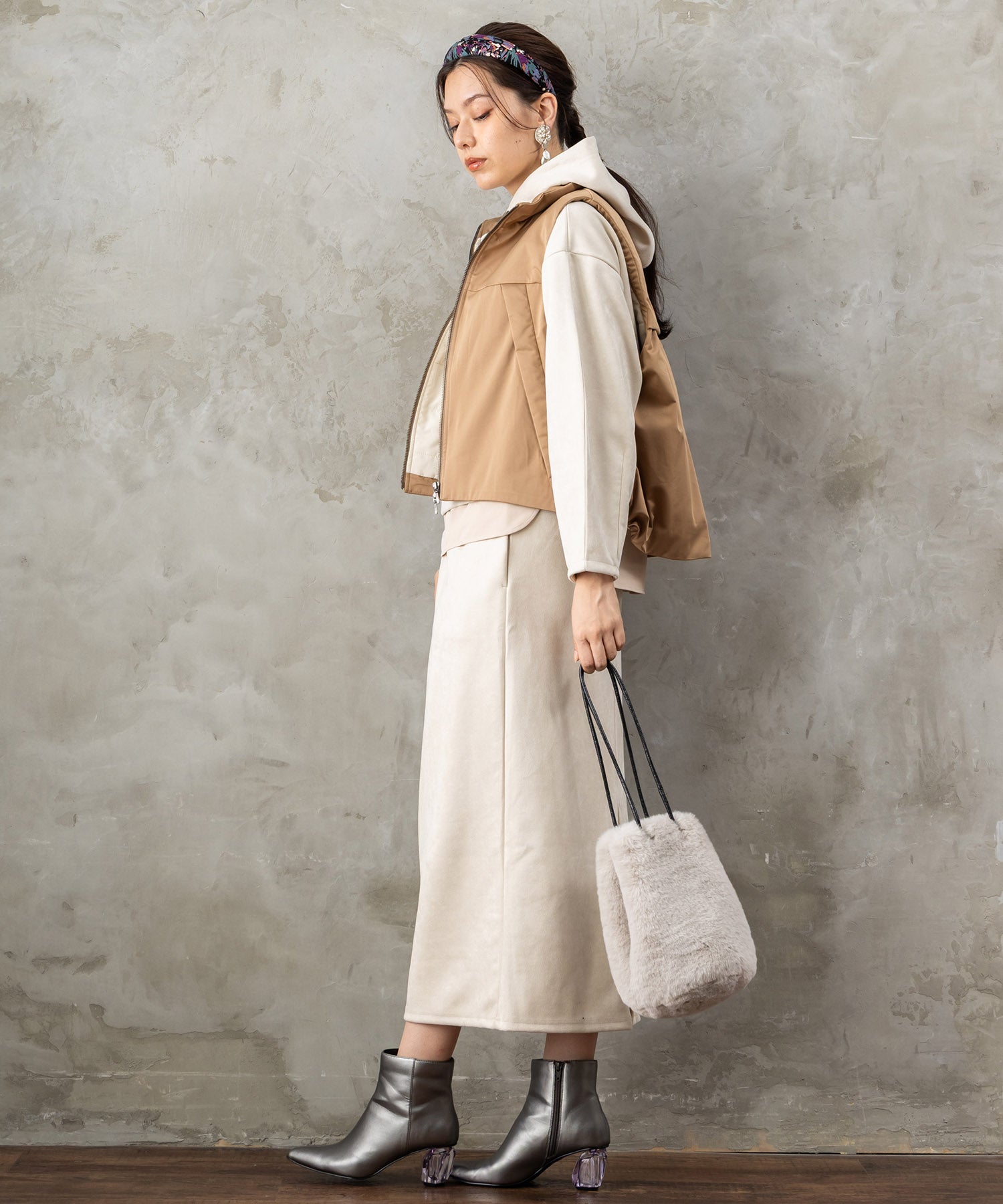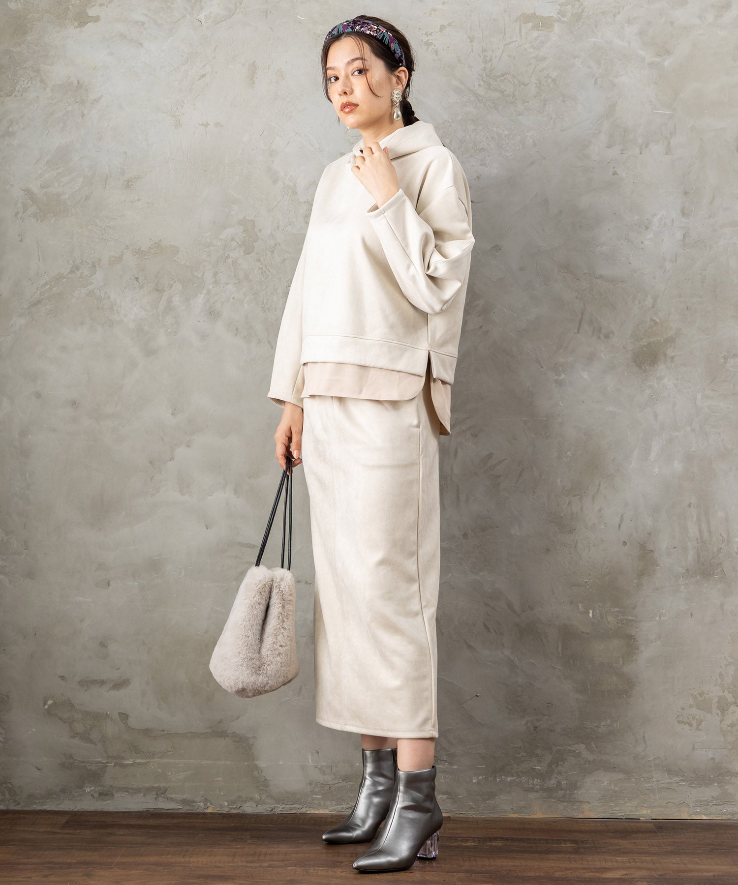 フーディーはデニムやスカートに合わせて、スカートはニットと合わせて着回し自在。