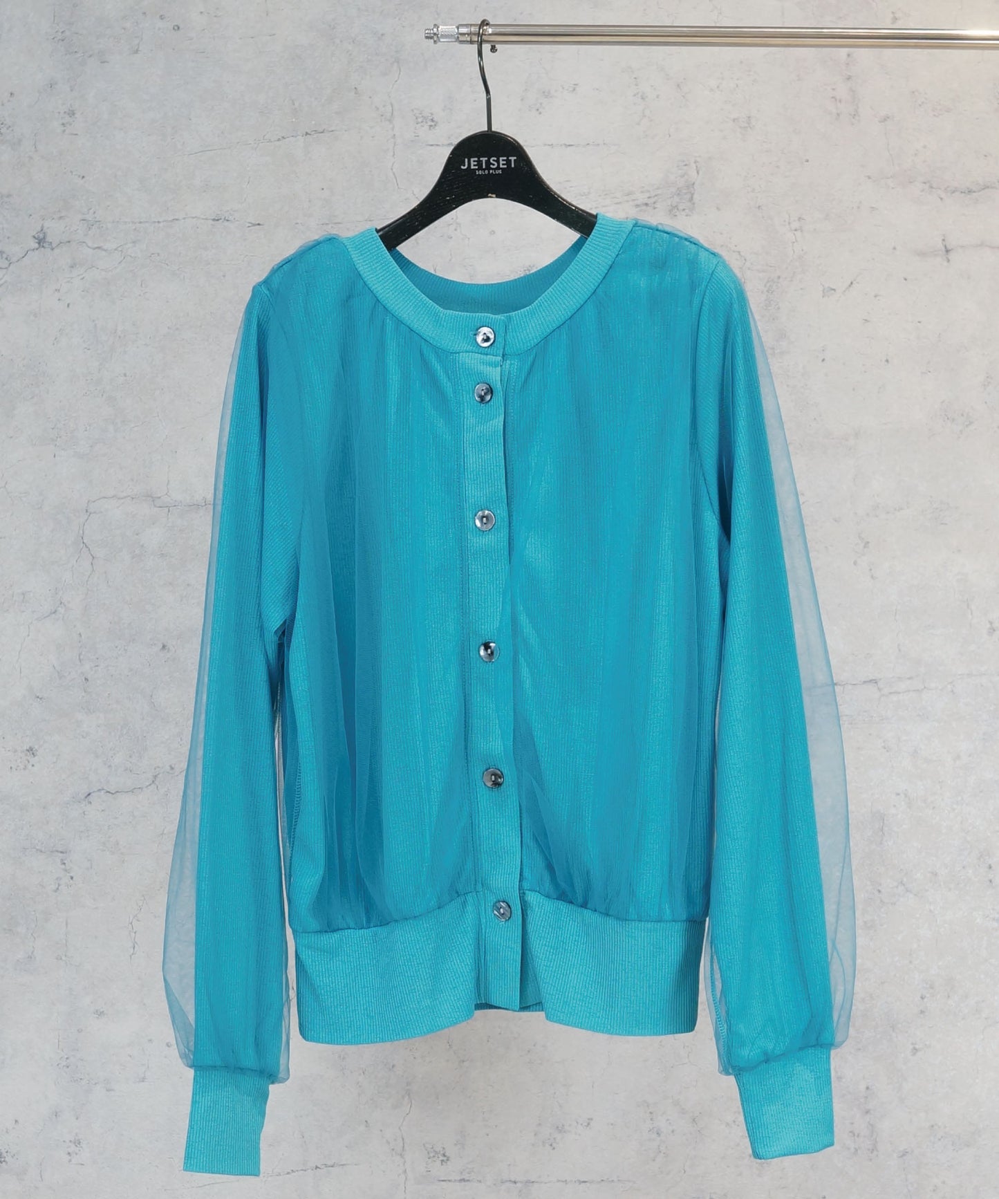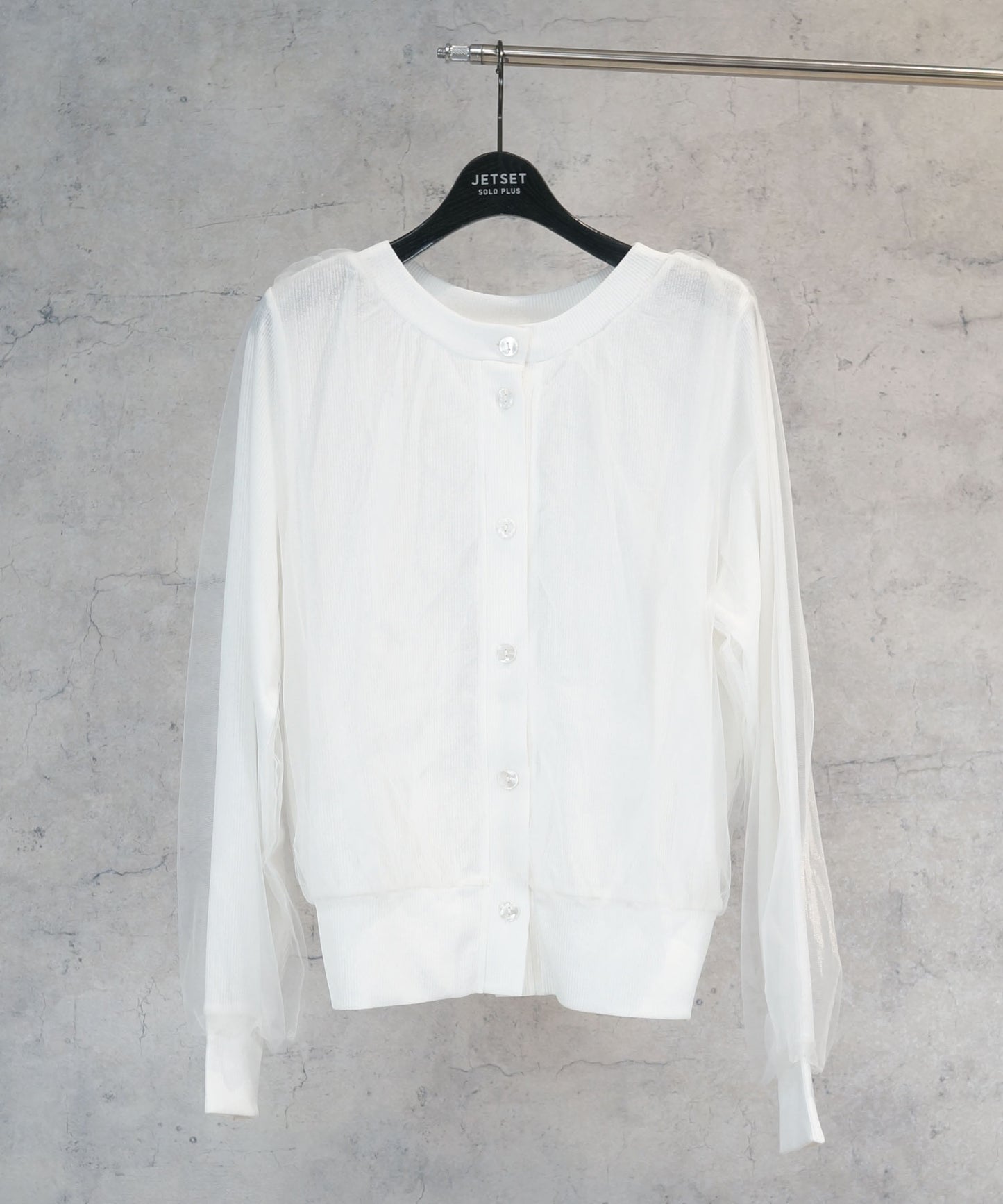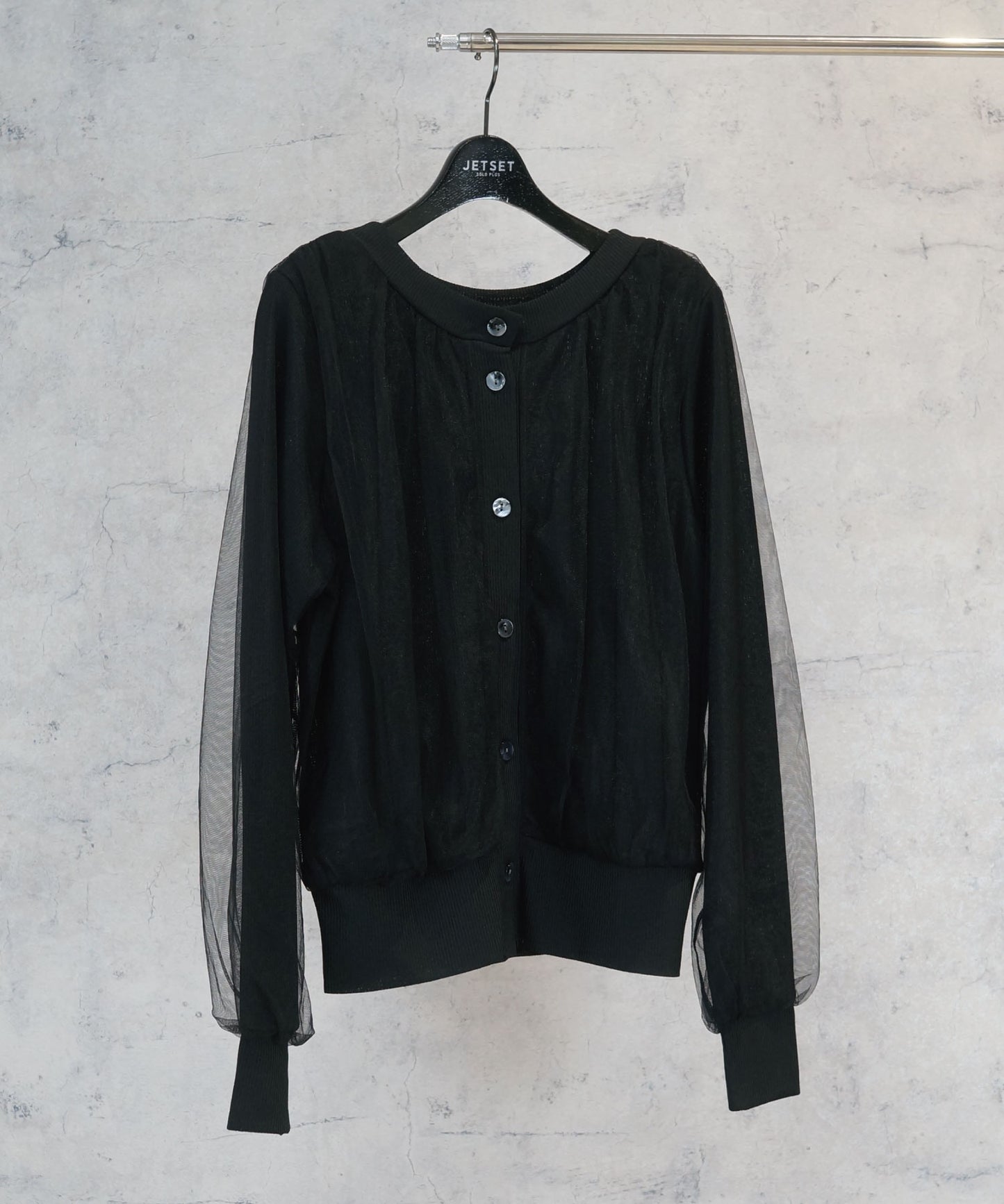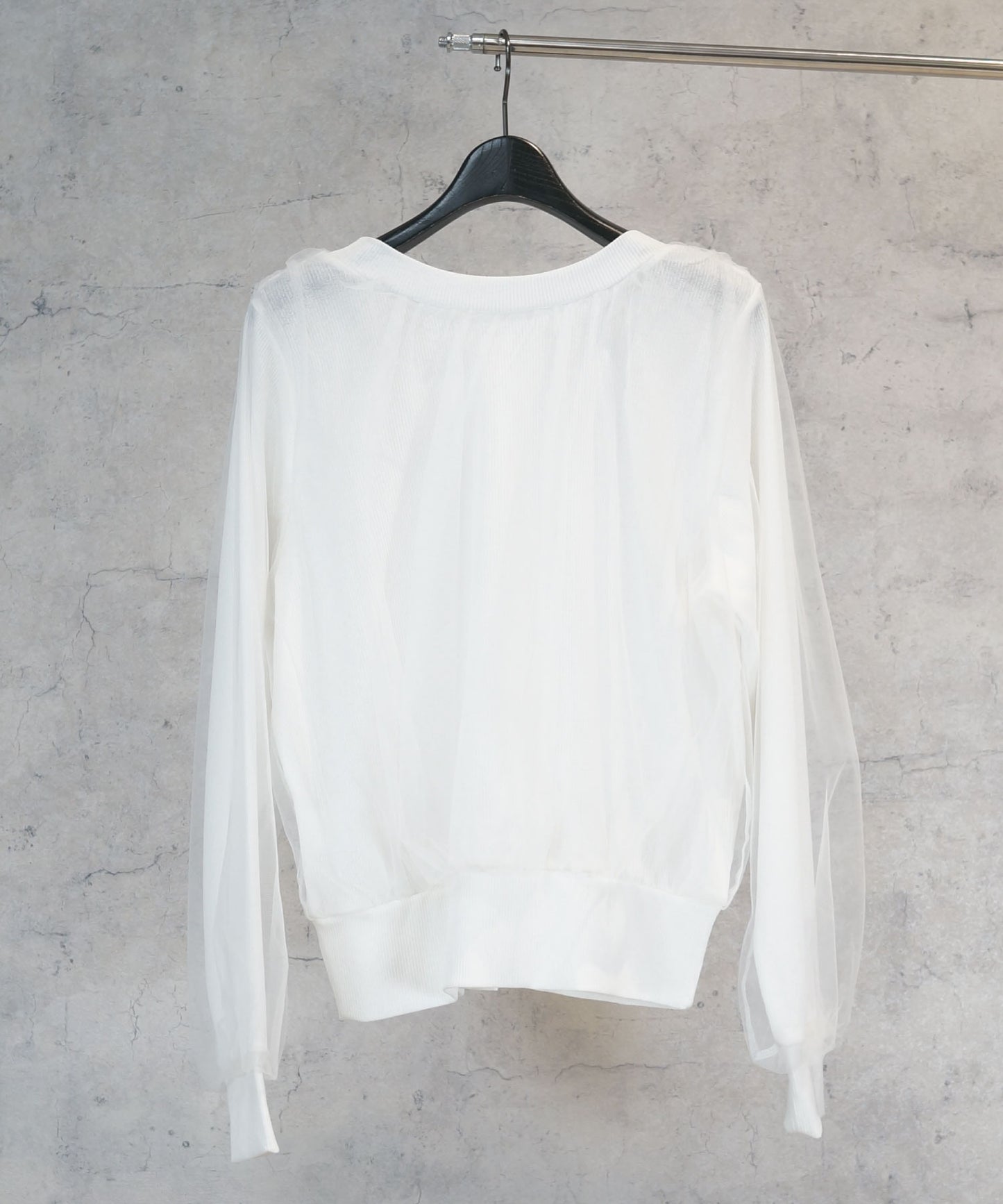 繊細なチュールをレイヤードしたカーディガン。