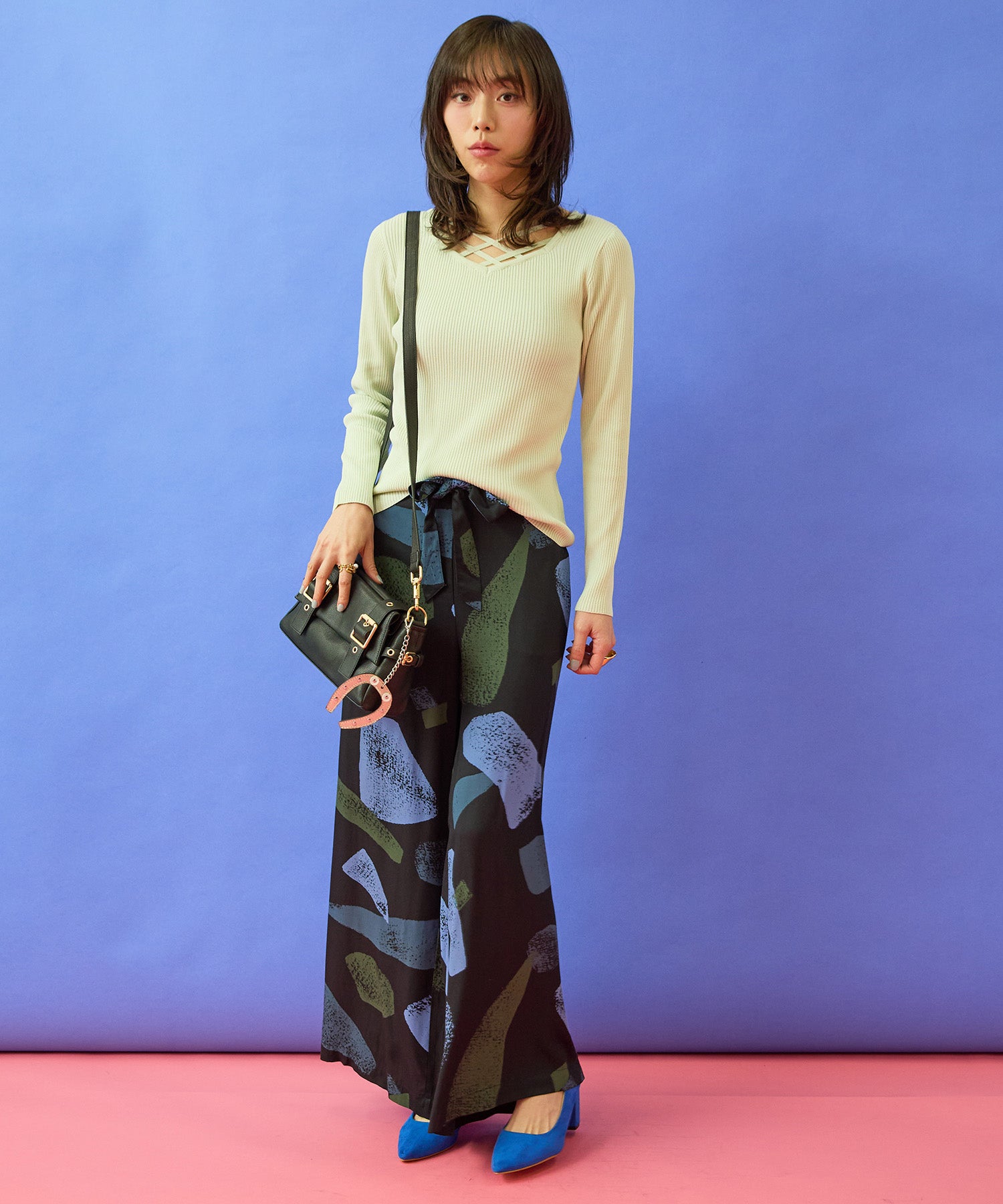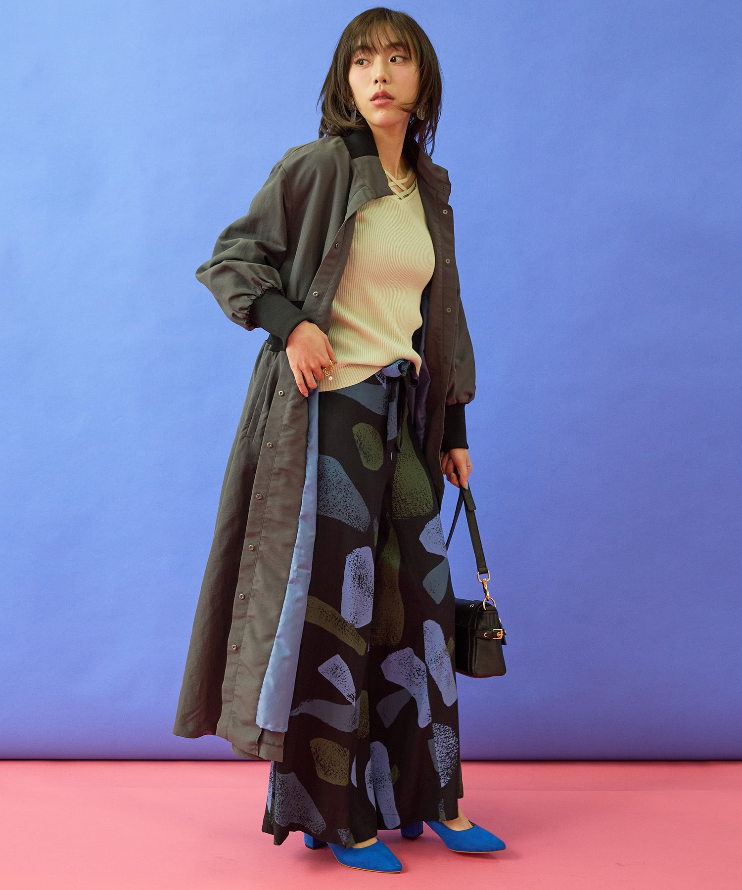 テーパードパンツやスカートと合わせて、きれいめなスタイリングに。