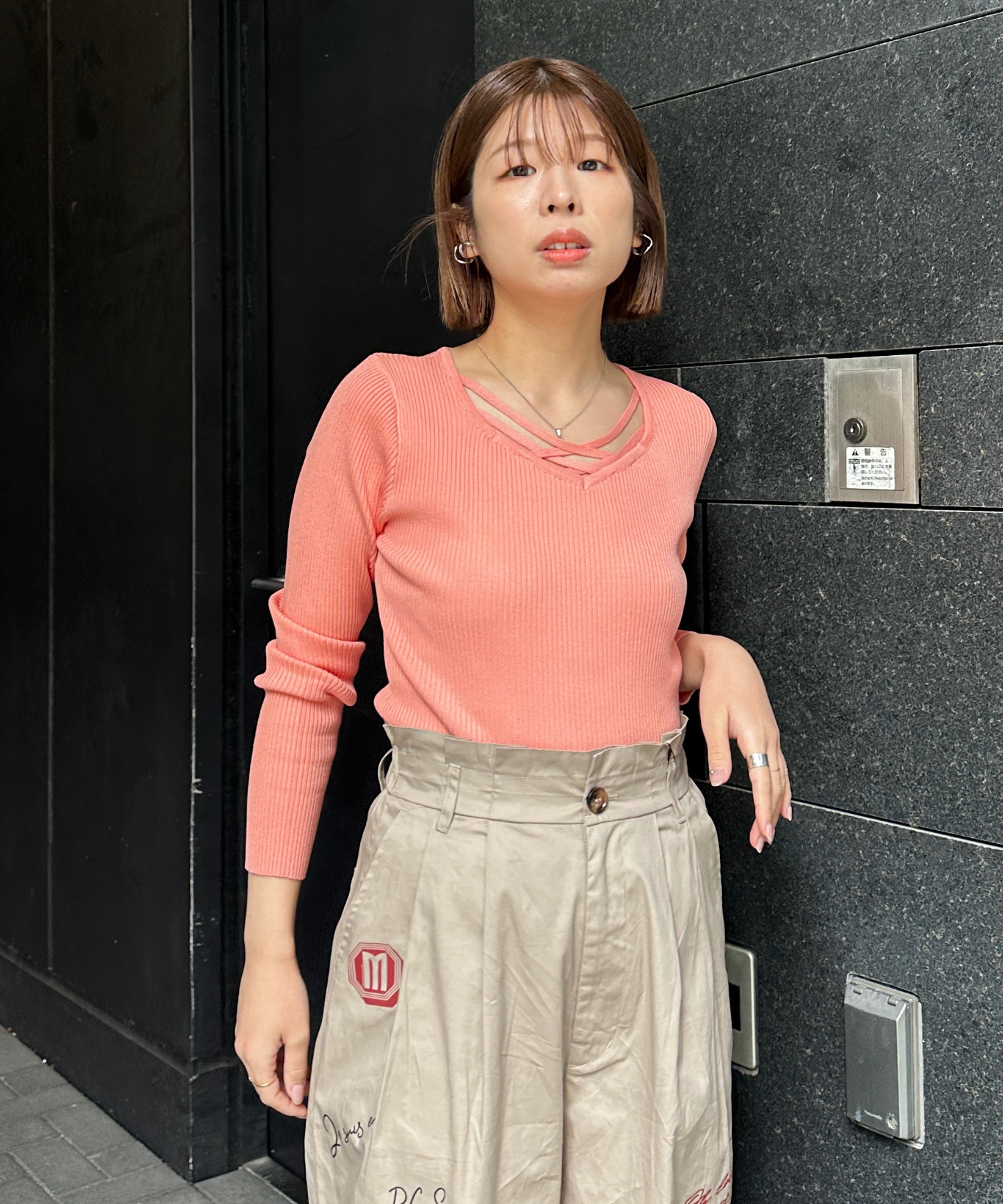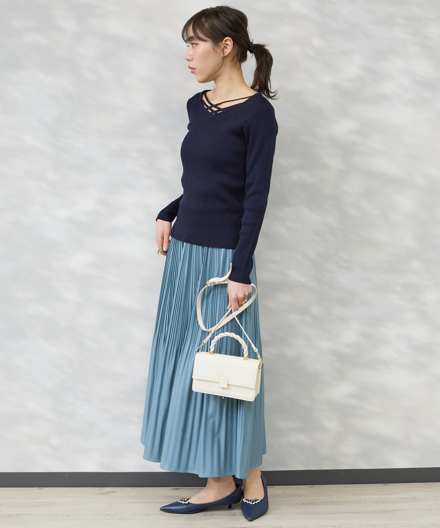 #リブニット #ダイヤモンドネック #大人ニット #きれいめカジュアル #大人コーデ #春秋コーデ#JETSETSOLOPLUS