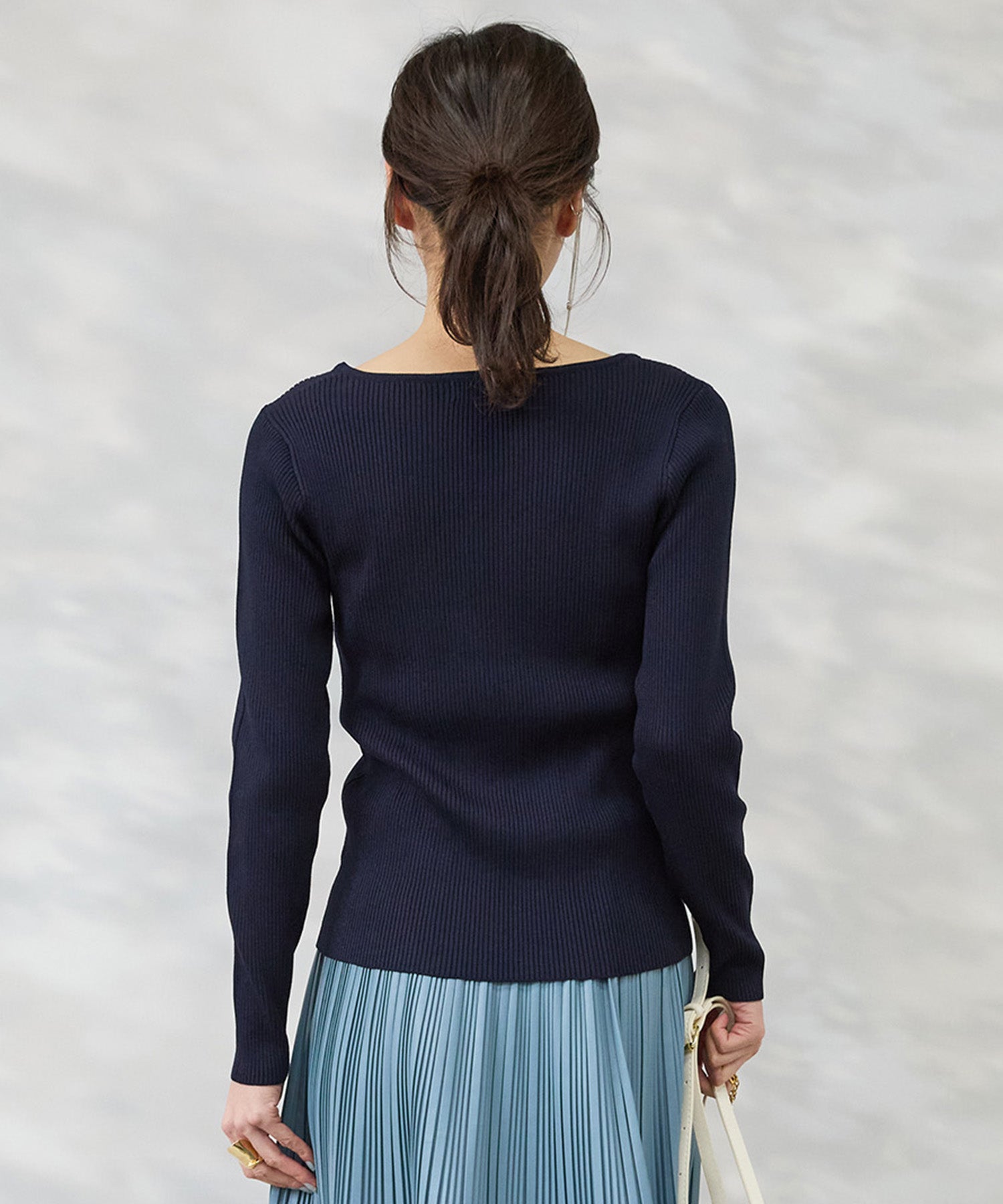 ・リブ編みが生むすっきりとしたシルエット