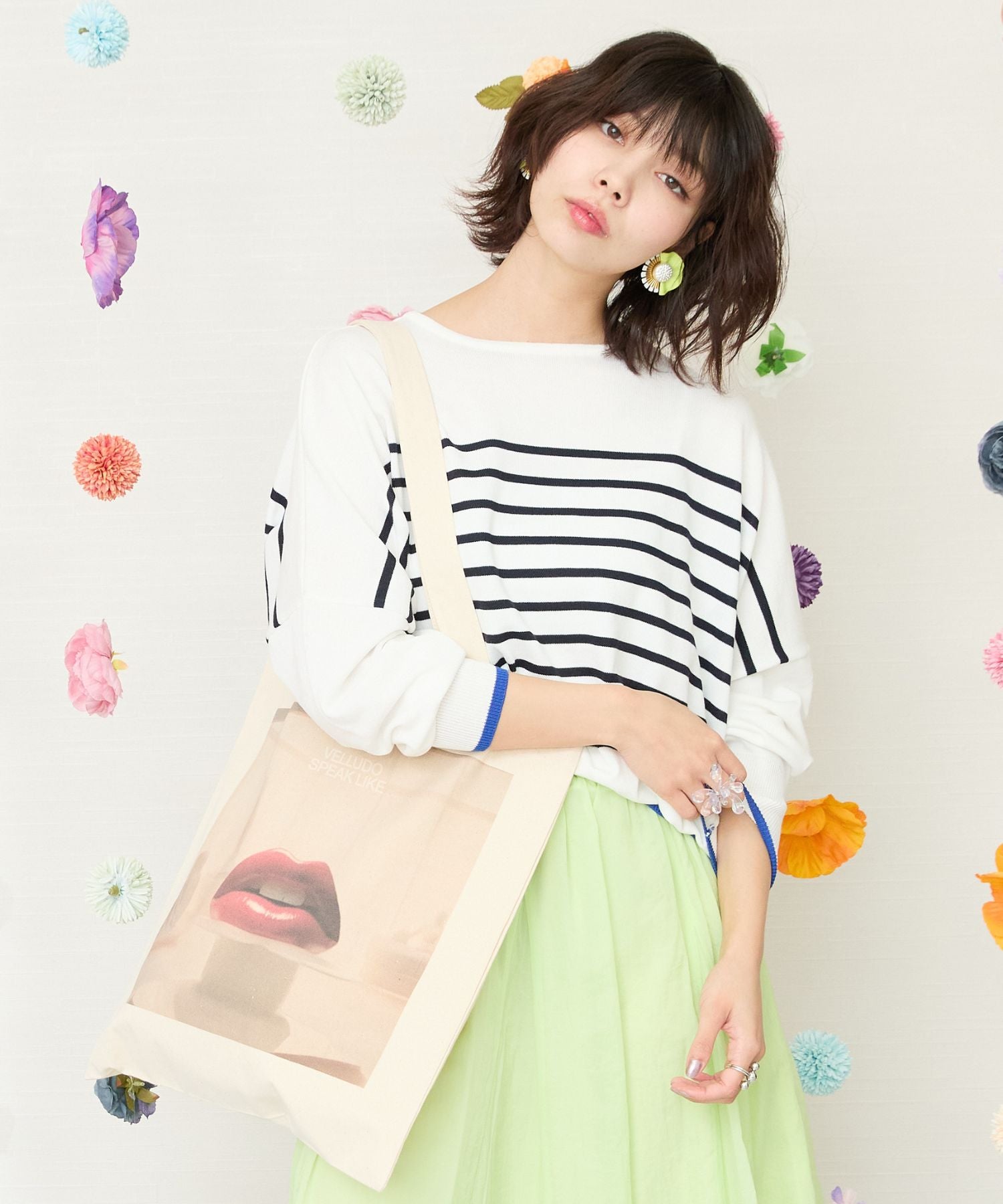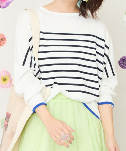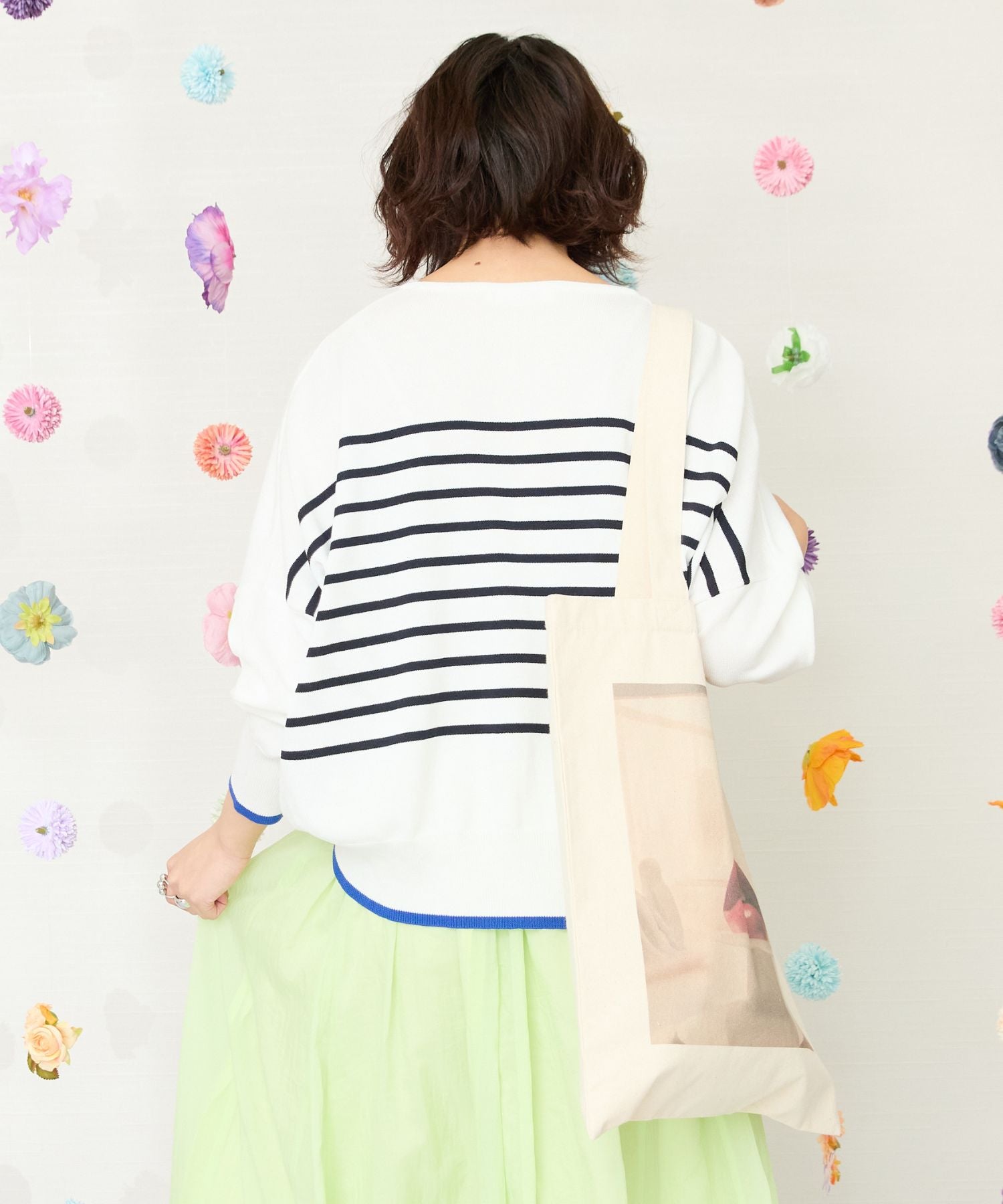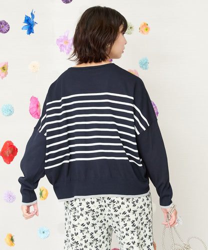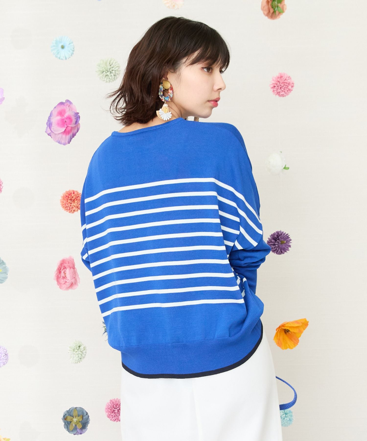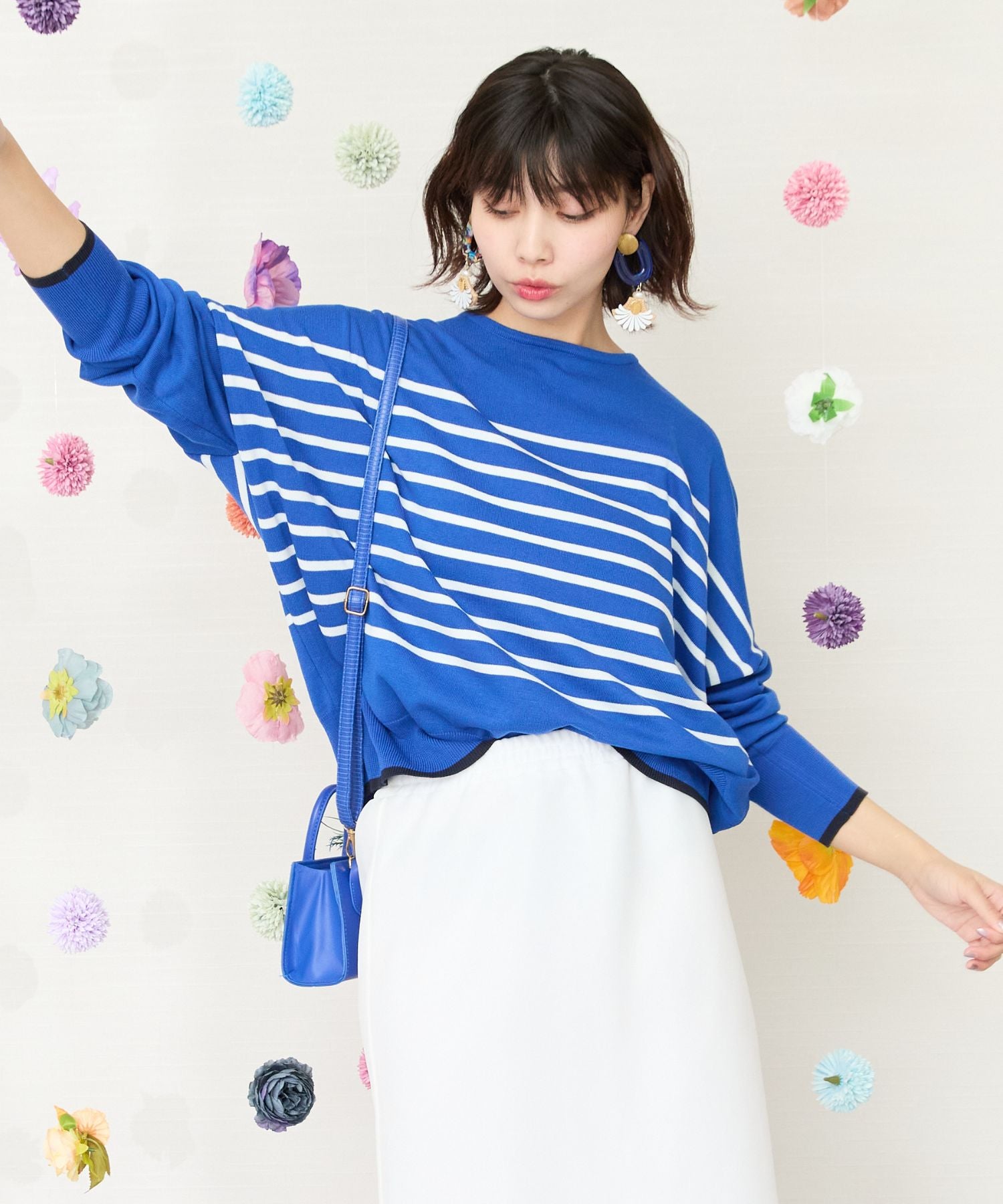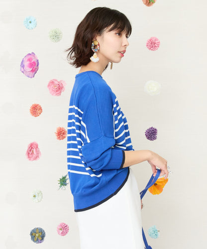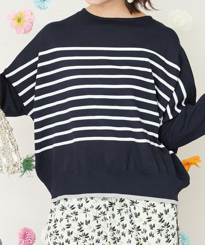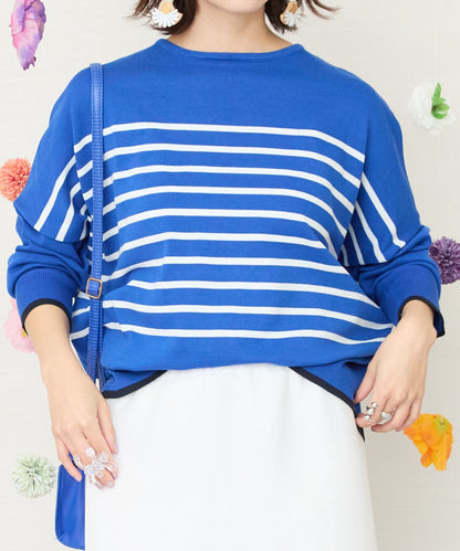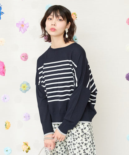 春夏らしい爽やかなパネルボーダーが魅力のニット。