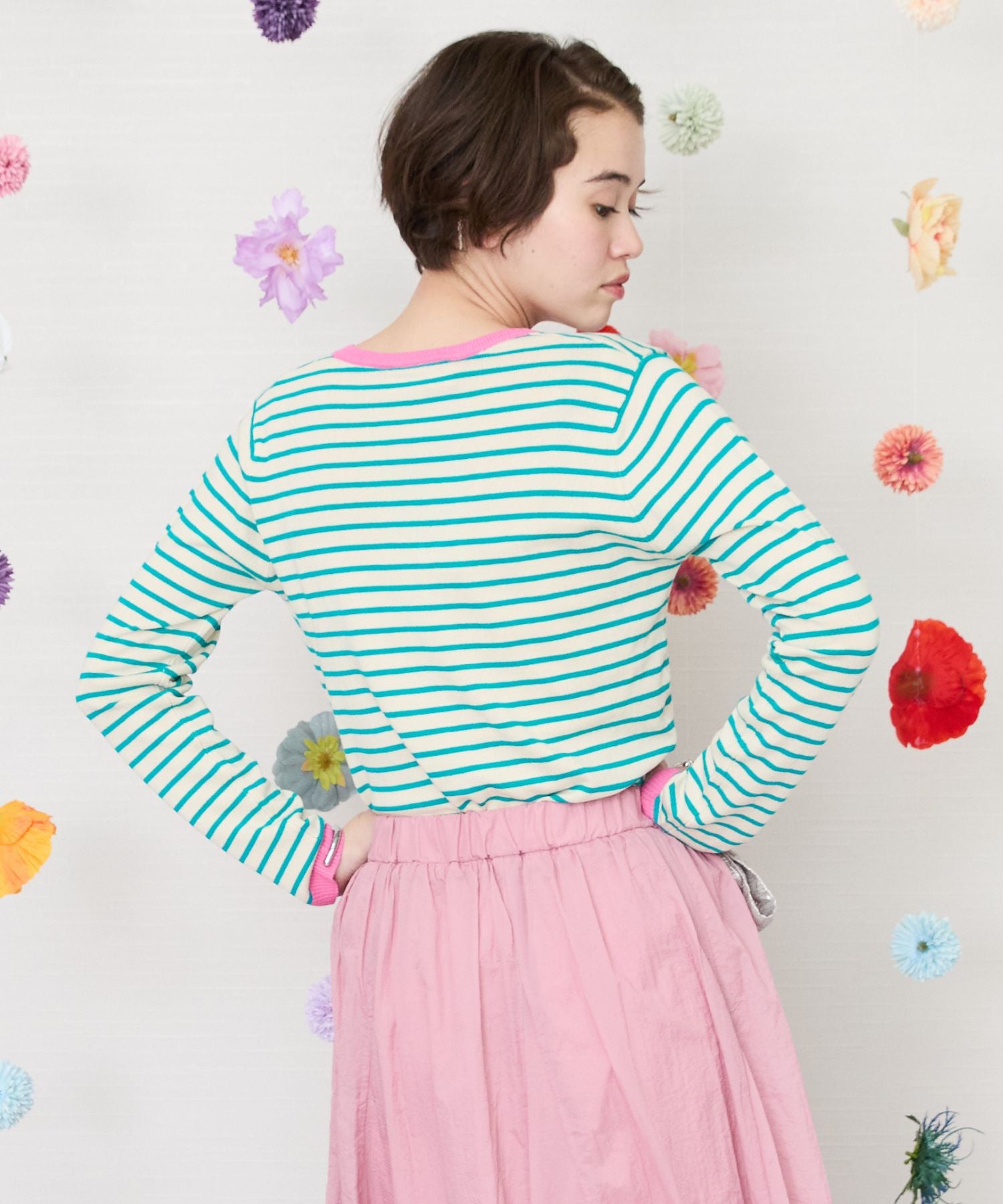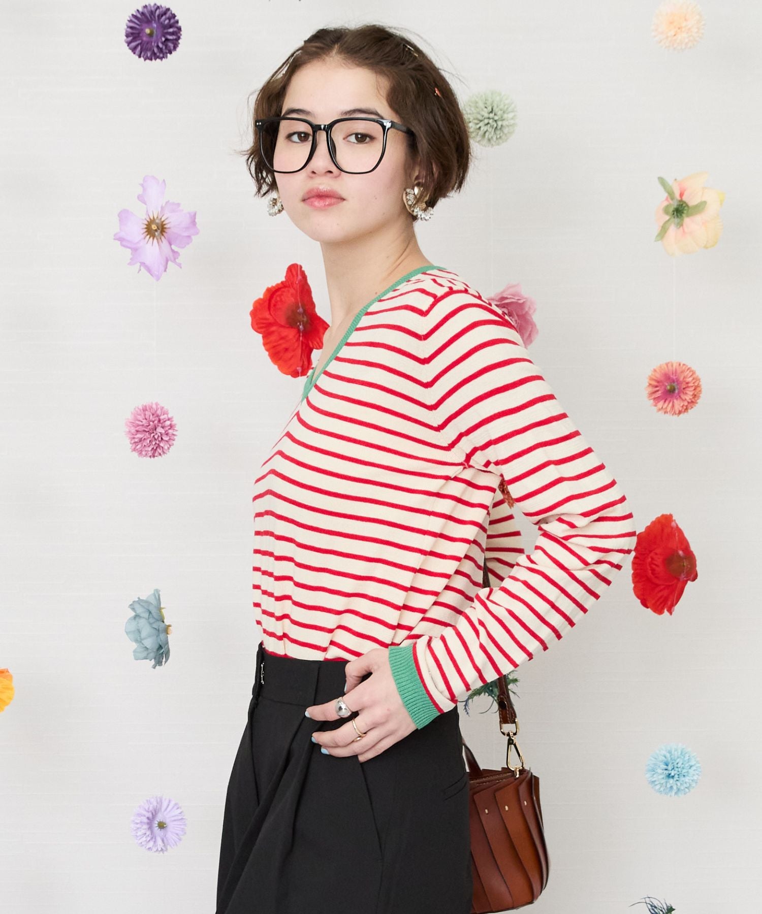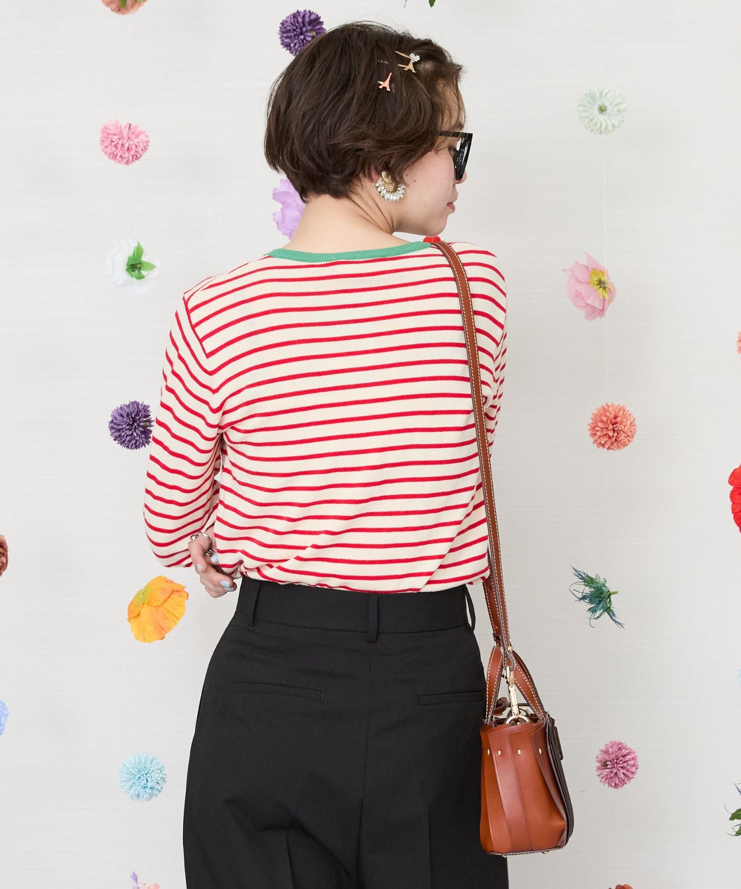 シンプルながらも洗練された印象の配色ボーダーニット。