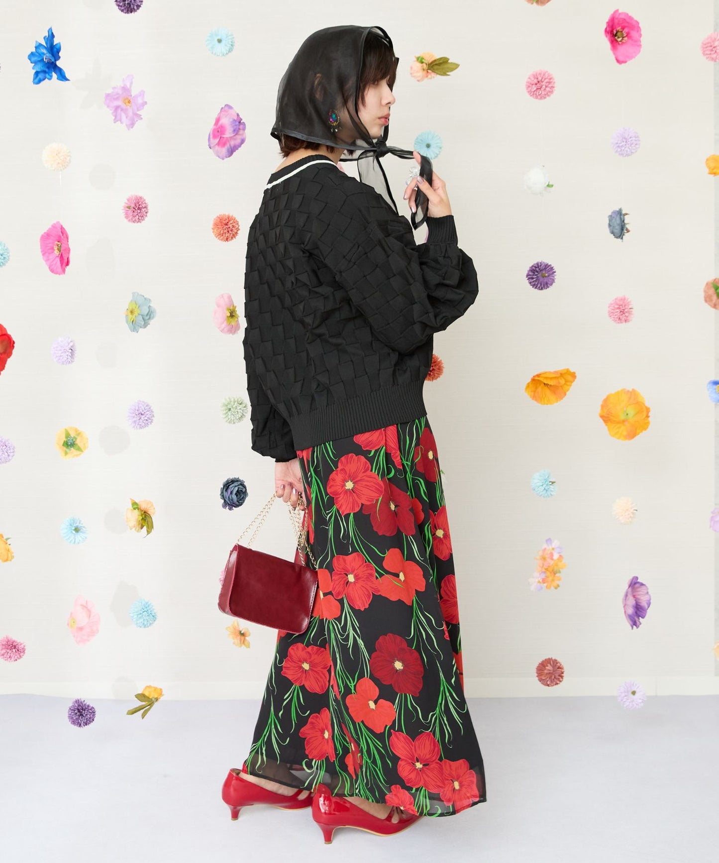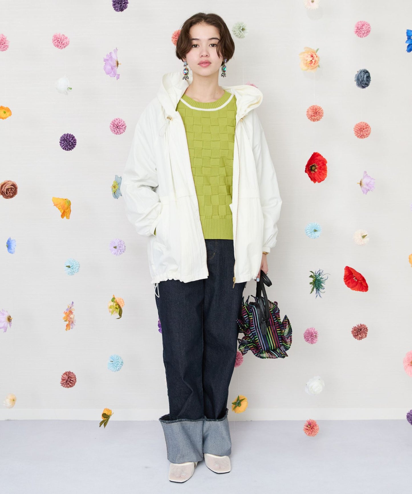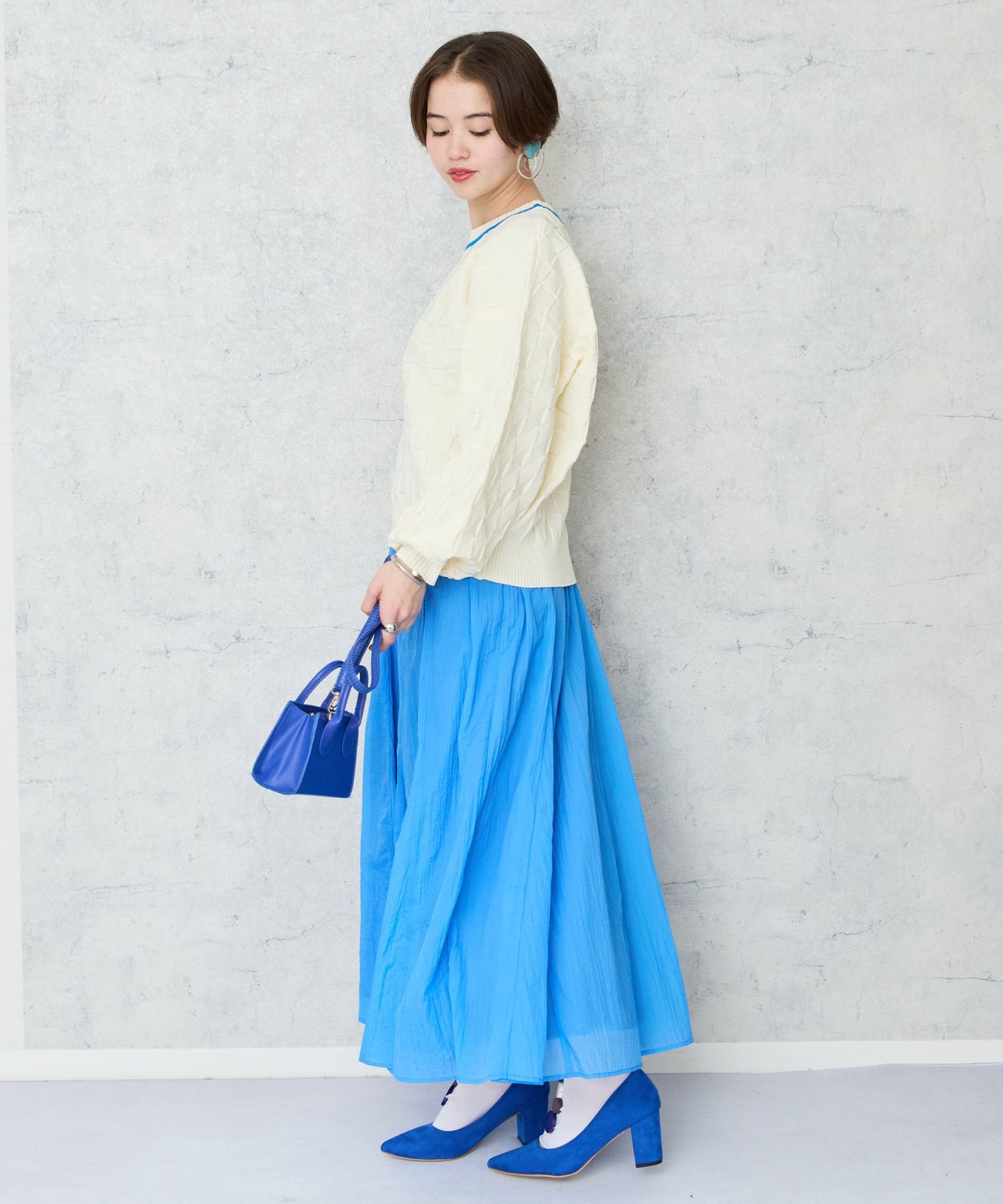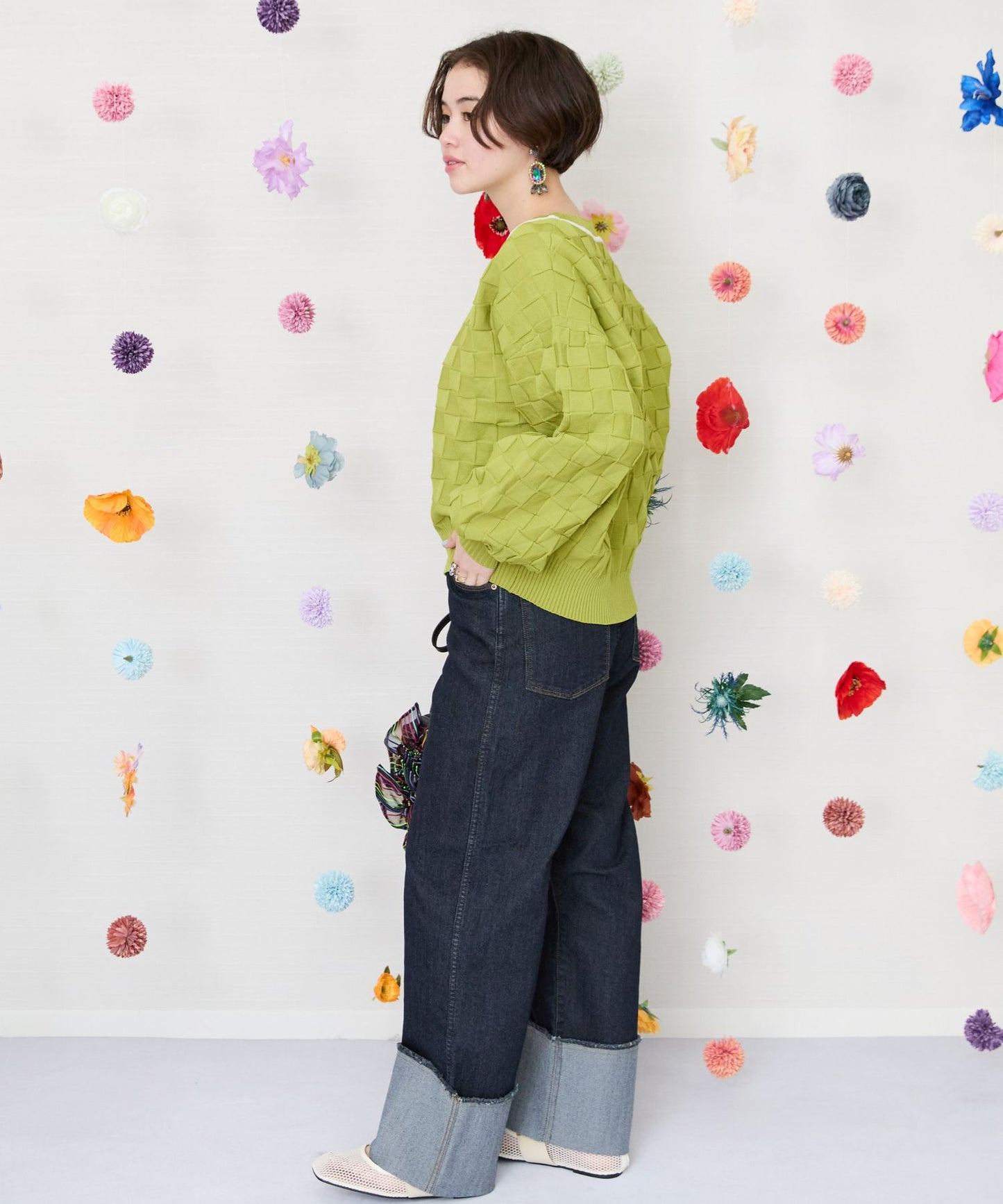 きれいな編地とネック部分の配色が華やかさをプラスします。