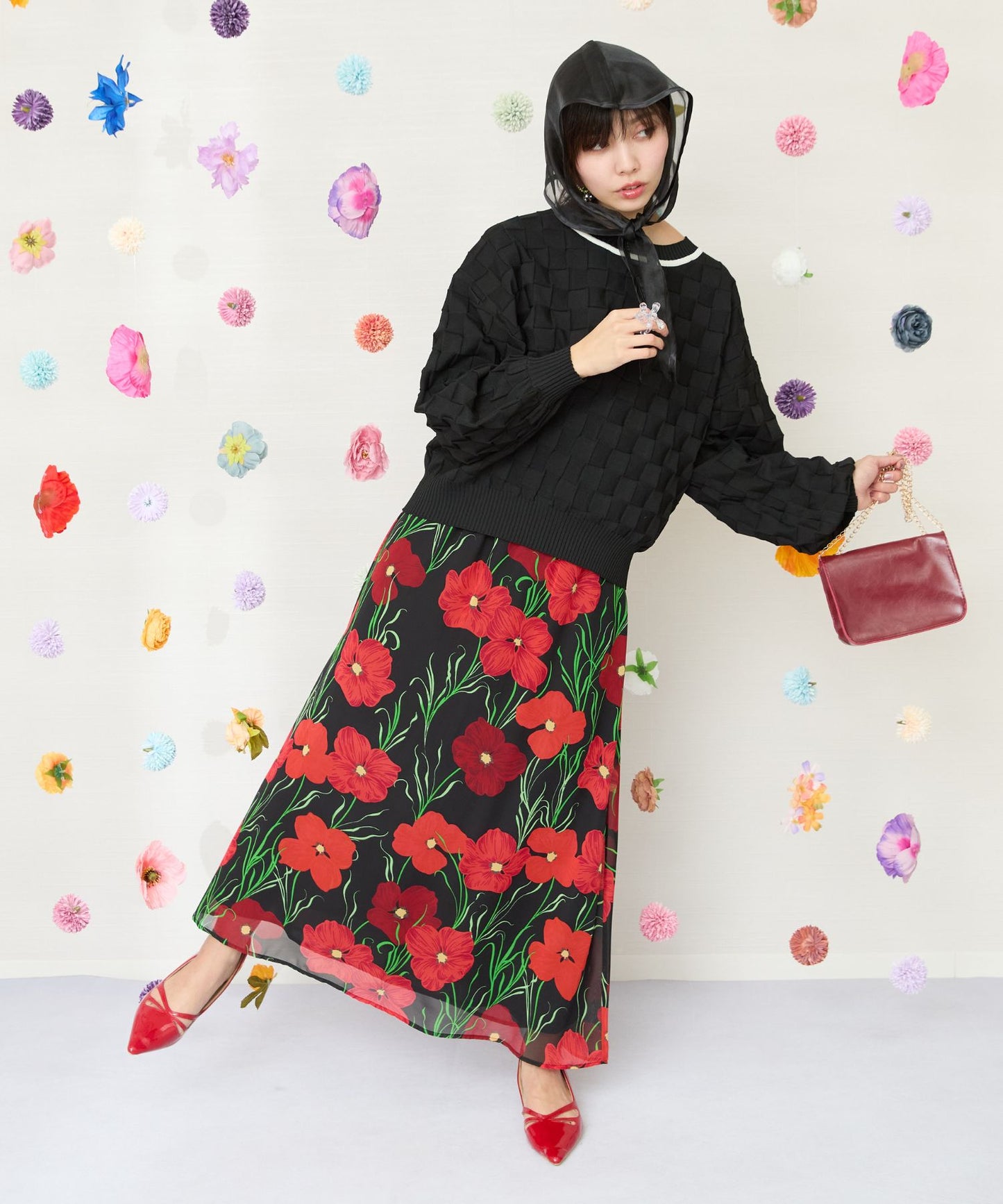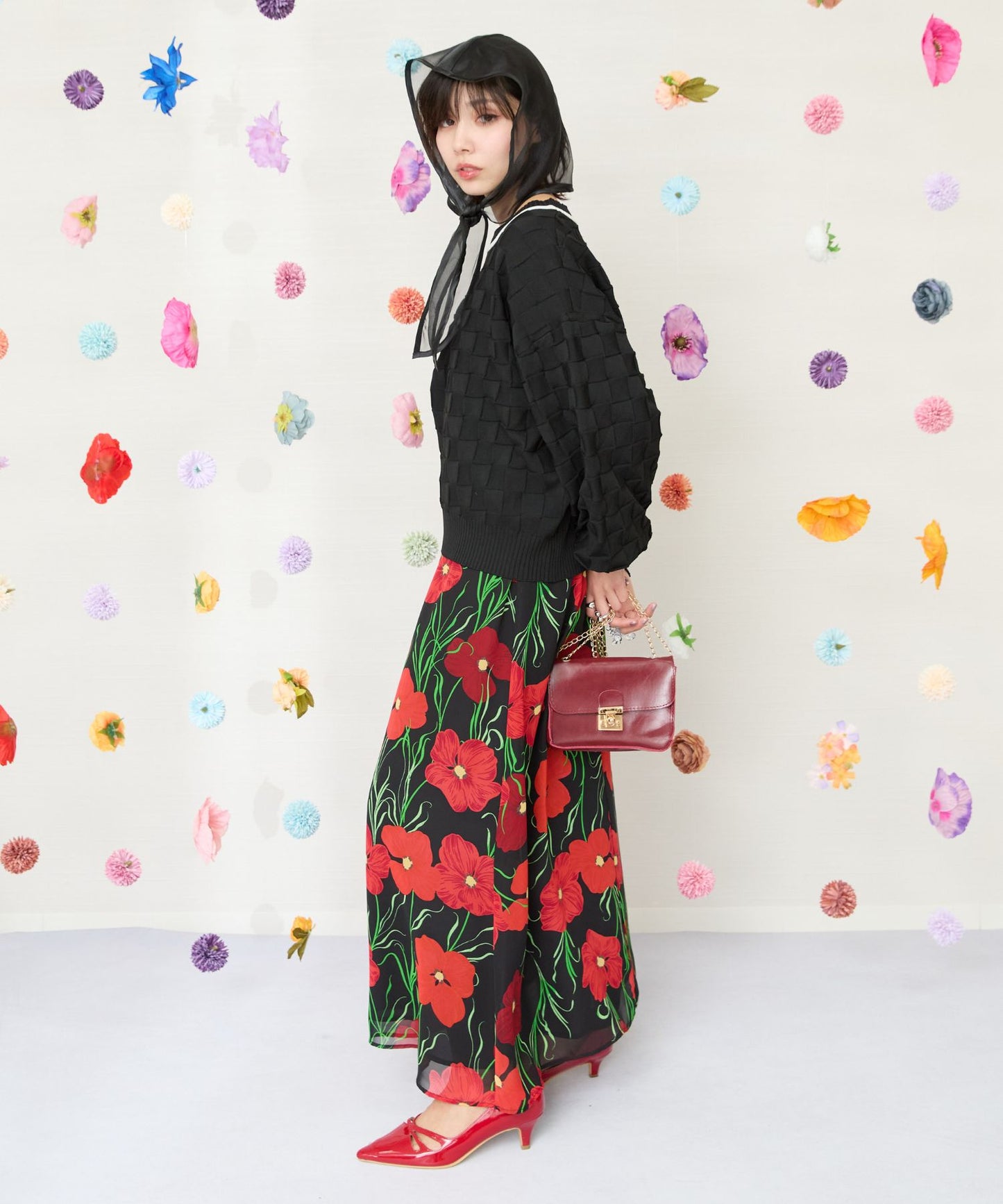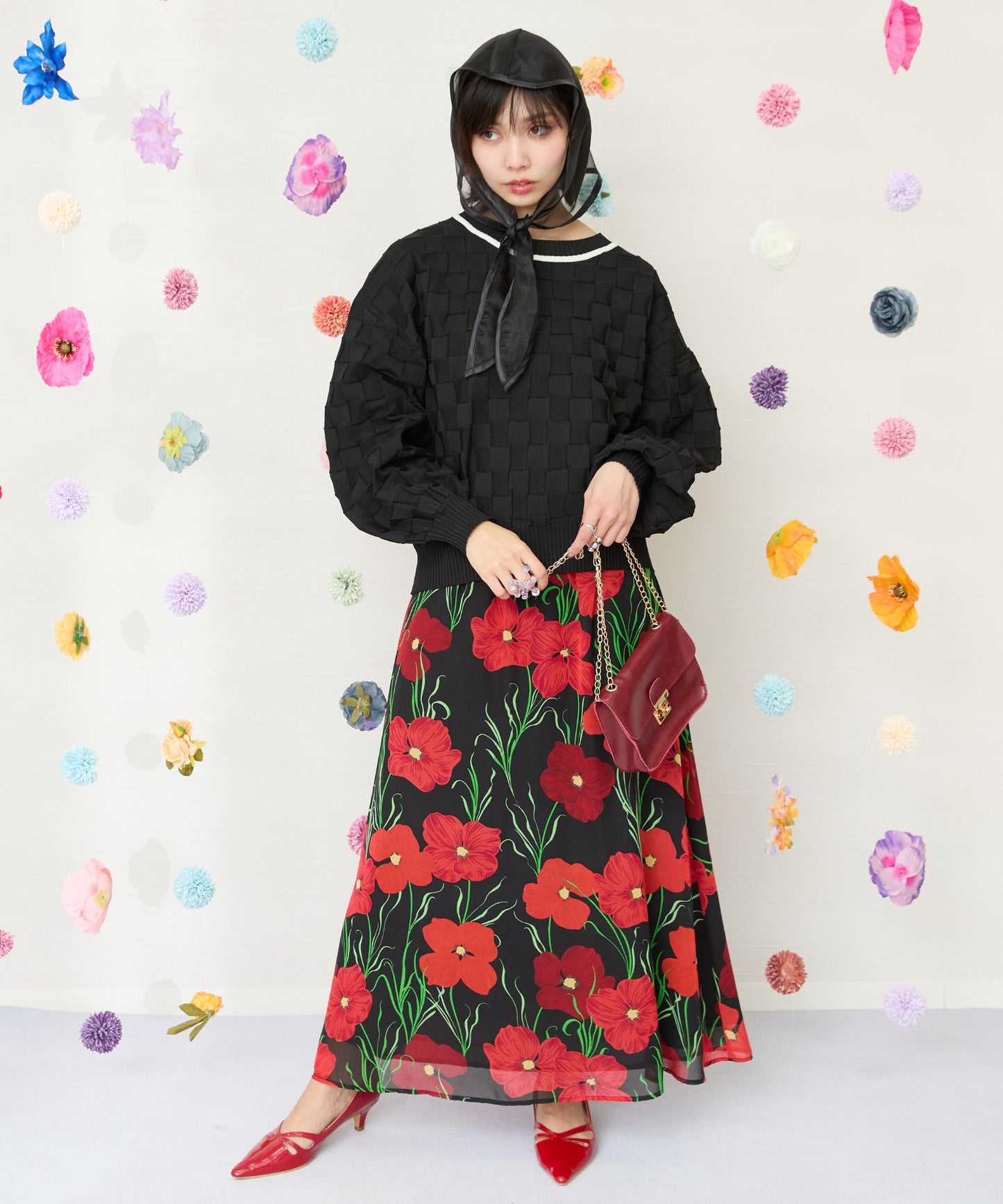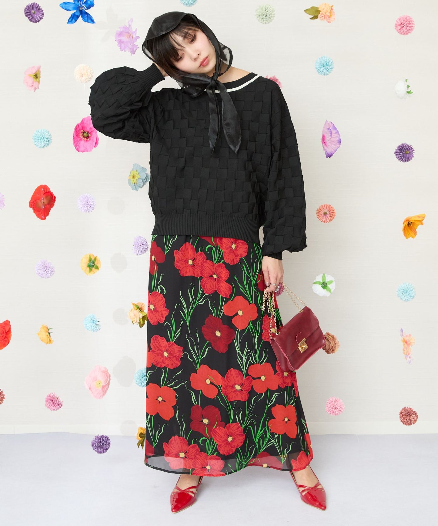 きれいな編地とネック部分の配色が華やかさをプラスします。