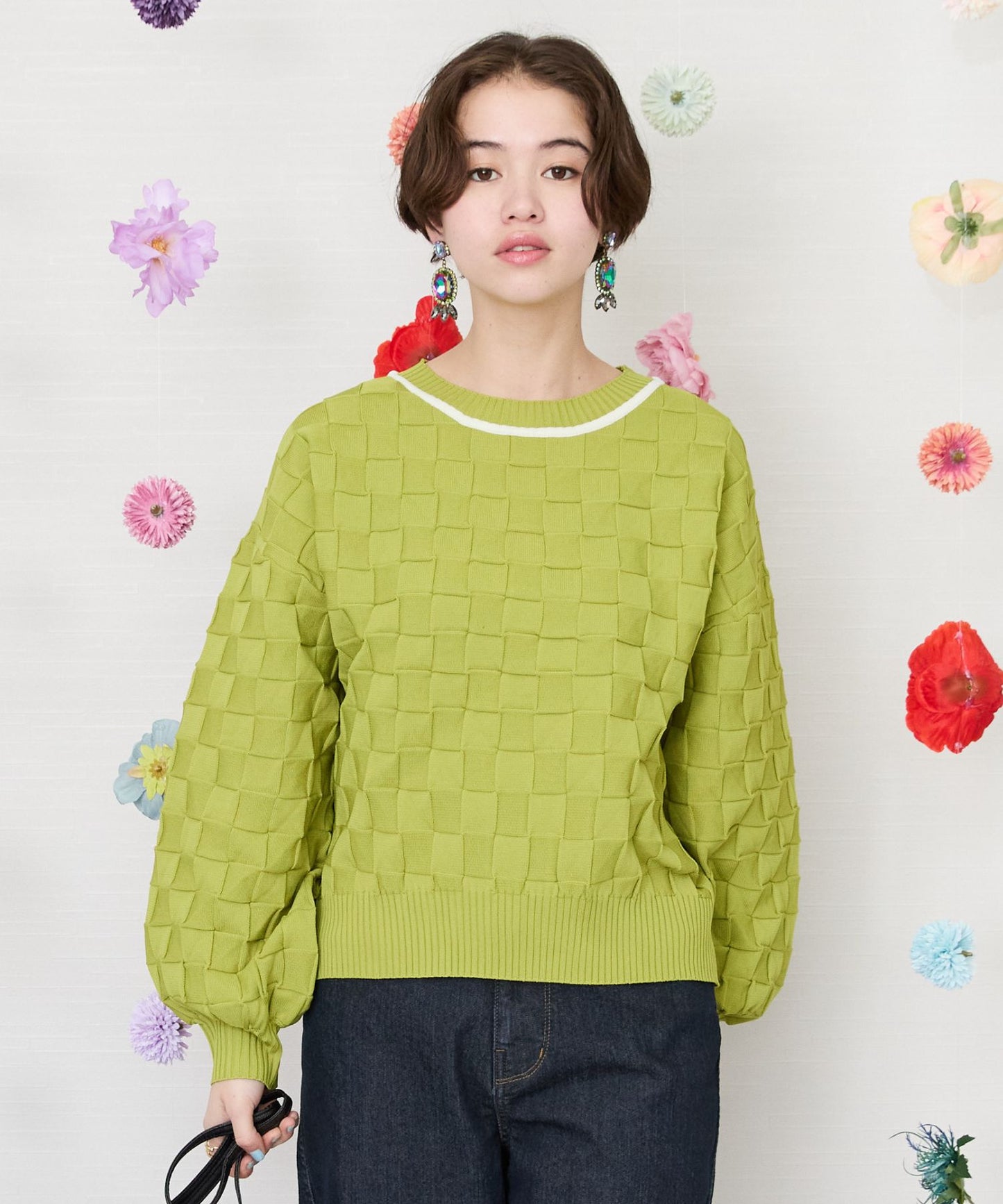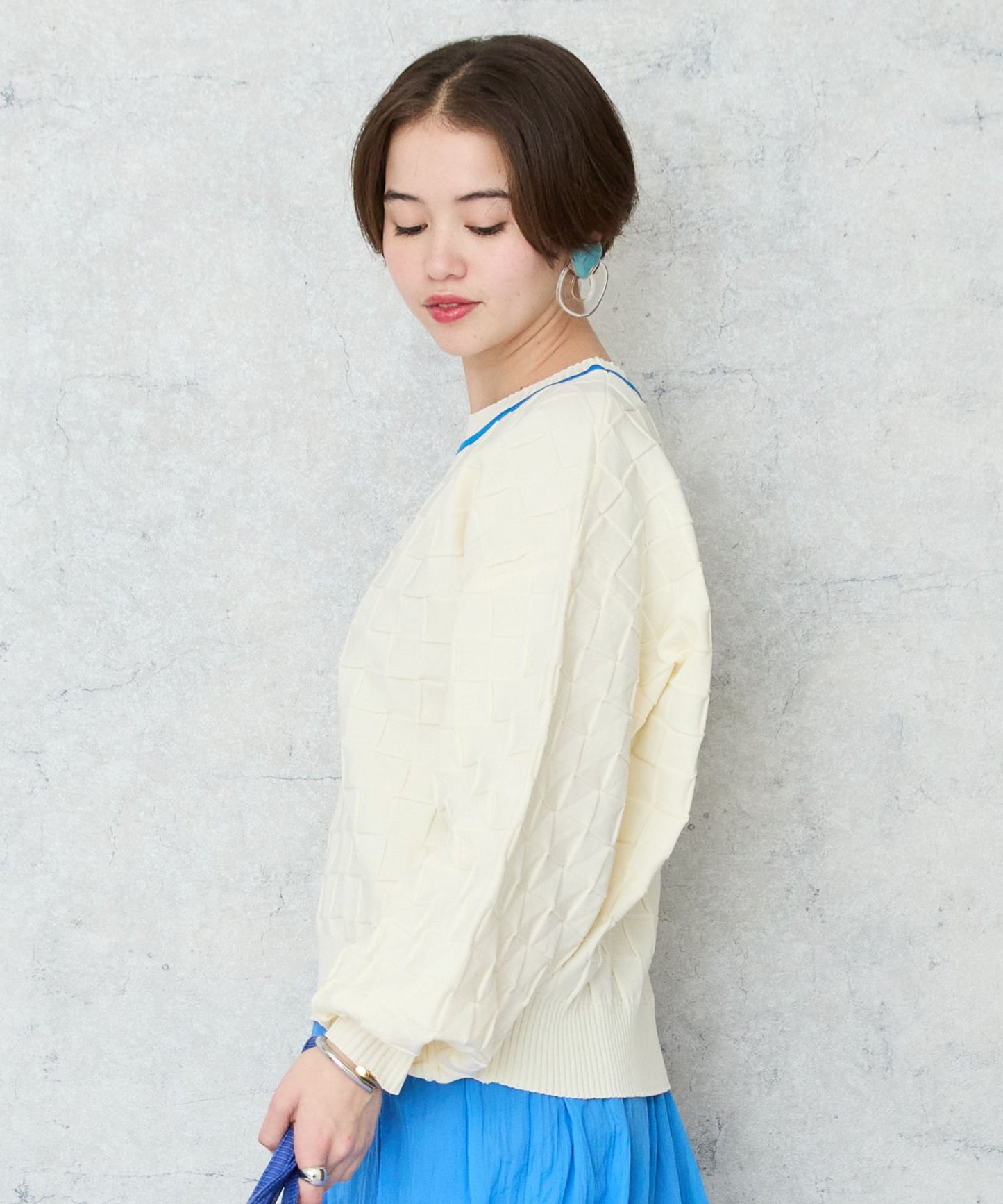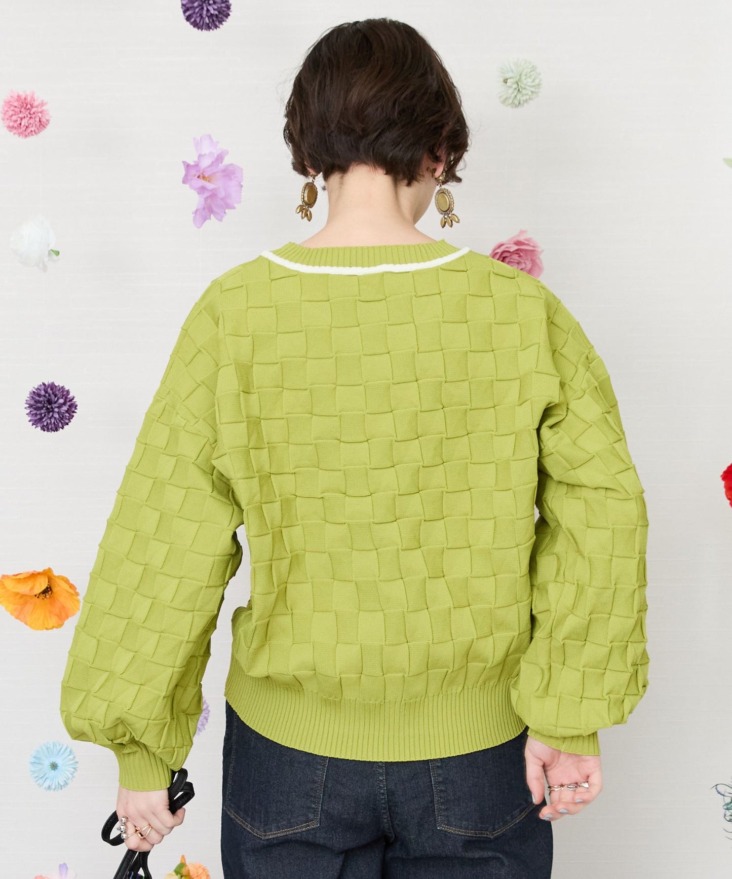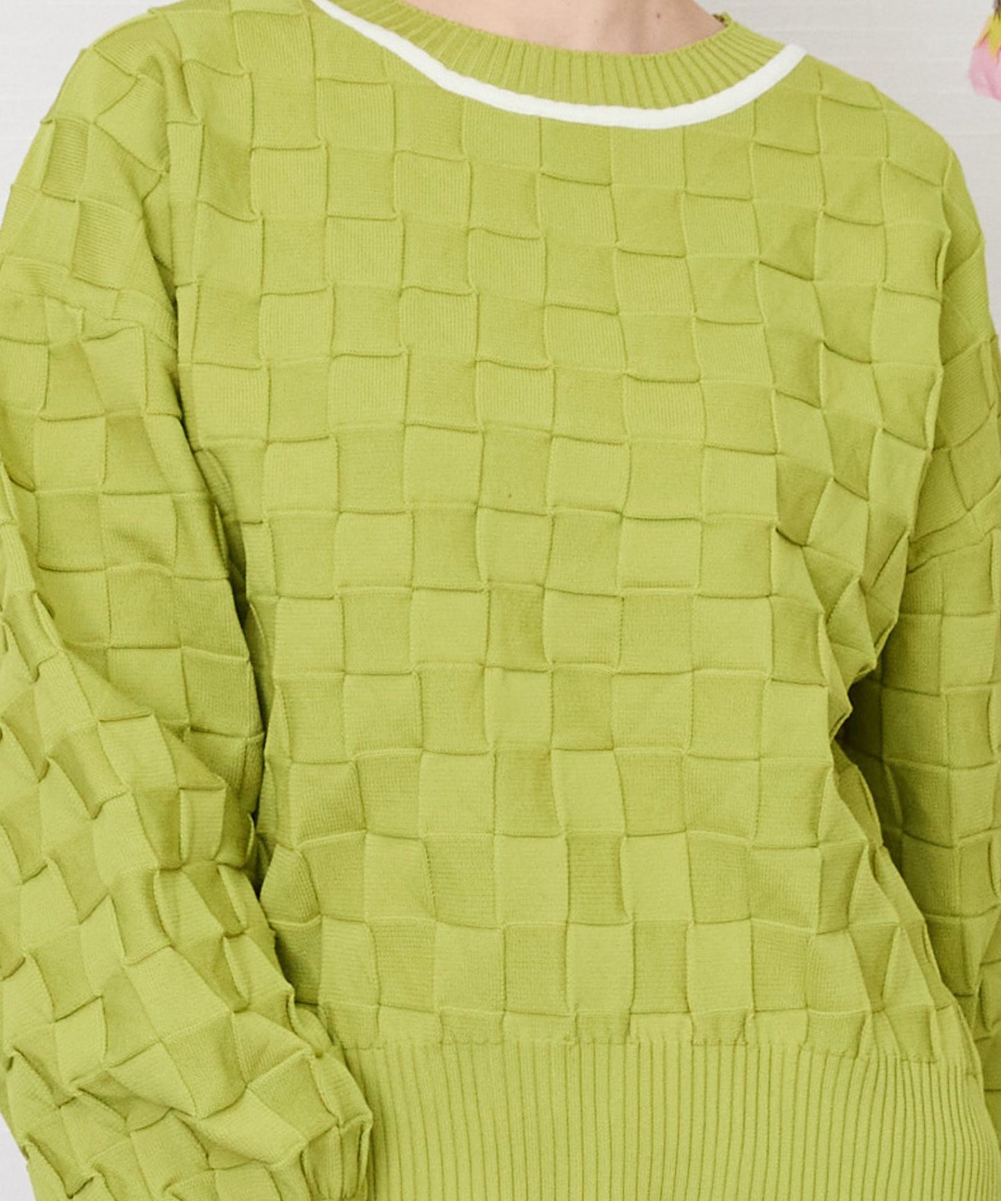市松模様のような凹凸感のあるリンクス編みが印象的なデザインニット。