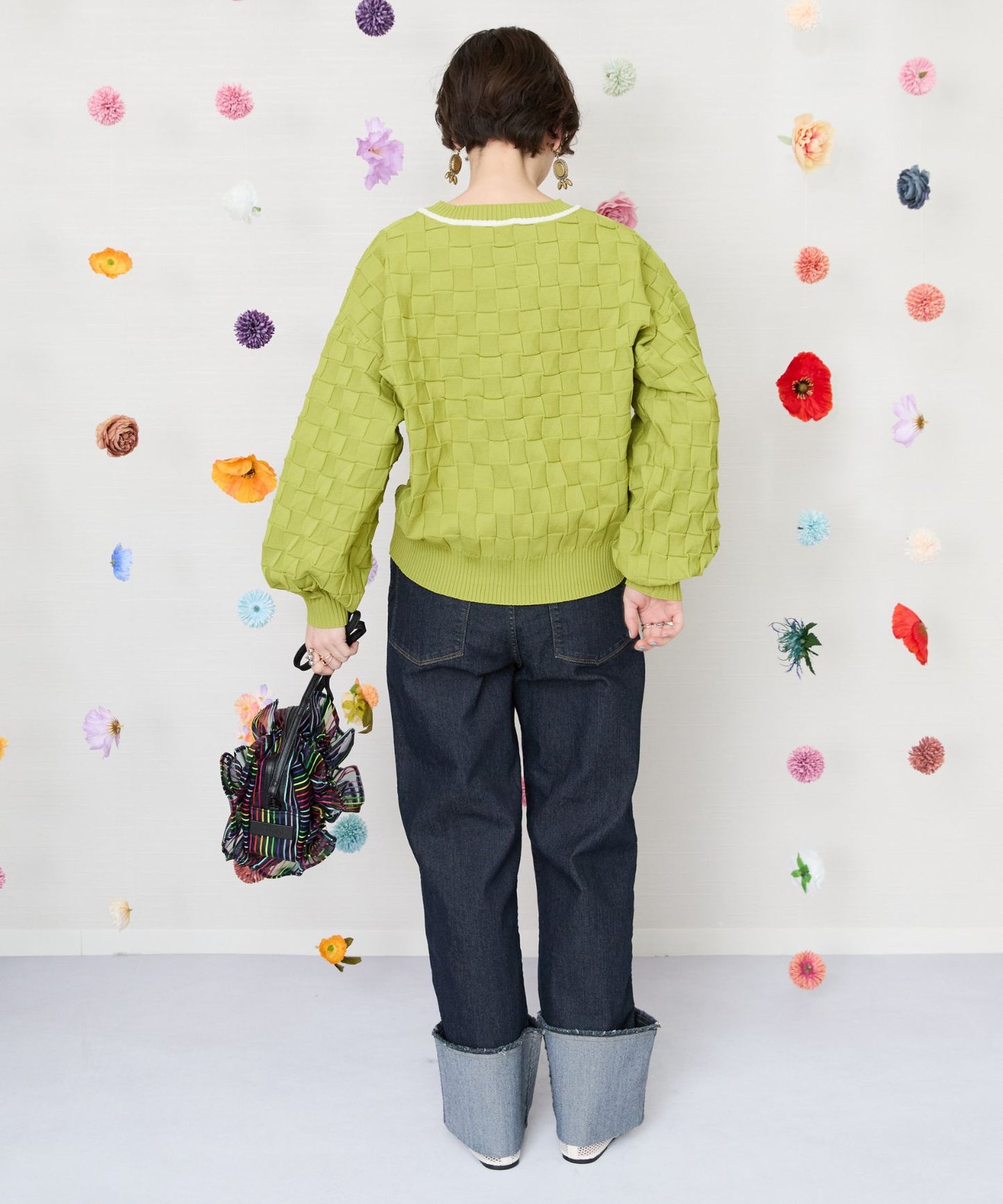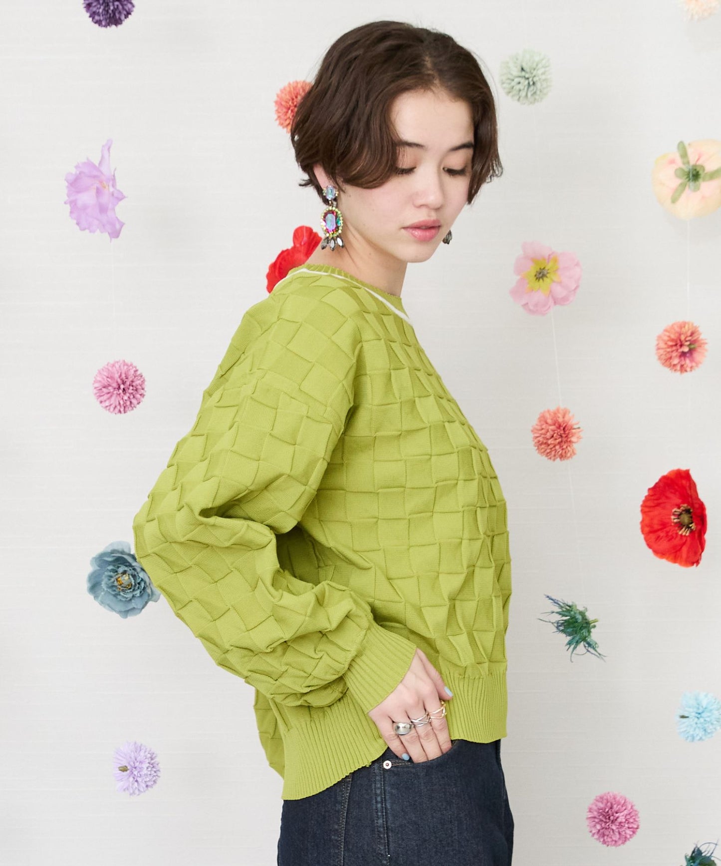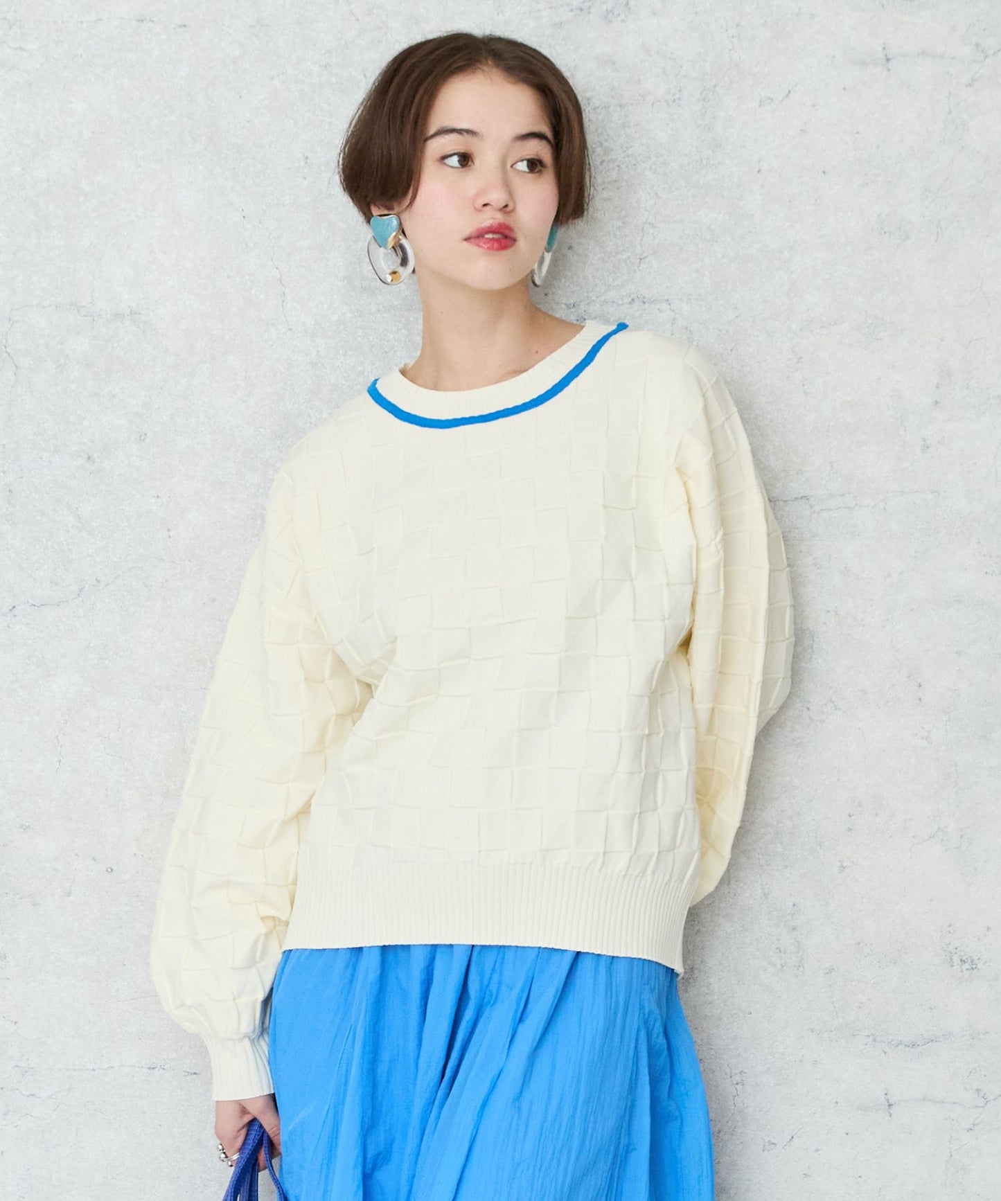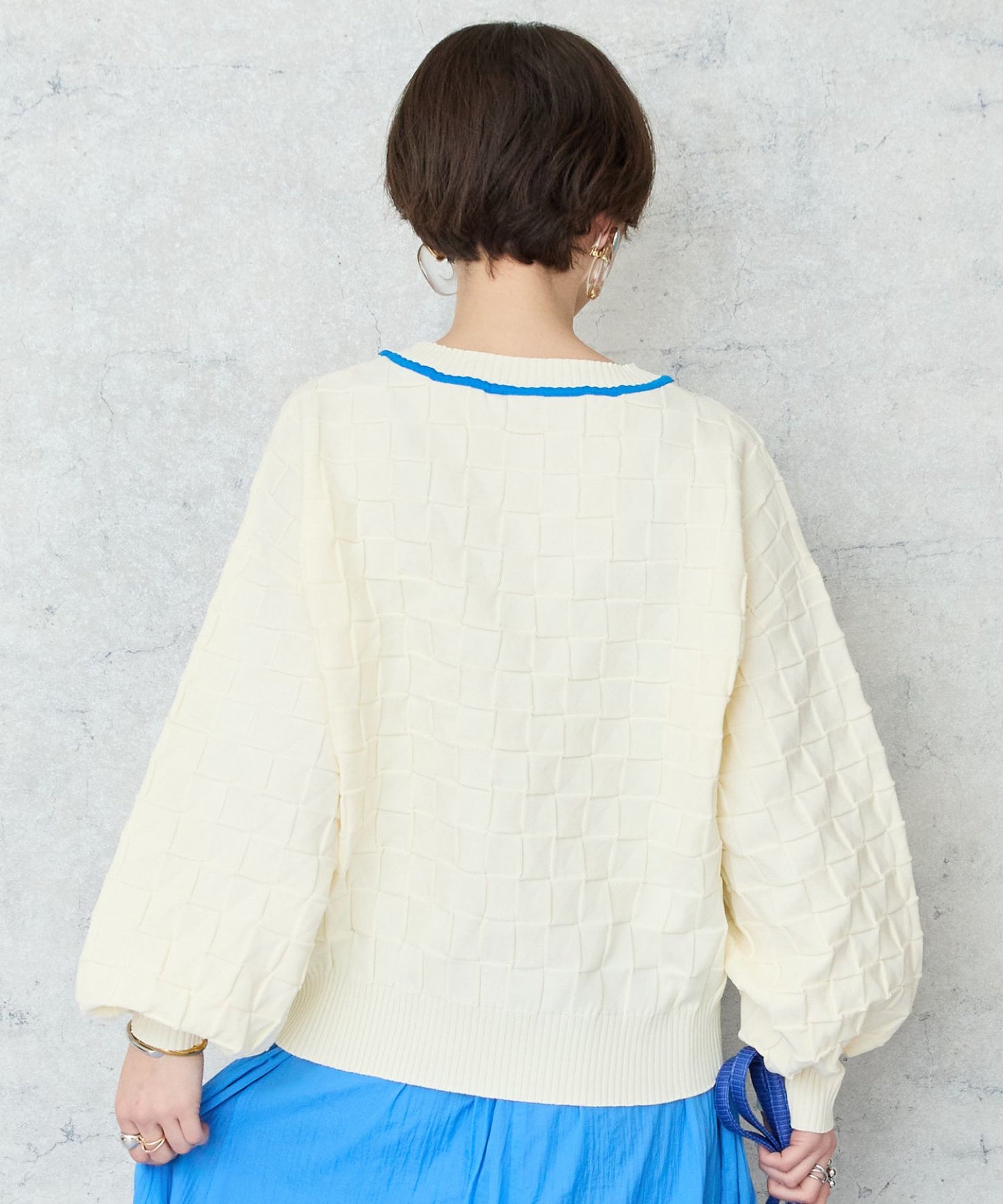 市松模様のような凹凸感のあるリンクス編みが印象的なデザインニット。