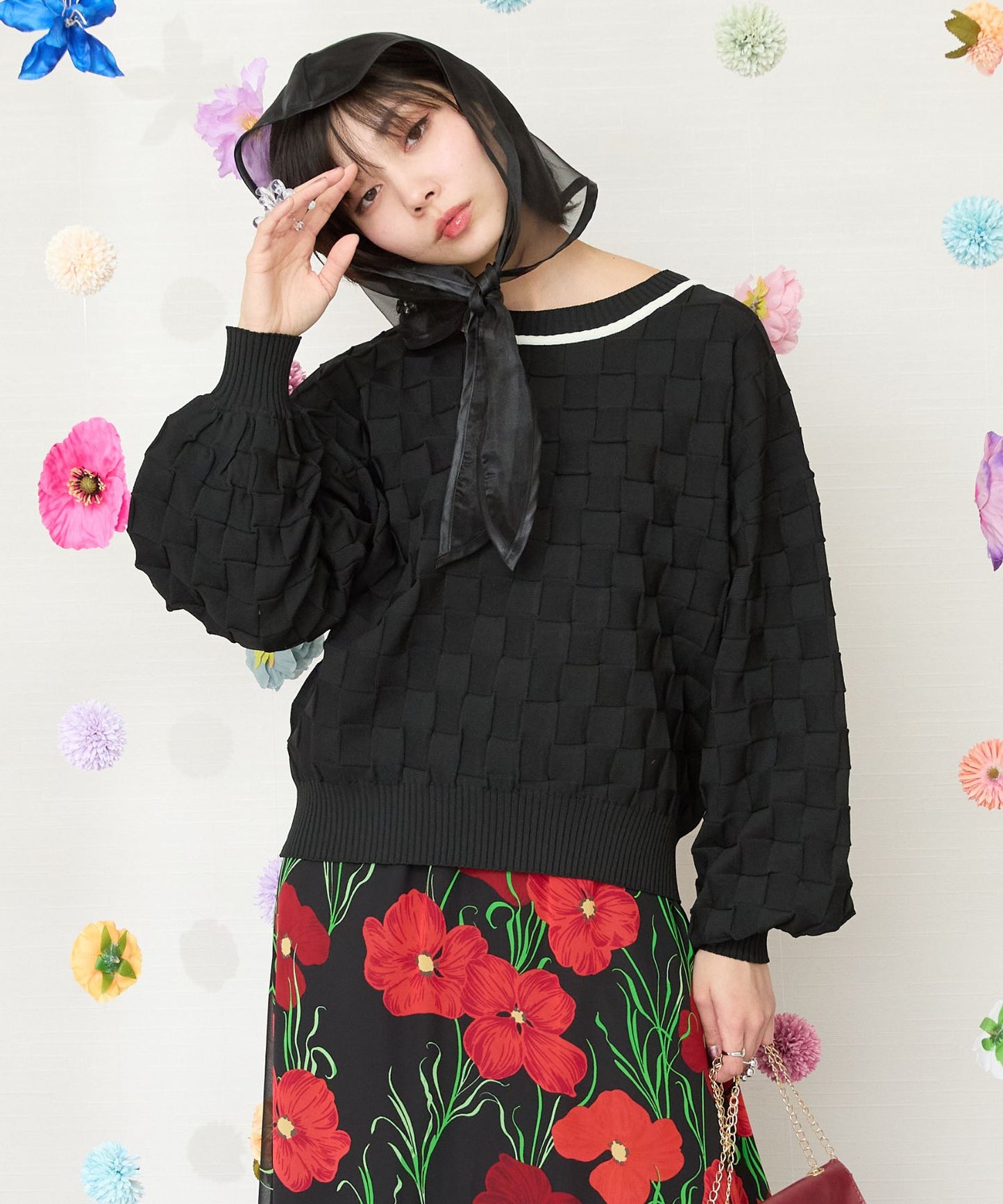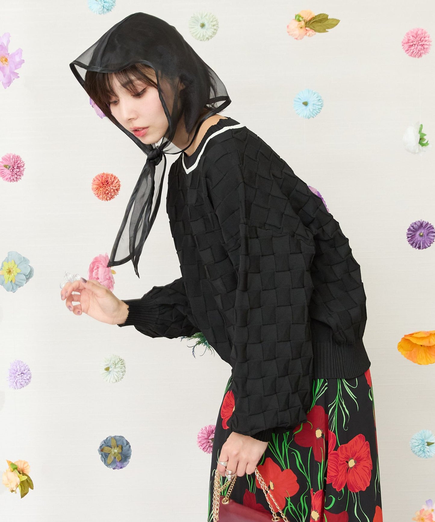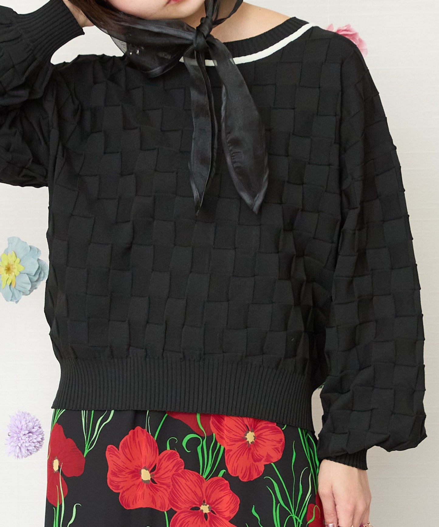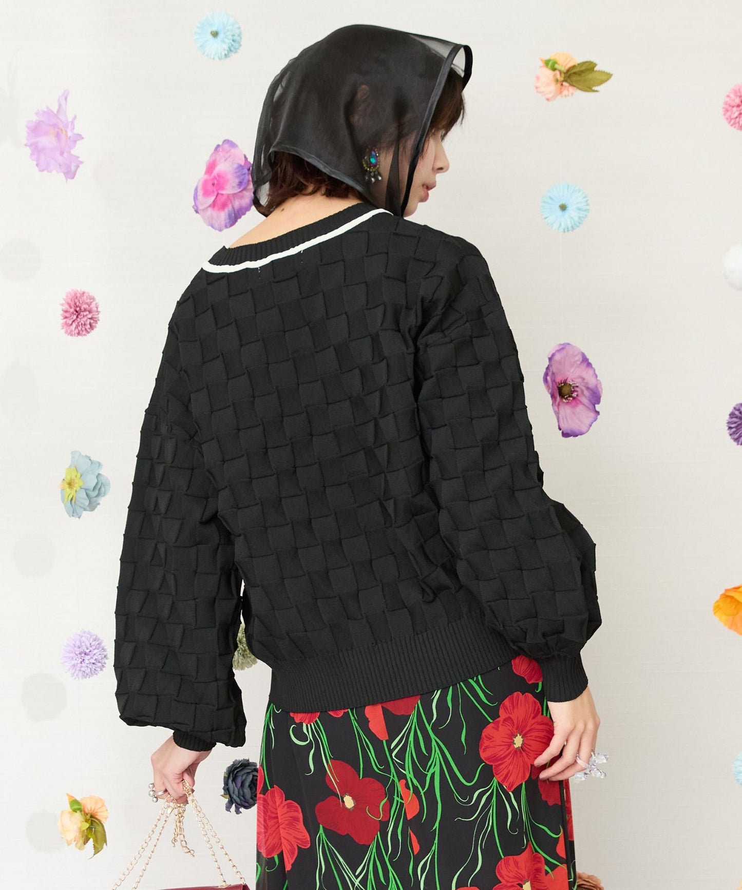市松模様のような凹凸感のあるリンクス編みが印象的なデザインニット。