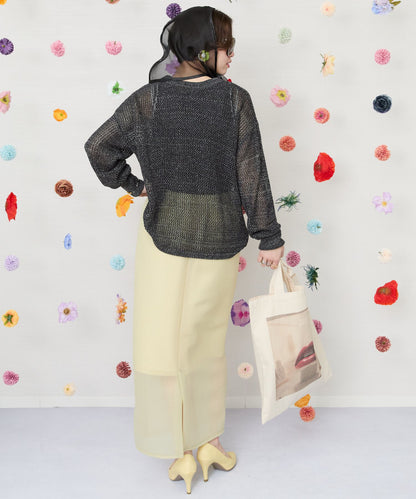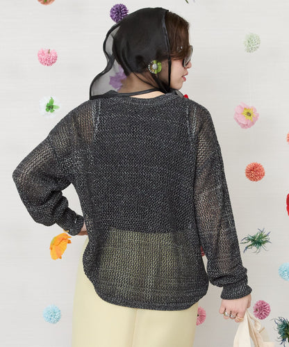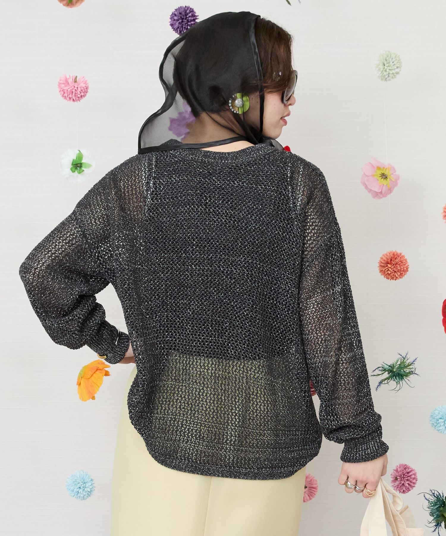 ラメをブレンドしたメッシュ素材を使用し、軽やかで透け感のある仕上がりに。