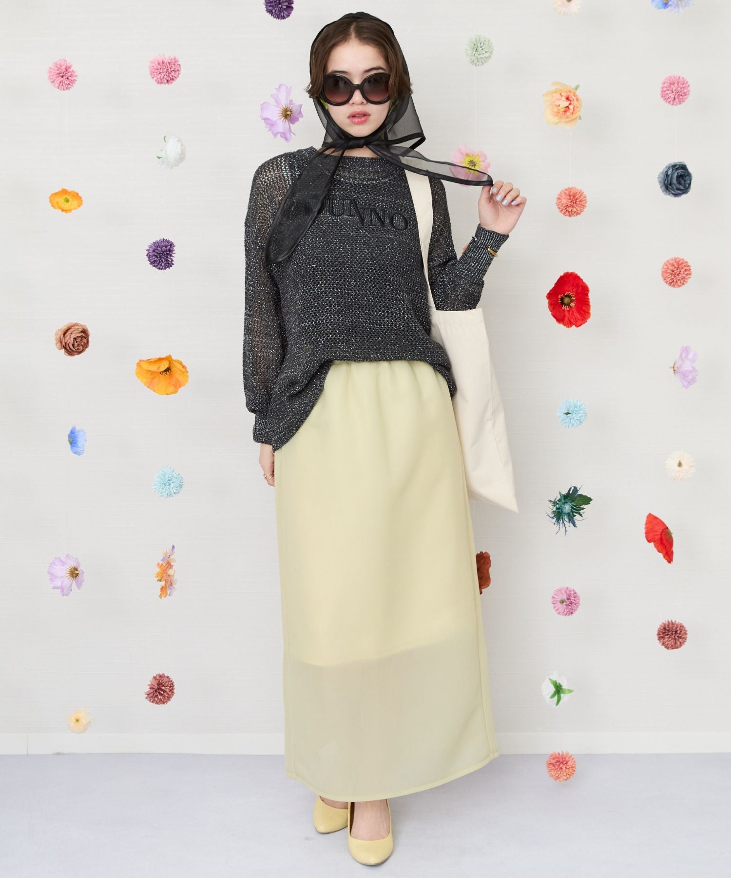 煌めくラメ×ロゴで魅せる大人カジュアルニット