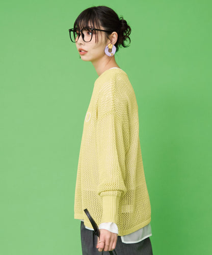 煌びやかなラメと配色ロゴがアクセントになったデザインニット。