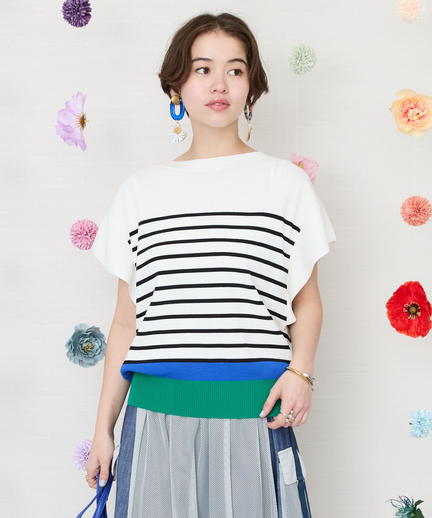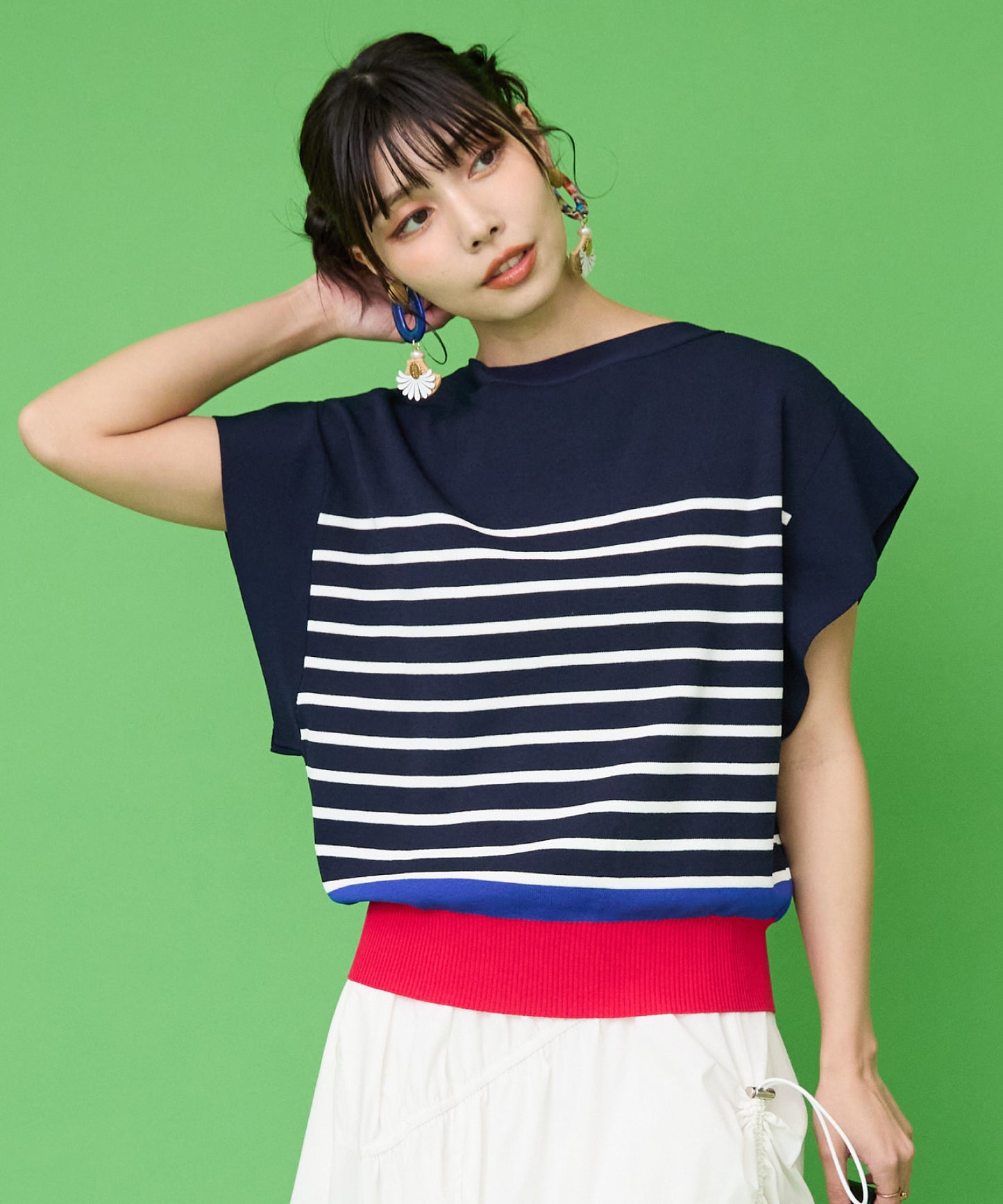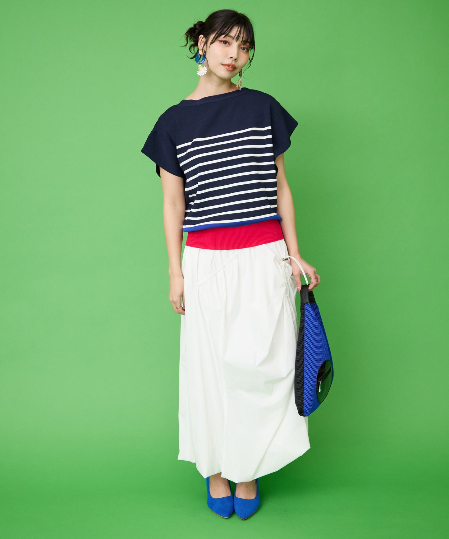 ボートネックデザインが上品な抜け感を演出し、顔周りをすっきりと見せてくれます。