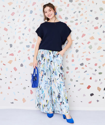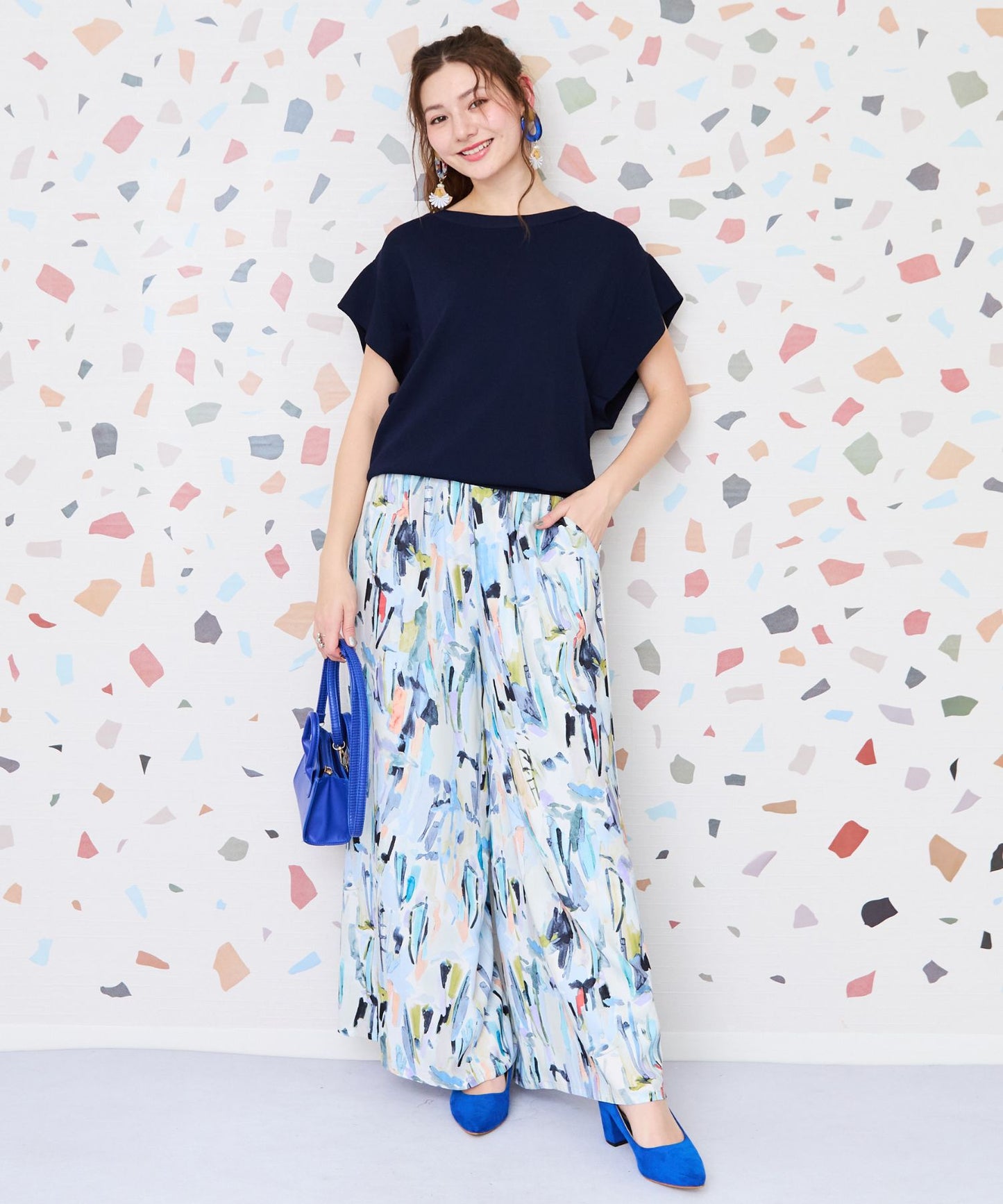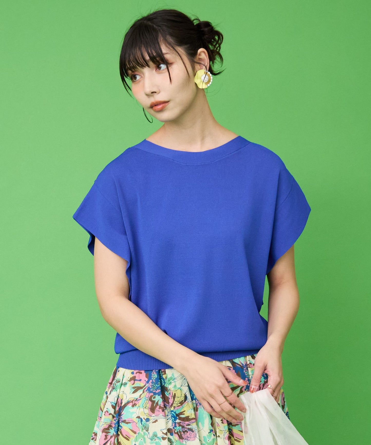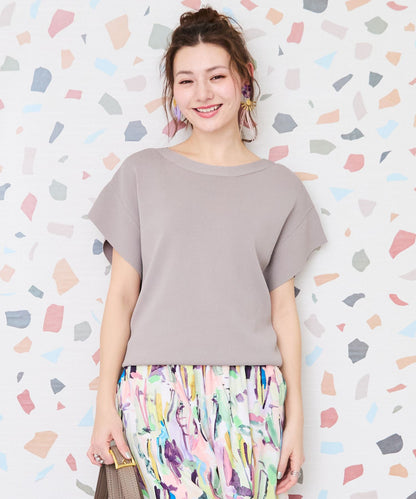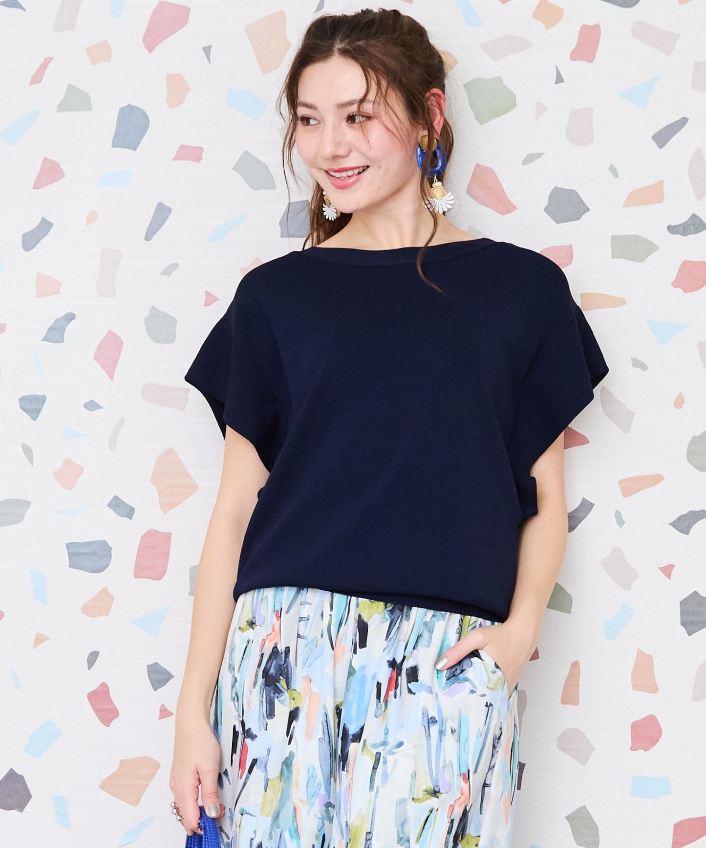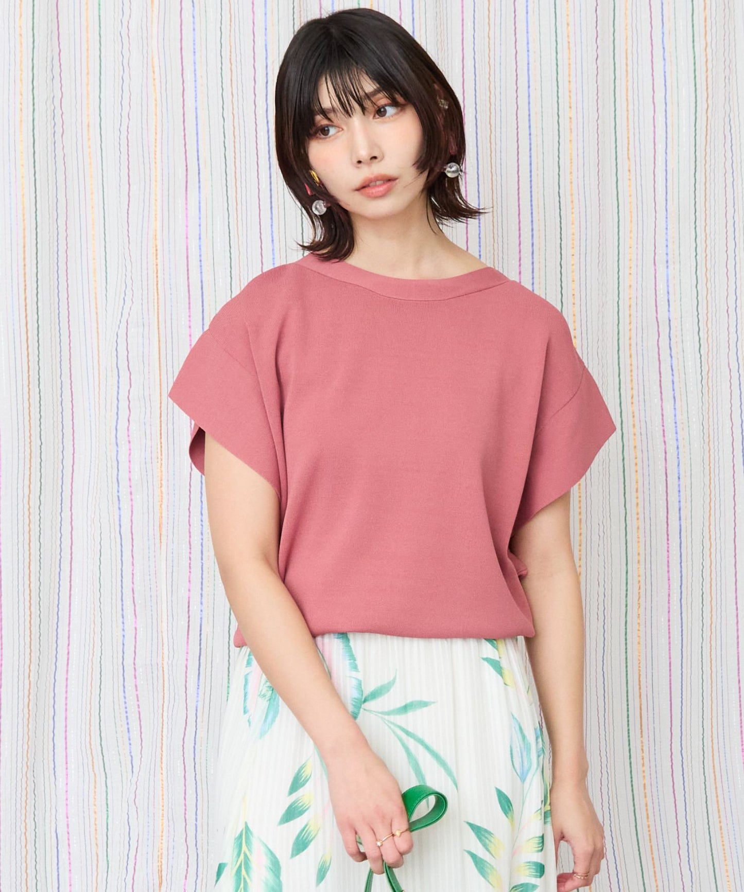 ボートネックのすっきりとした開き具合で顔まわりも上品な印象に。