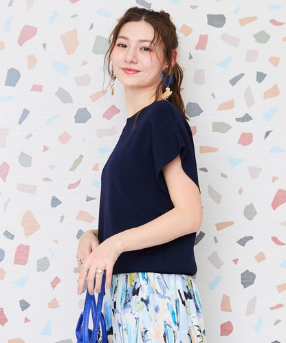 定番のフレンチスリーブデザインで、二の腕をきれいにカバーしながら涼しげな印象に。