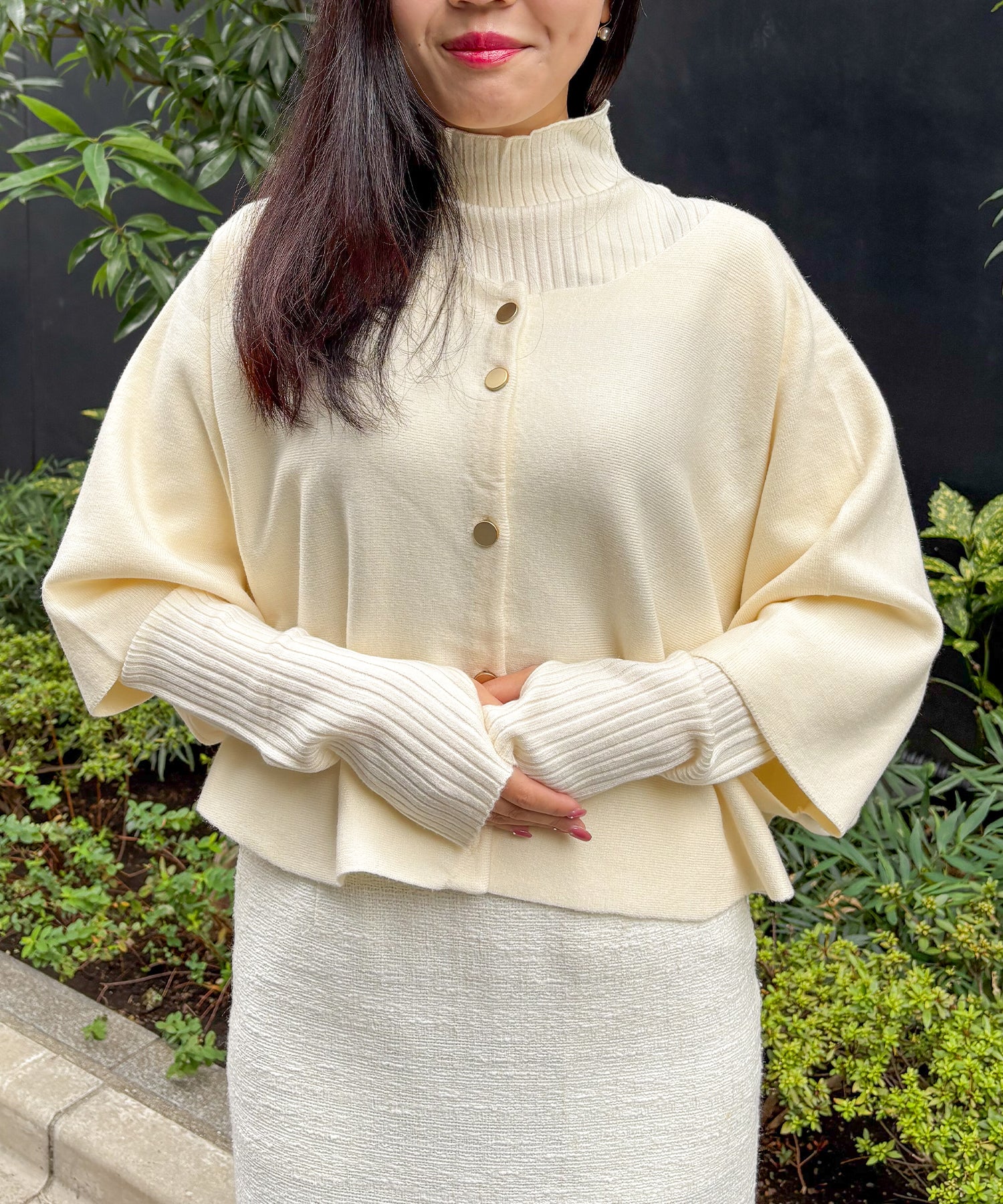 【2WAYで着映える、バイカラーボトルネック×ケープアンサンブル】