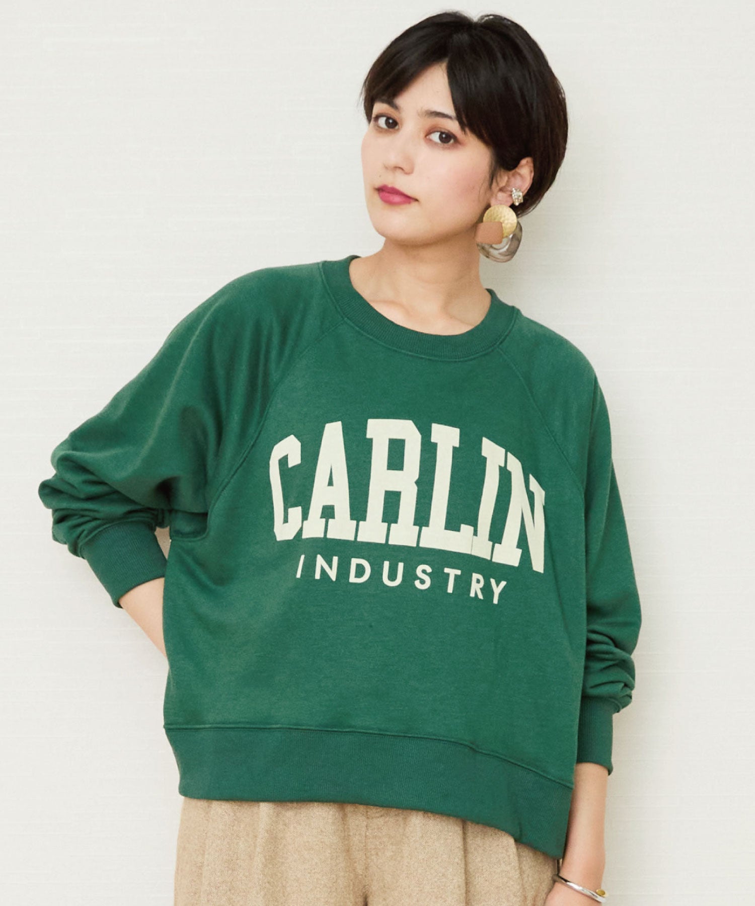 トレンドのカレッジロゴプリントとラグランスリーブがスポーティーな印象に仕上がります。