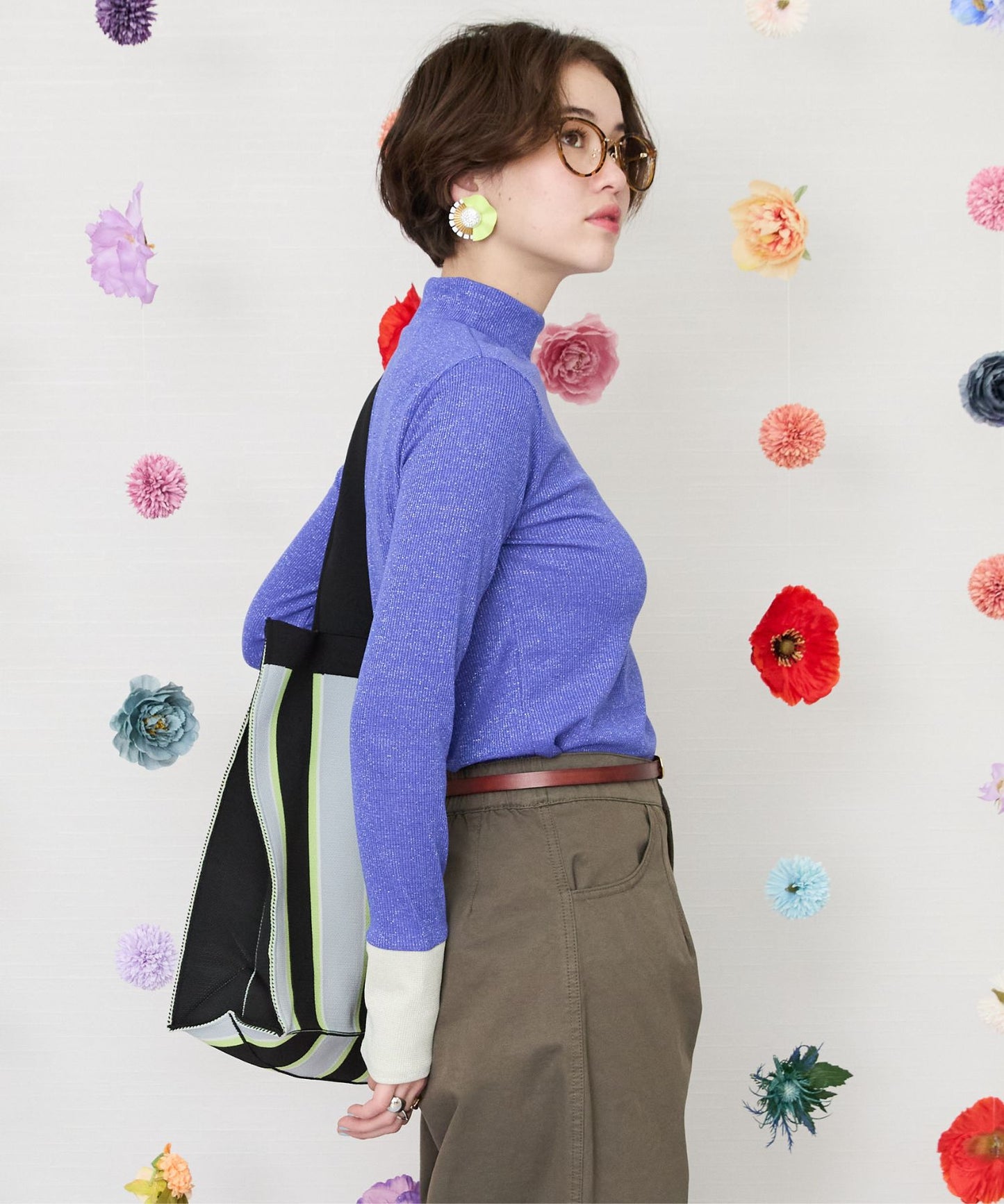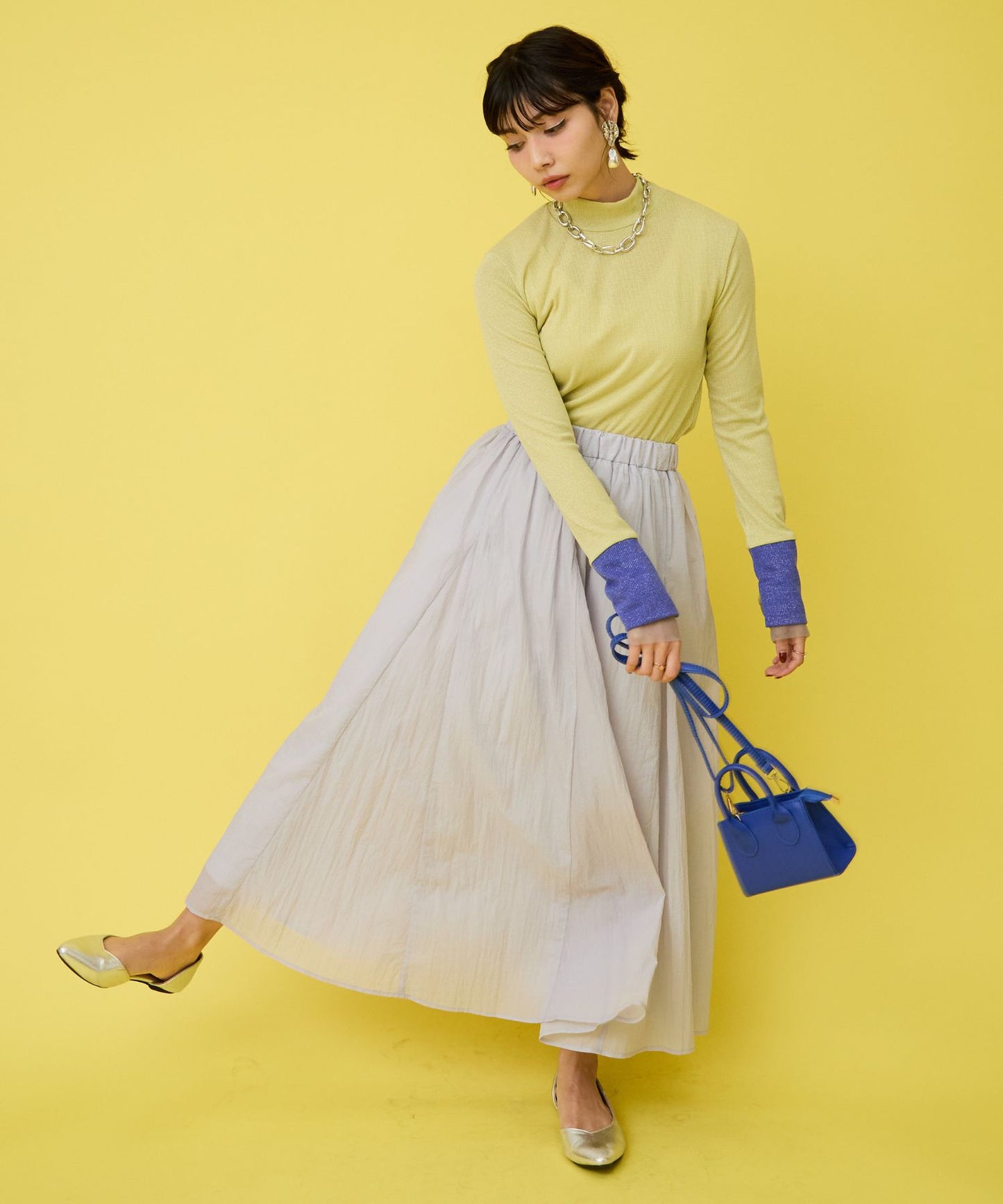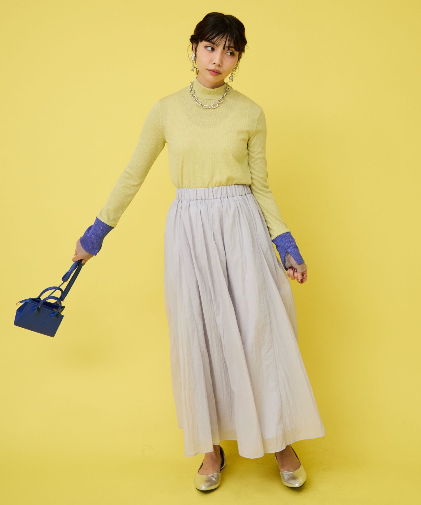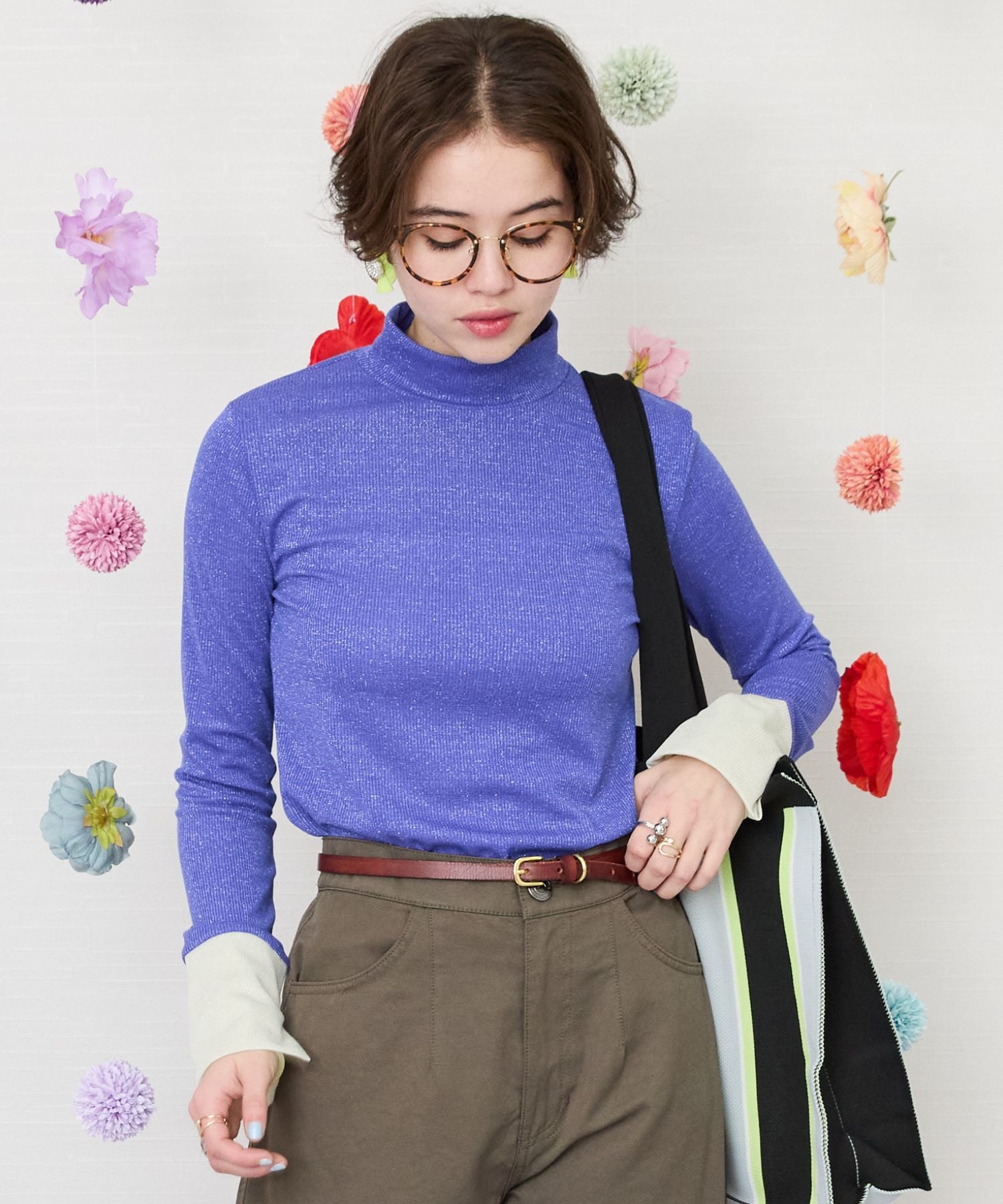 春にぴったりのブライトカラーに、キラキラと輝くラメが目を引くハイネックカットソー。