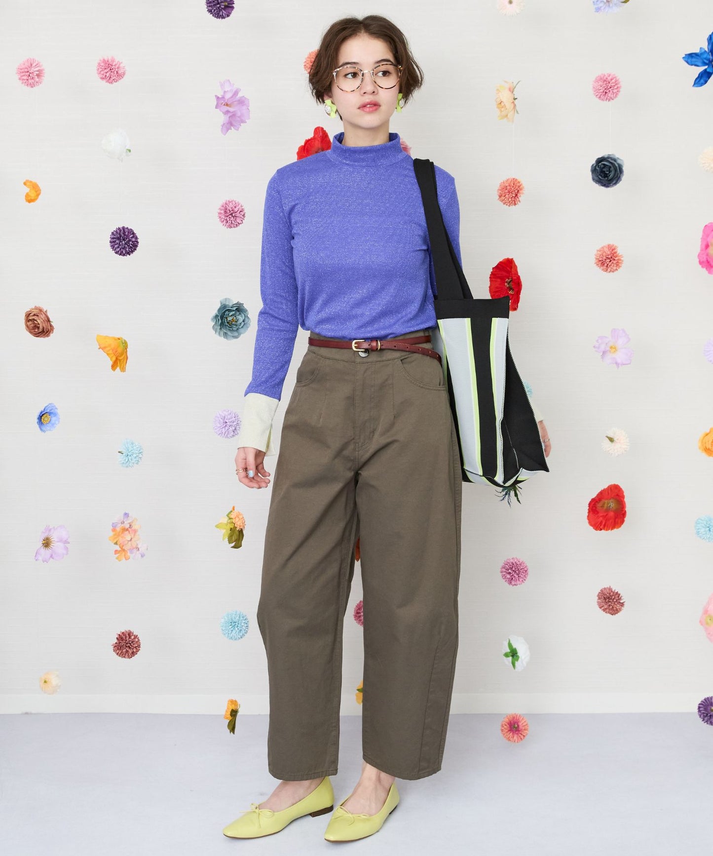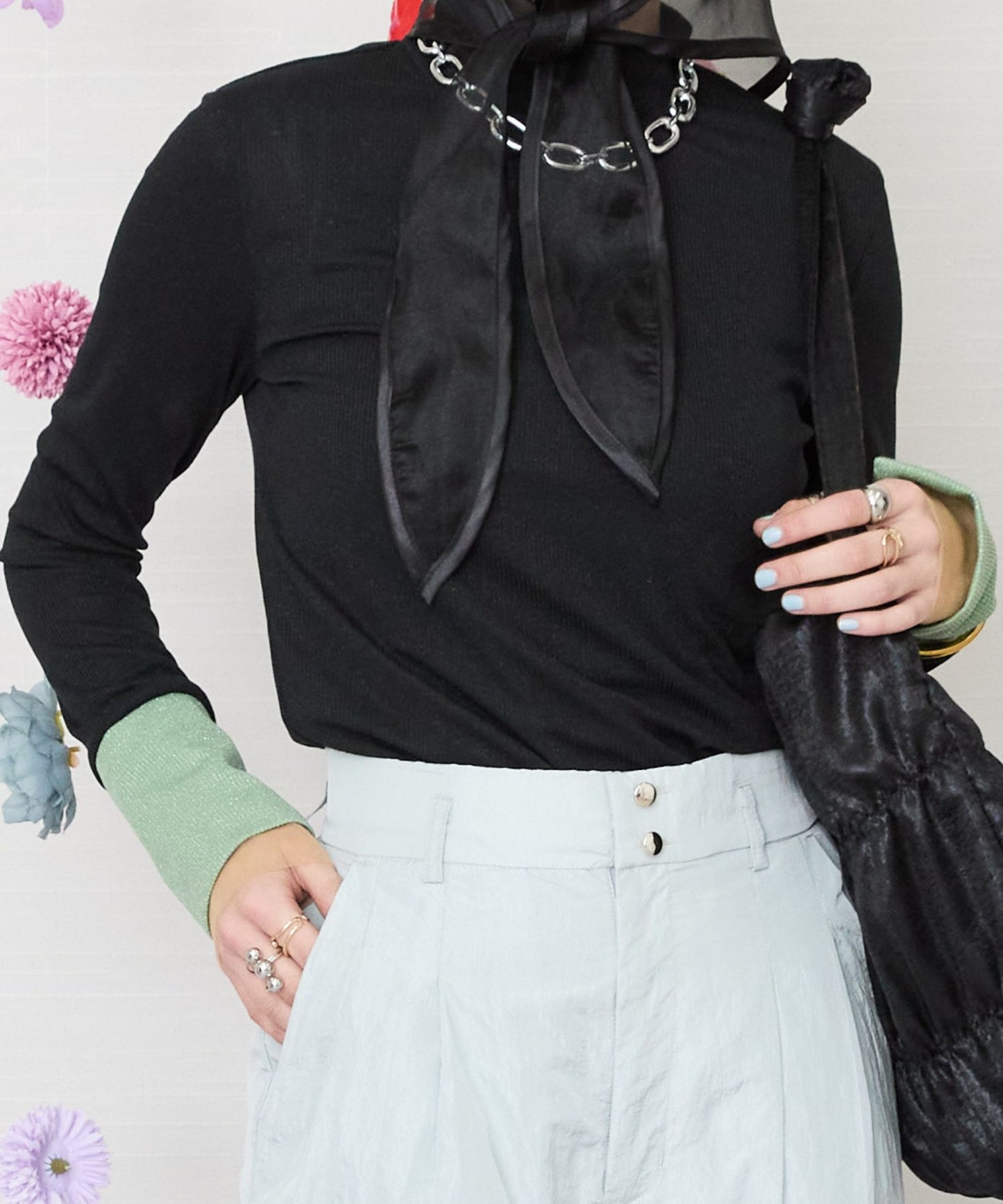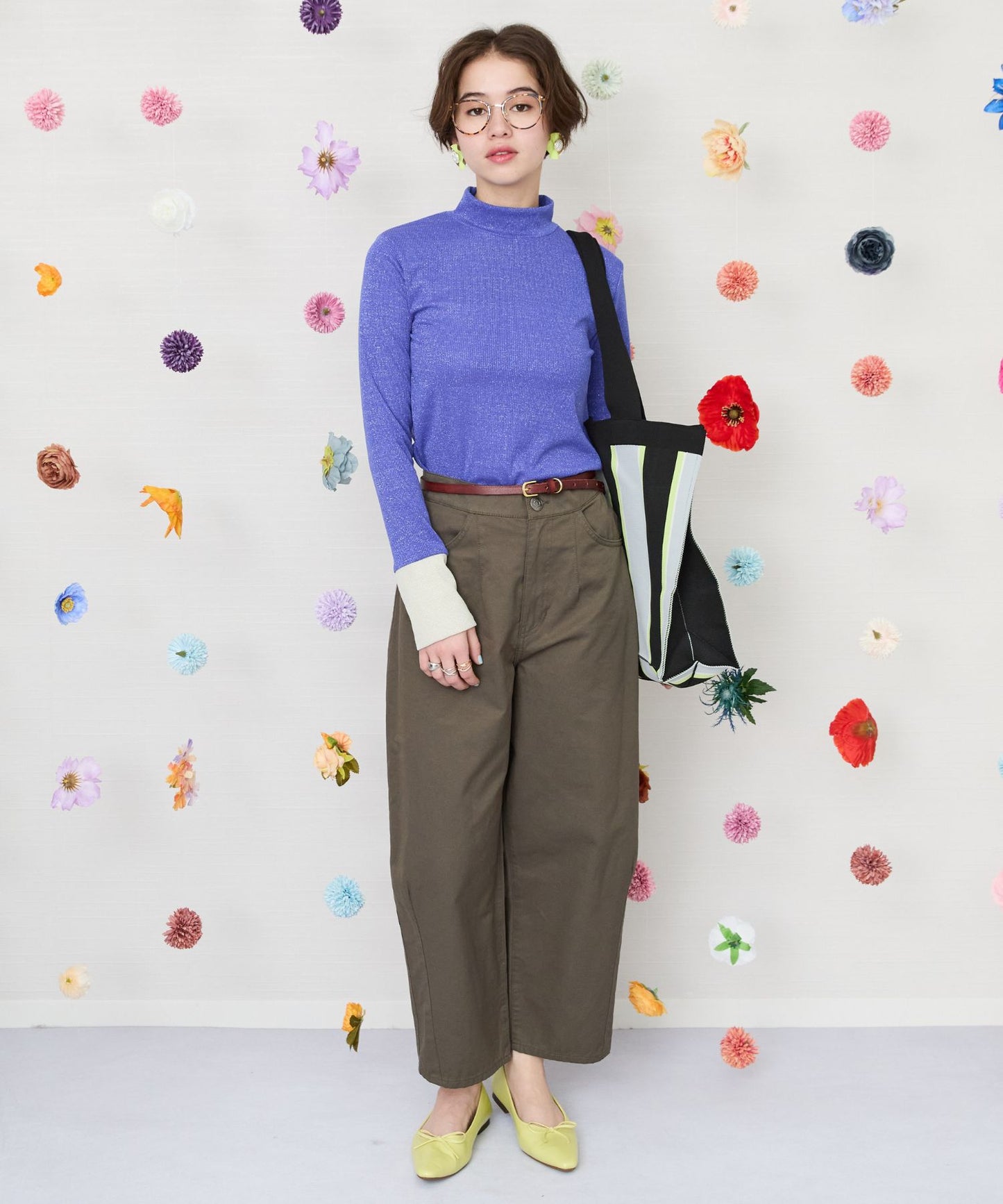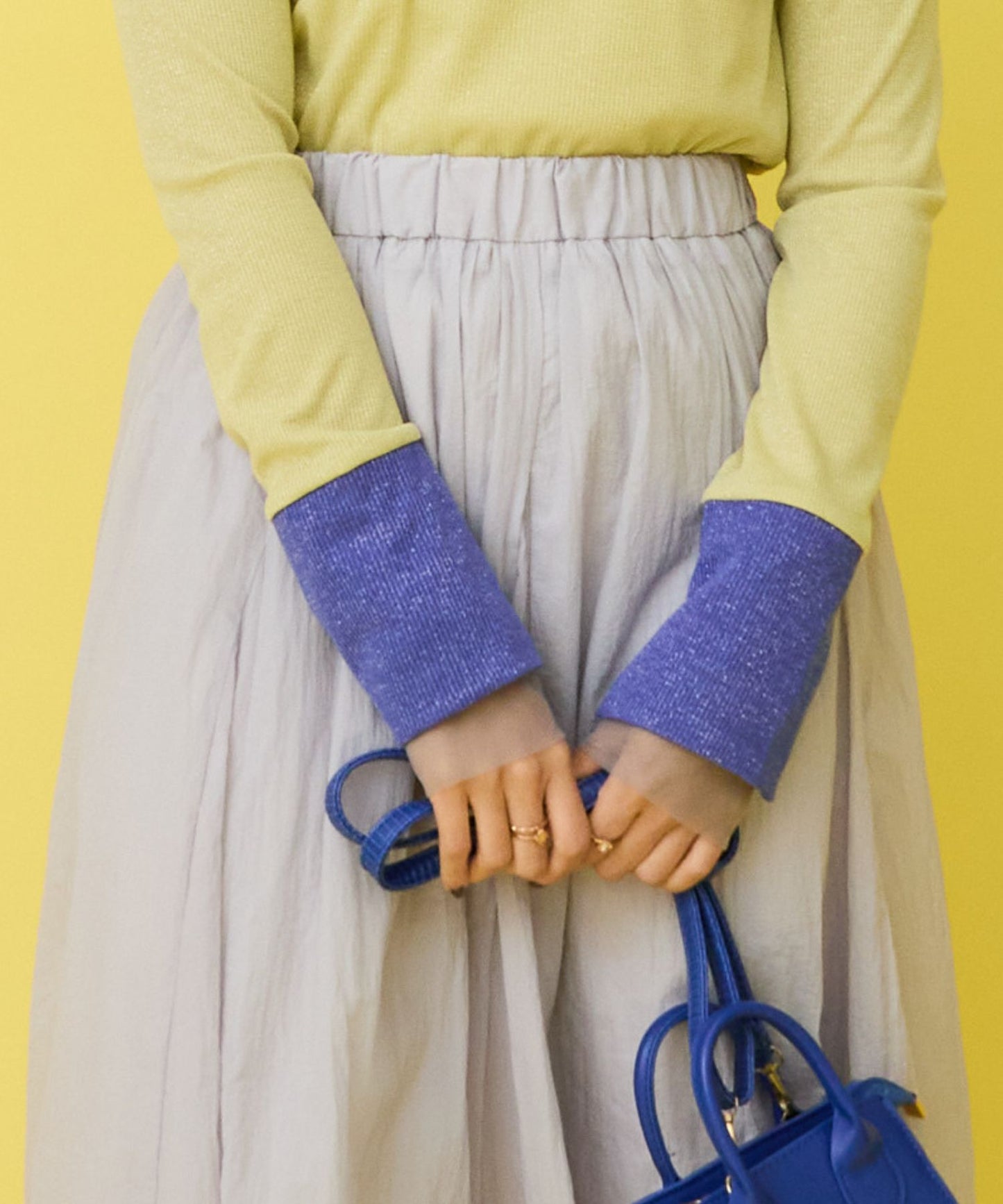 春にぴったりのブライトカラーに、キラキラと輝くラメが目を引くハイネックカットソー。
