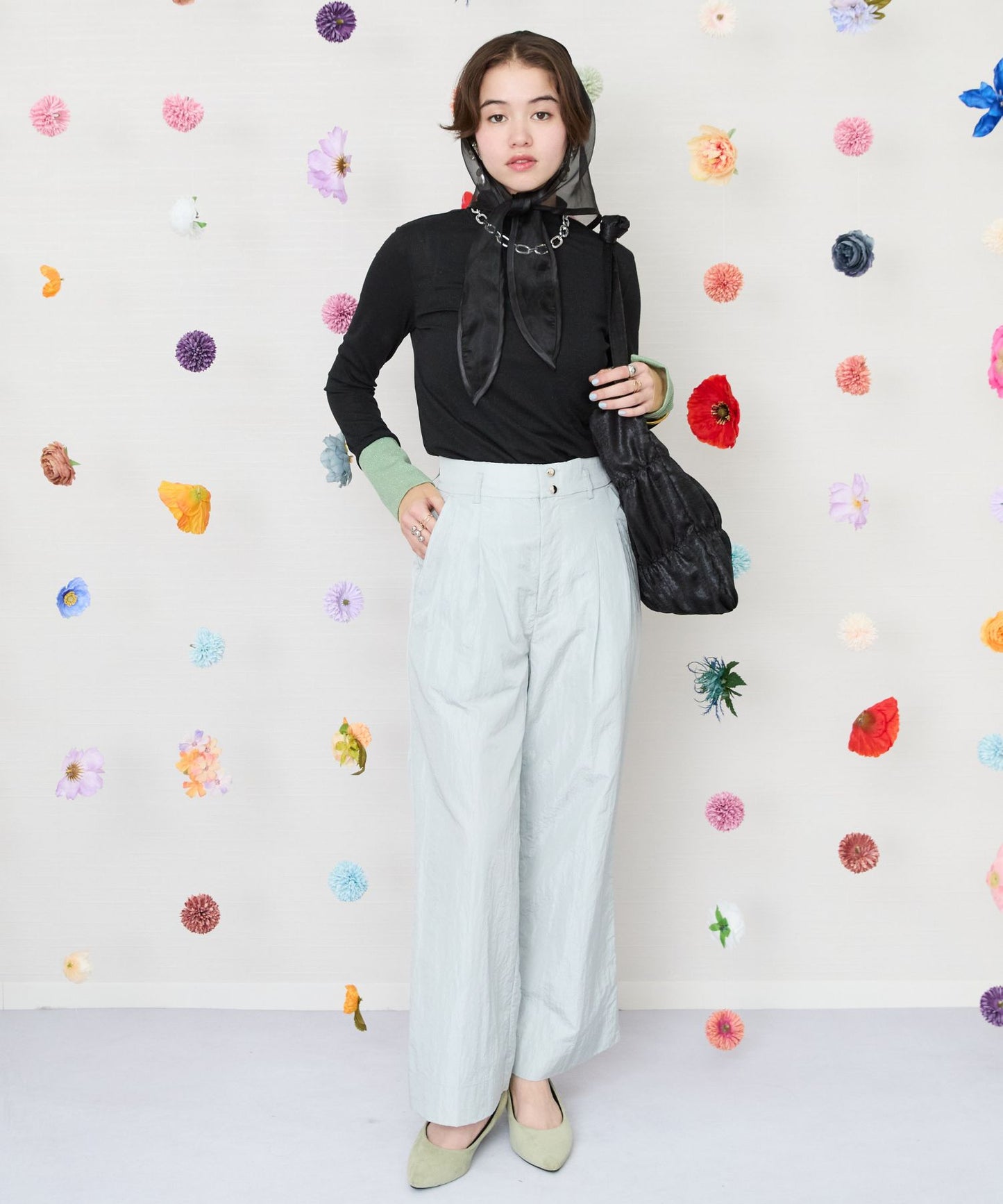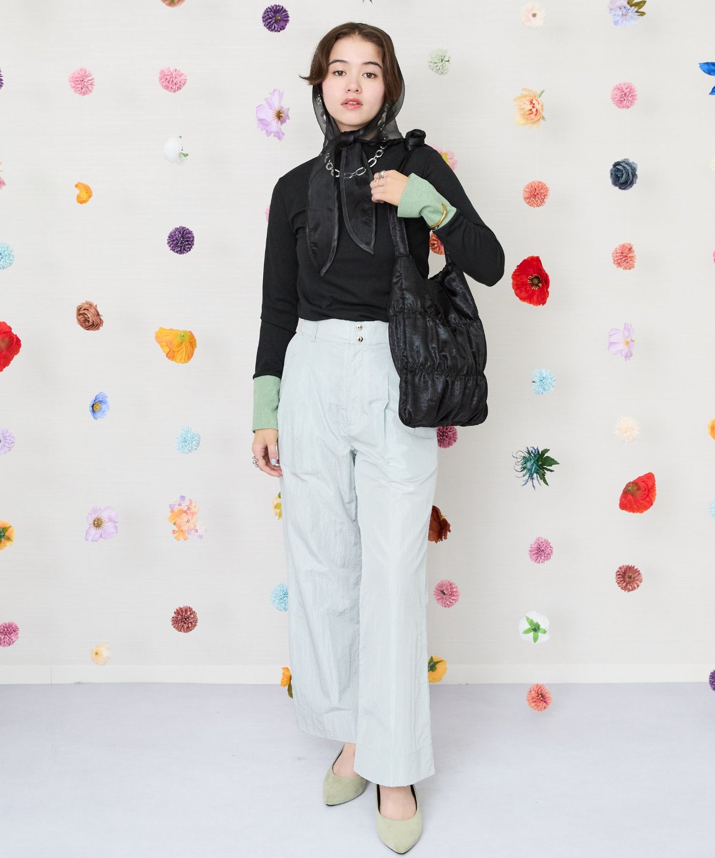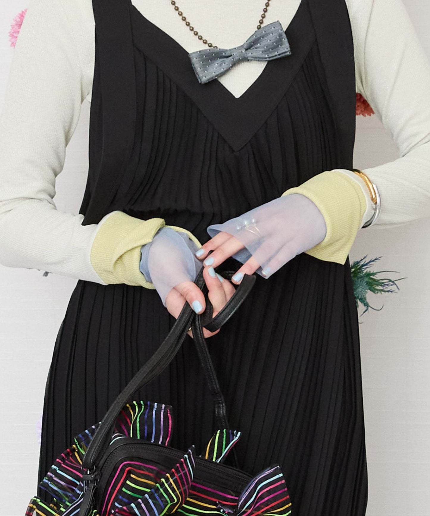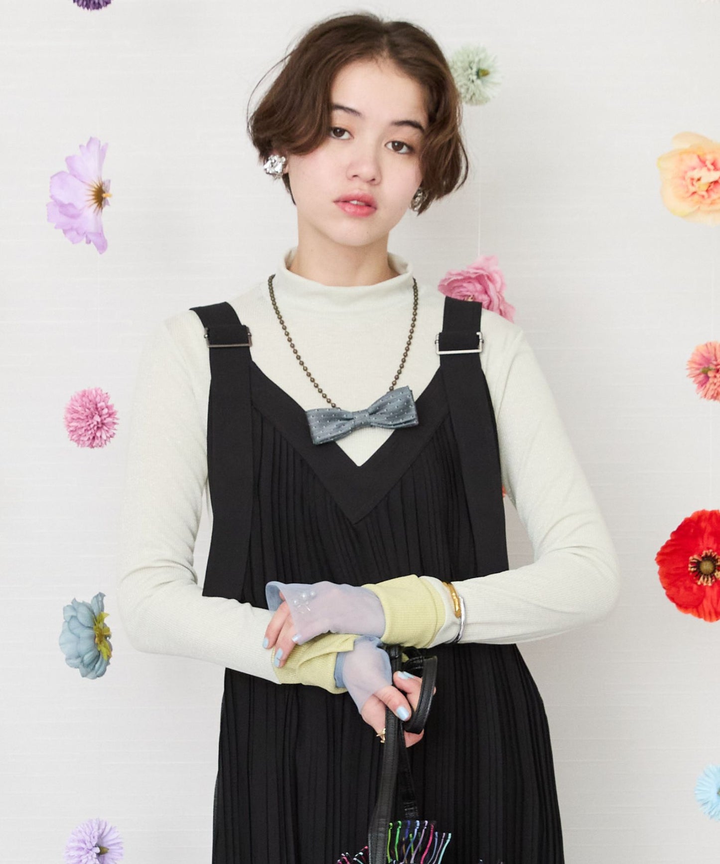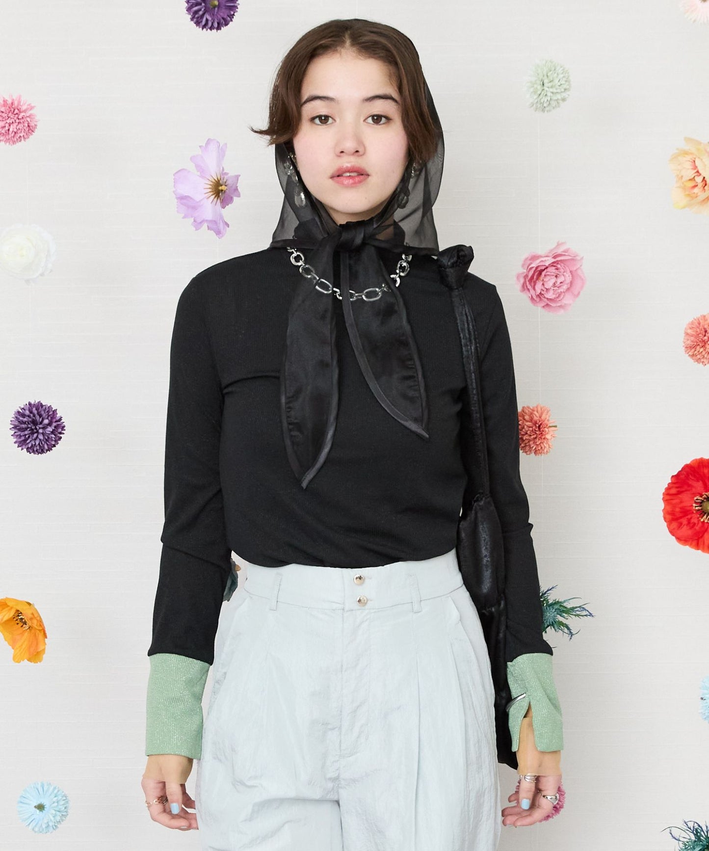 袖口には配色切替とチュールを重ねたレイヤードスリーブが、洗練されたデザインポイントに。