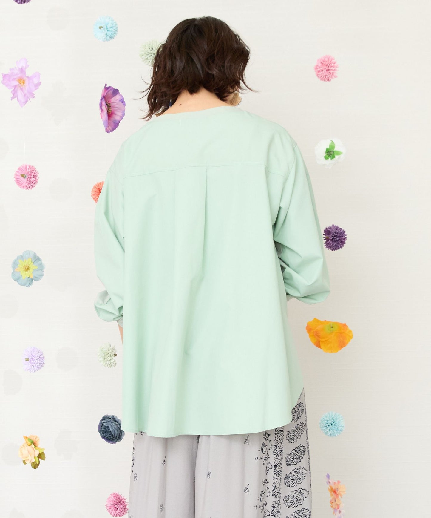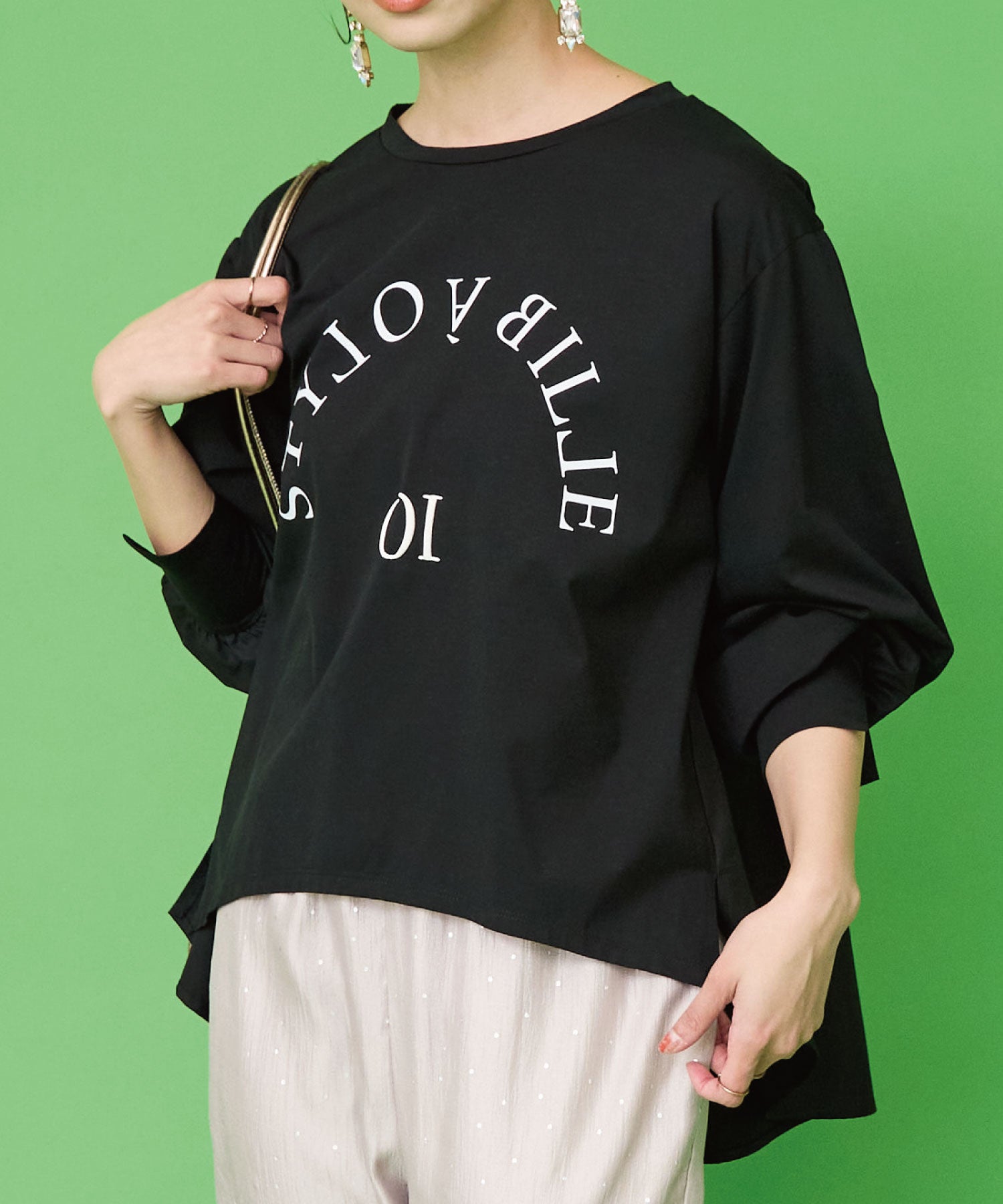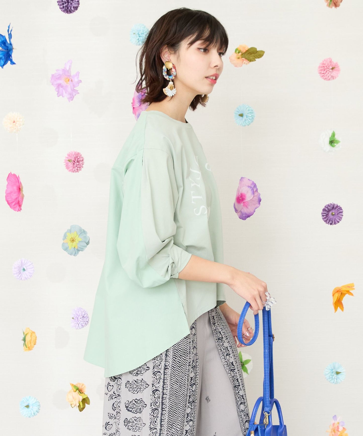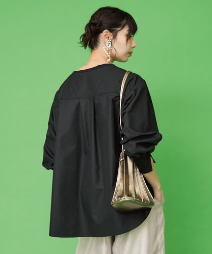 異素材切り替えの布帛部分が、ブラウスのようなエレガントな雰囲気をプラスします。