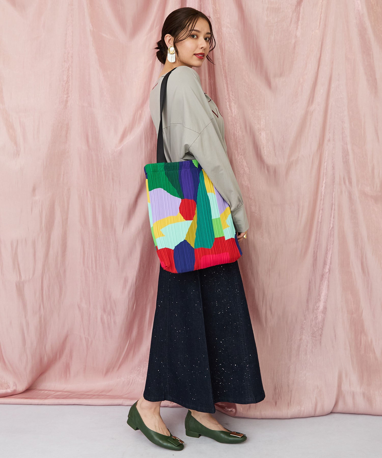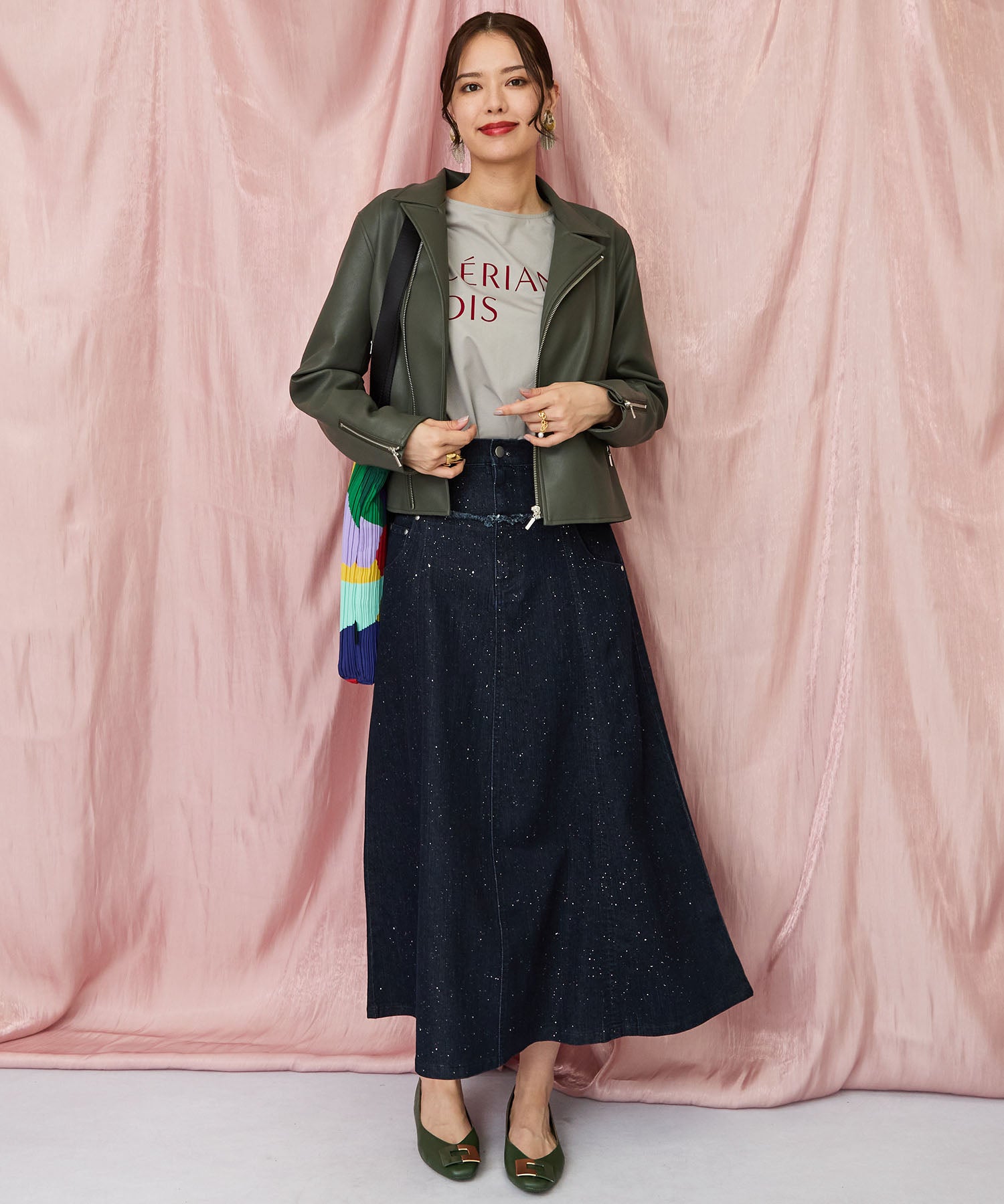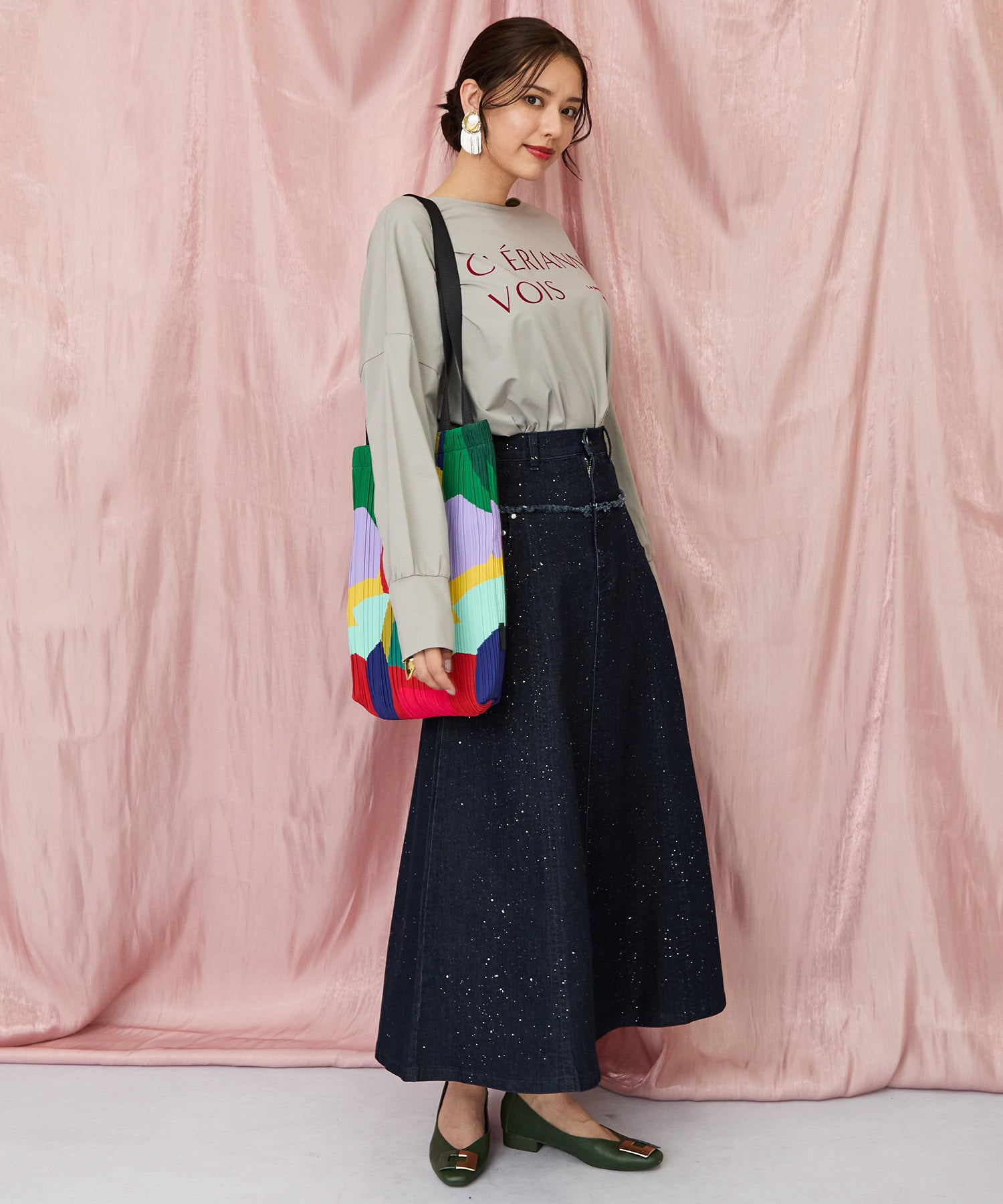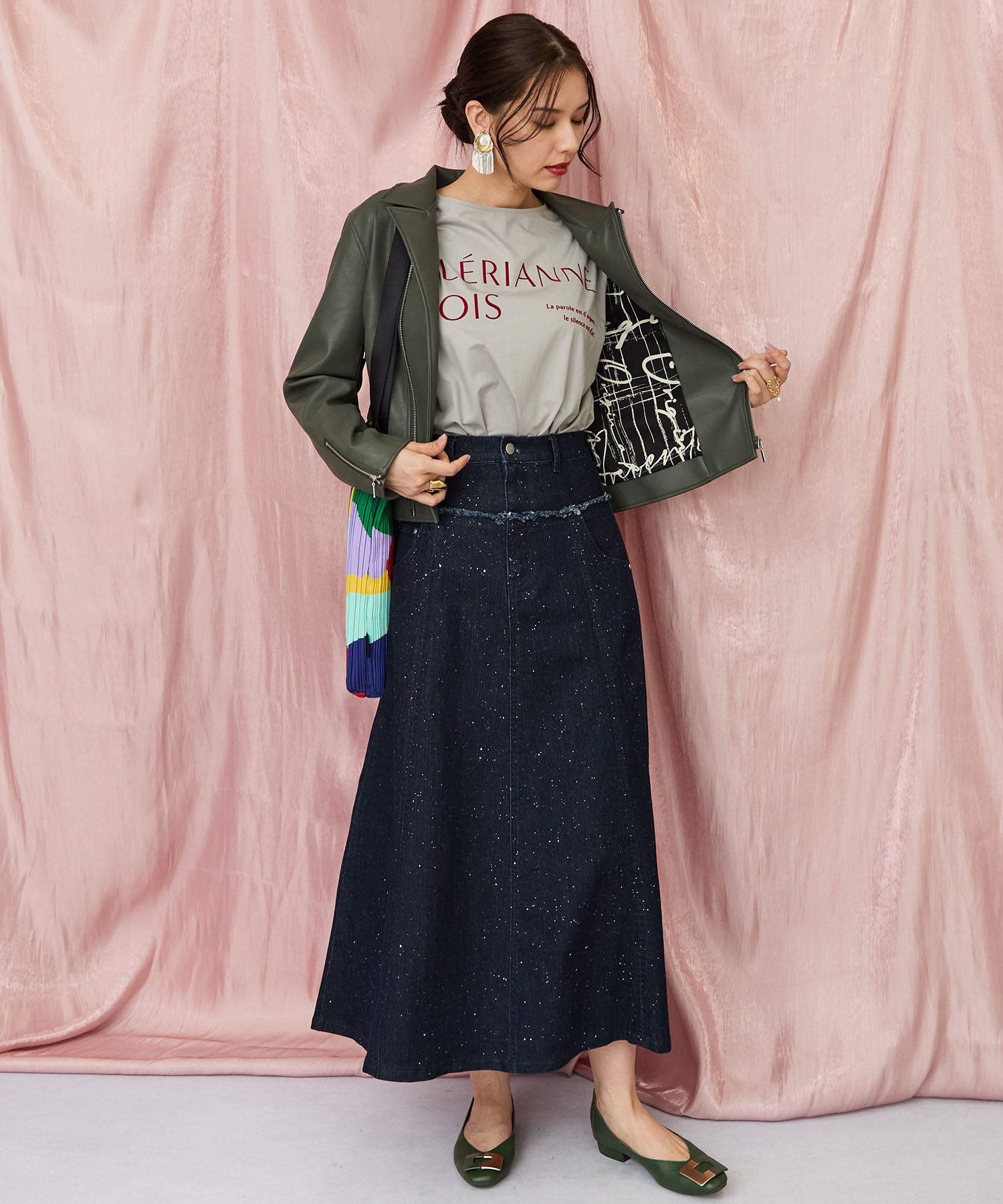 ロングスカートやプリーツスカートを合わせて、フェミニンな雰囲気も楽しめます。