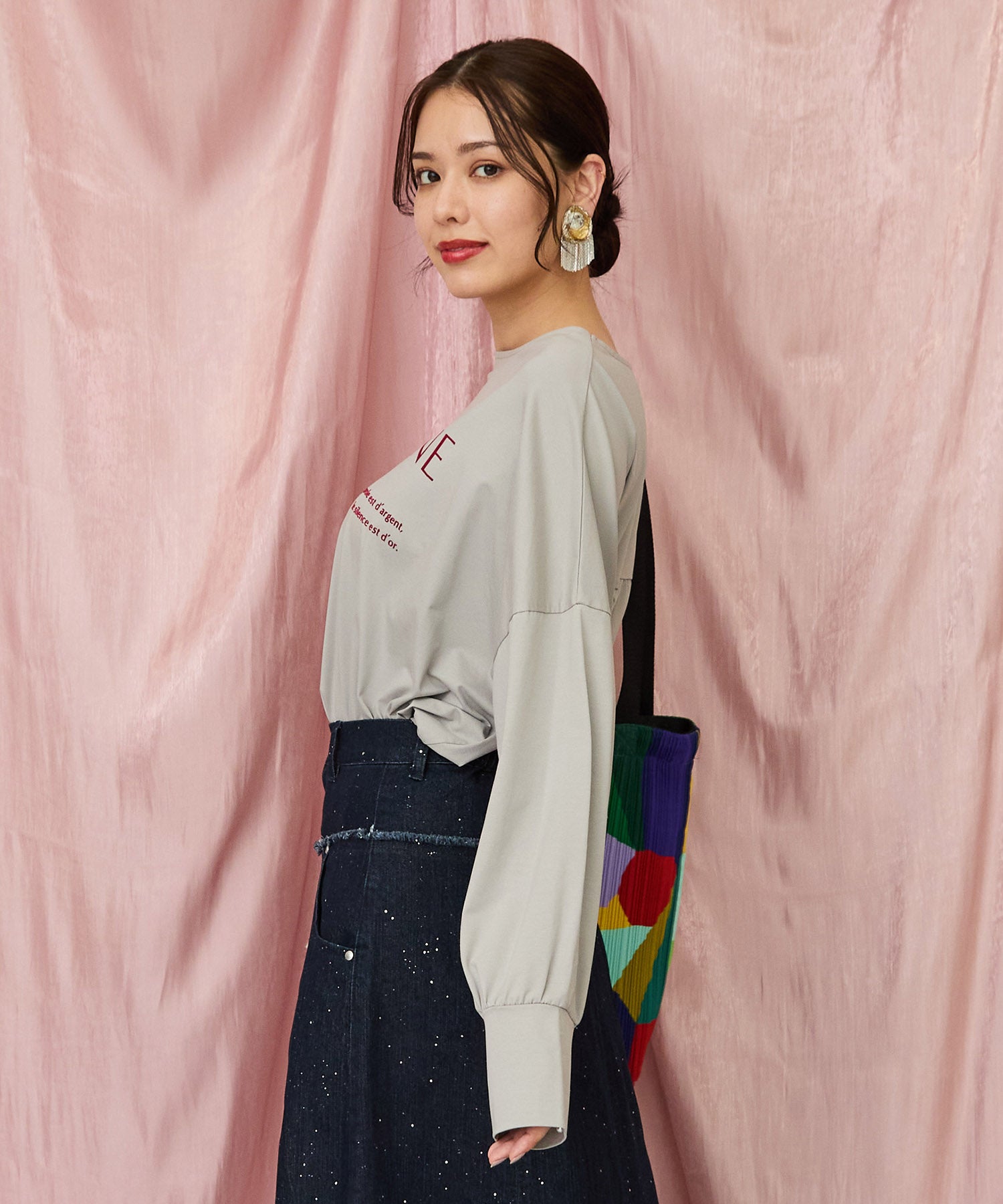 #ロゴトップス #ボリュームスリーブ #大人カジュアル #ワンマイルウェア #前後差トップス #30代コーデ #40代ファッション #JETSET