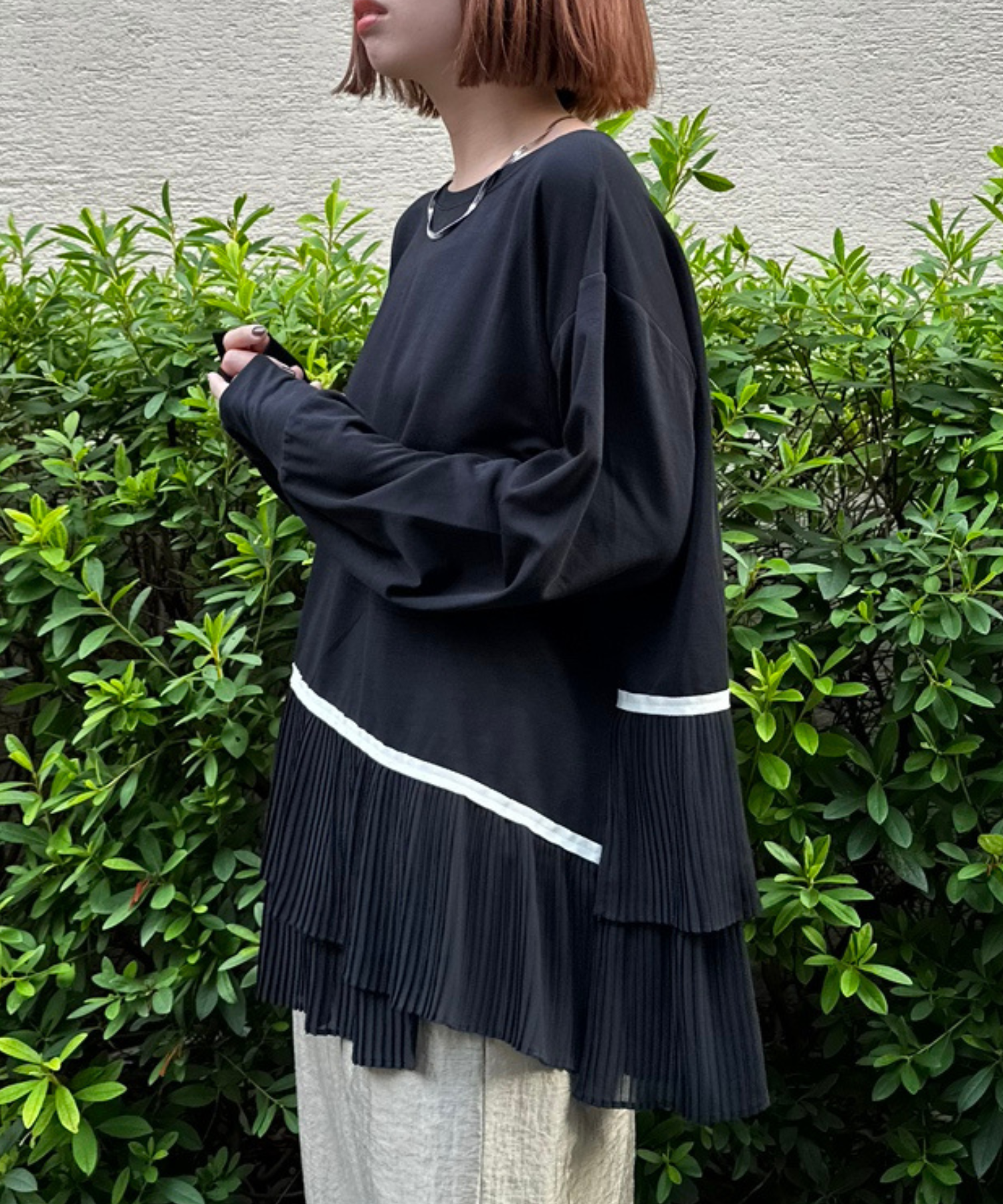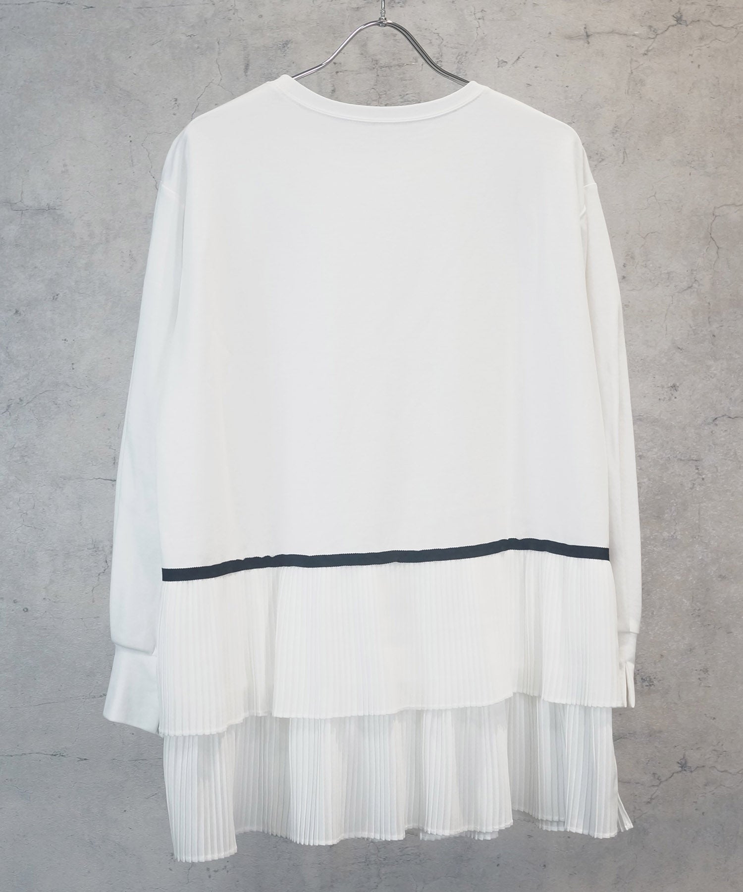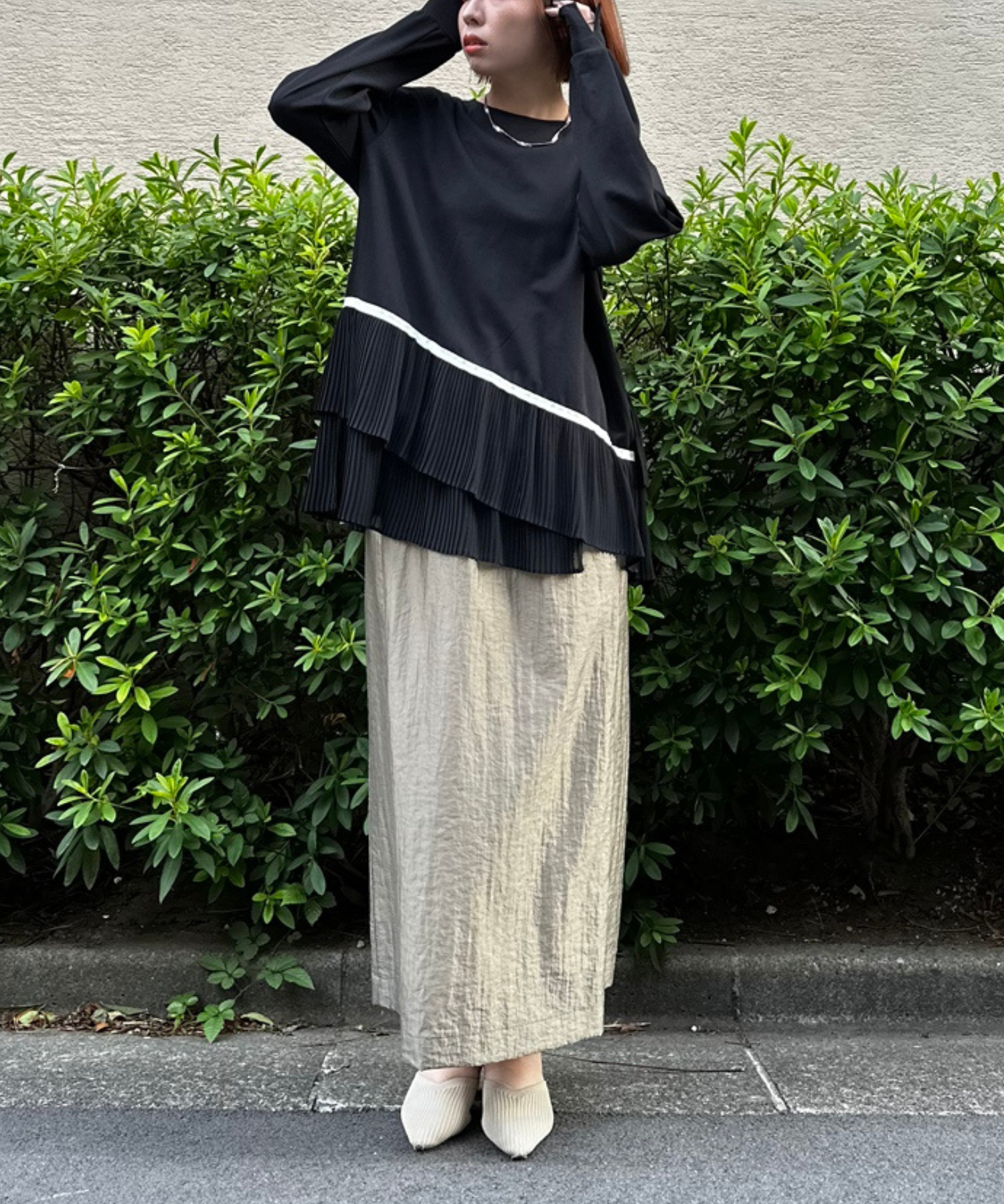 やわらかいカットソー素材に、プリーツの布帛生地をドッキングし、軽やかな揺れ感をプラス。