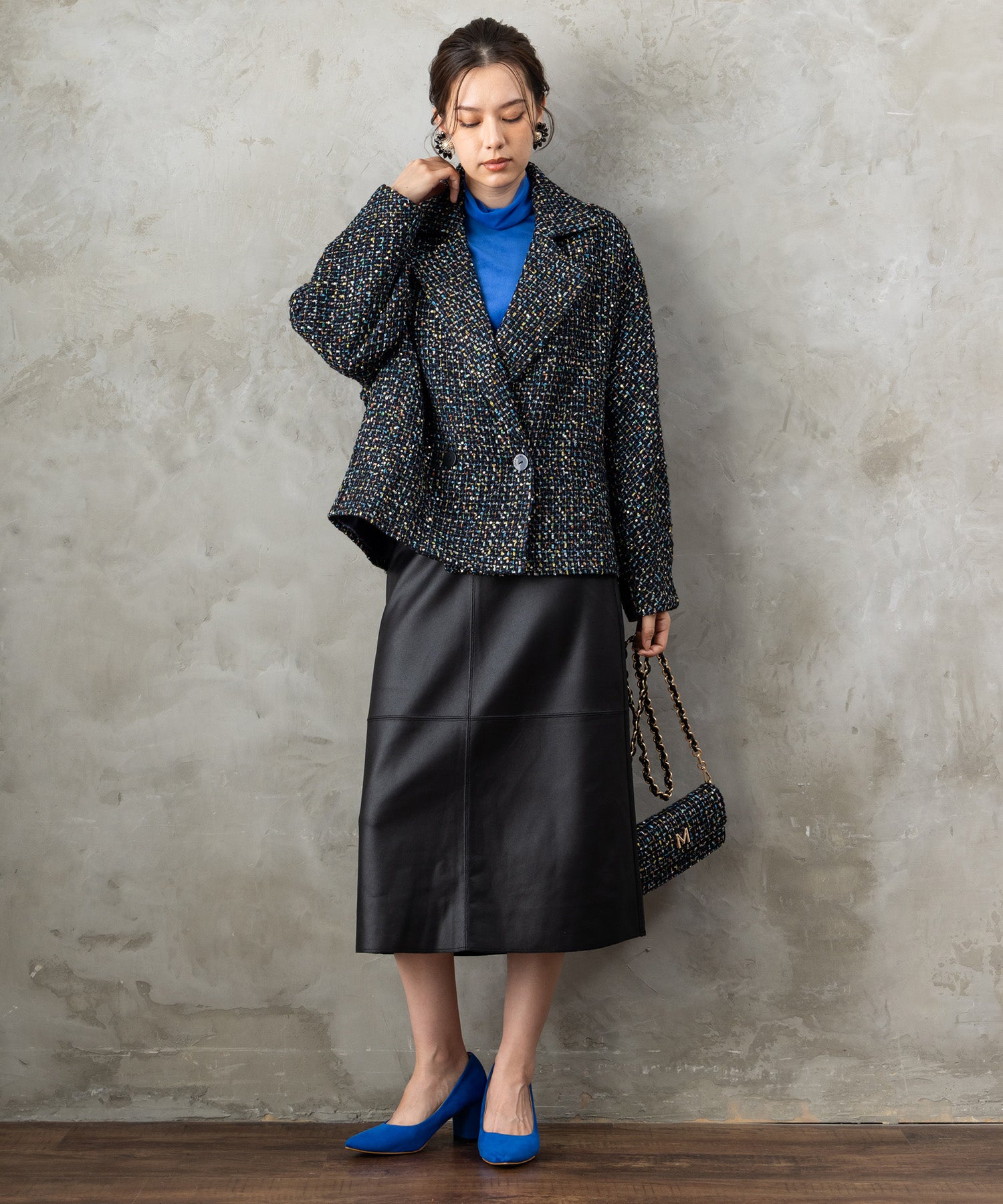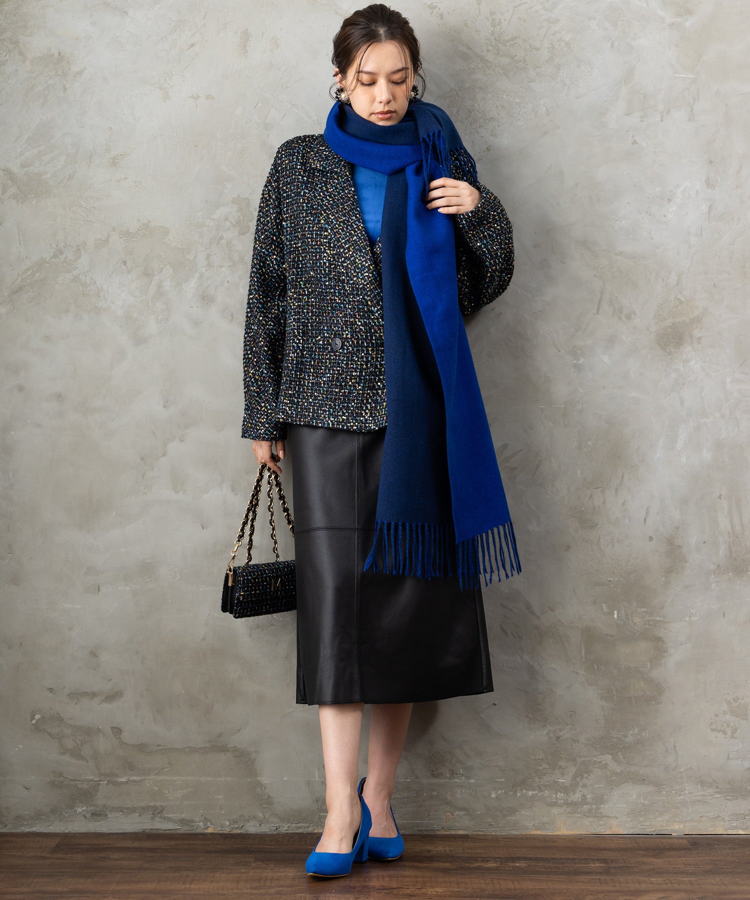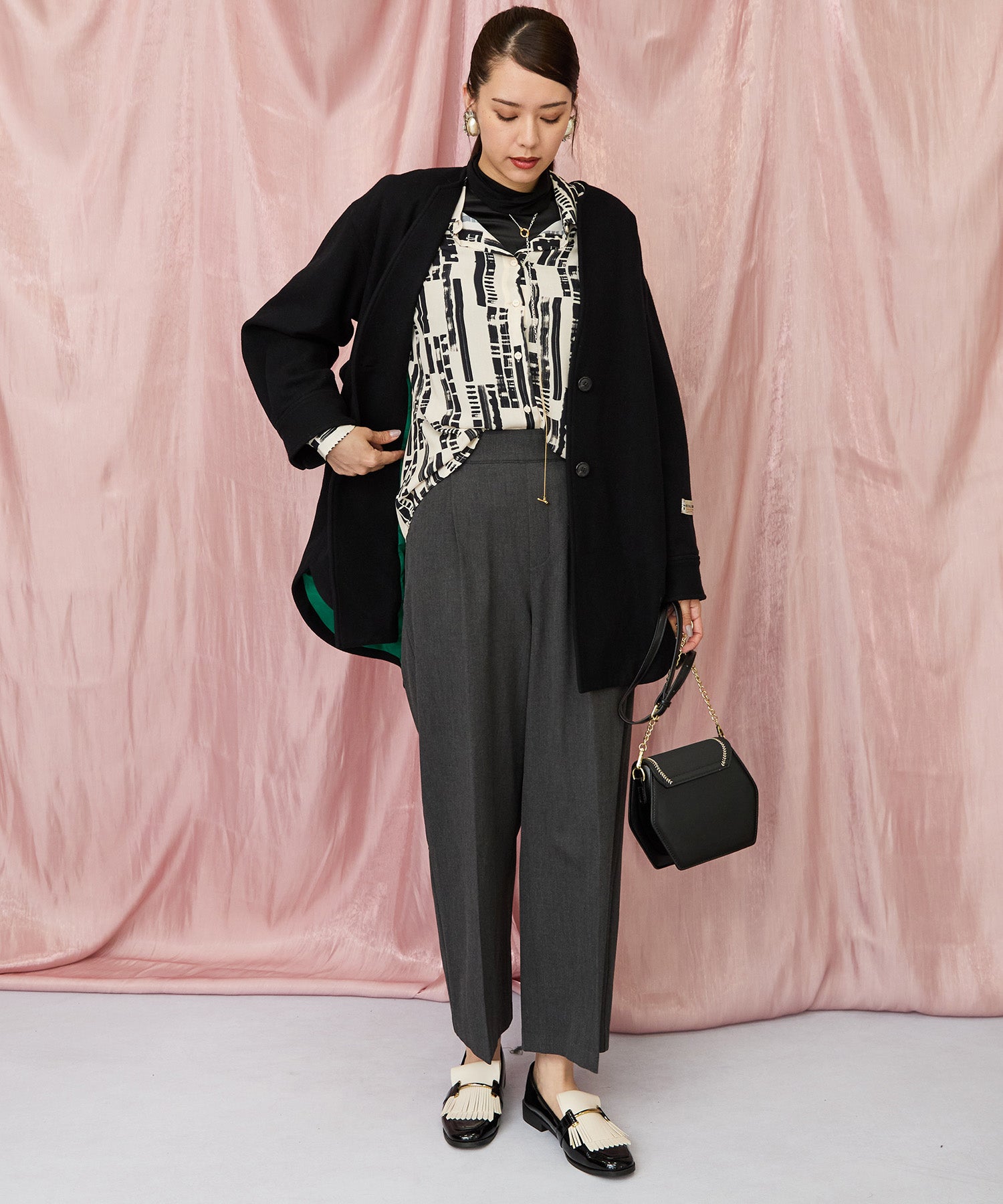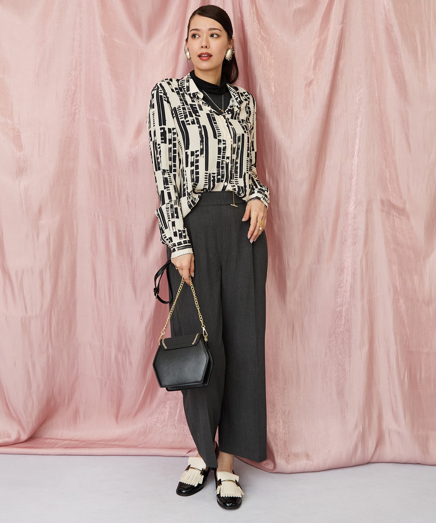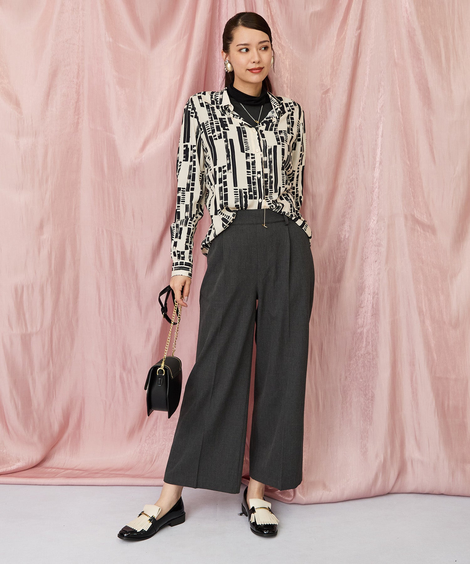 クラシカルなチェック柄スカートと合わせて品よく仕上げたり、ワイドパンツやデニムと合わせて抜け感のあるカジュアルスタイルにも。ジャケットやコートのインナーとしても華やかに映えます。