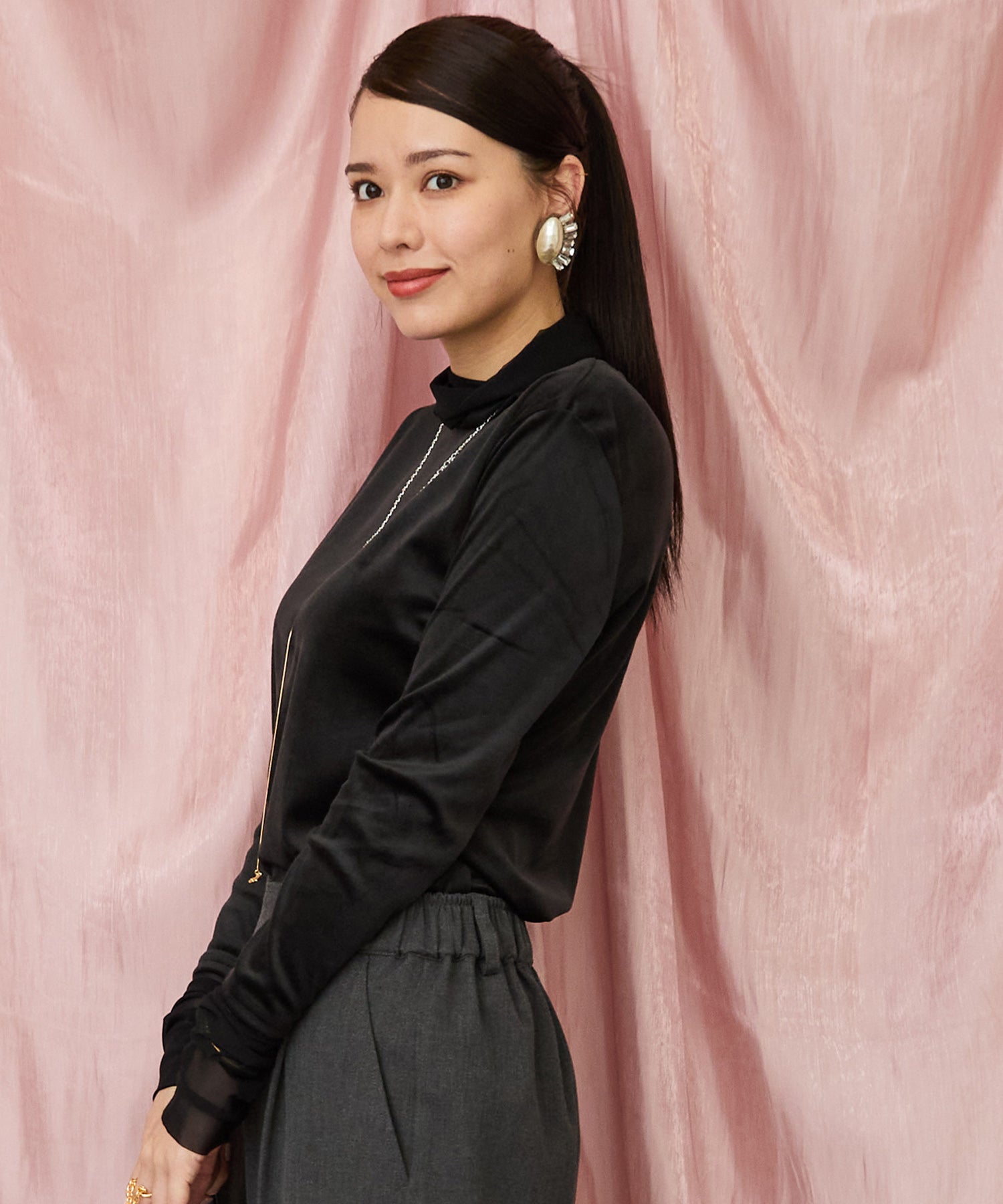 【ベロア×チュールで魅せる、大人フェミニンなタートル】