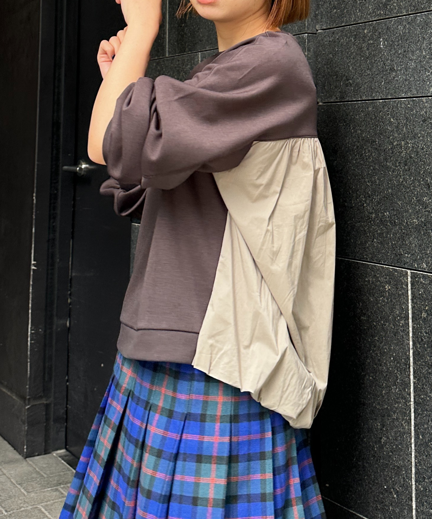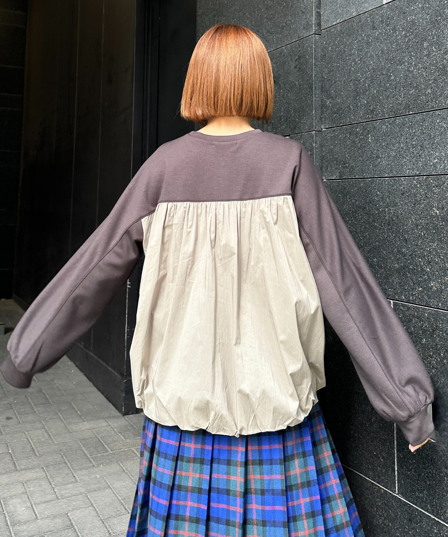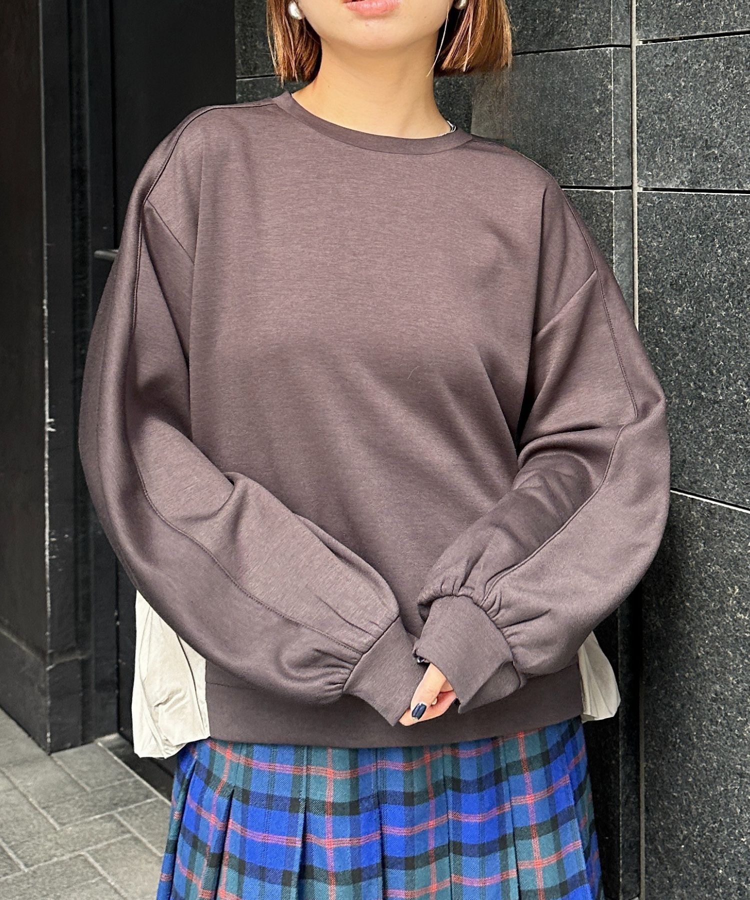 #カットソー #ドッキングトップス #バルーンシルエット #バックデザイン #大人カジュアル #秋冬トップス #JETSETSOLOPLUS