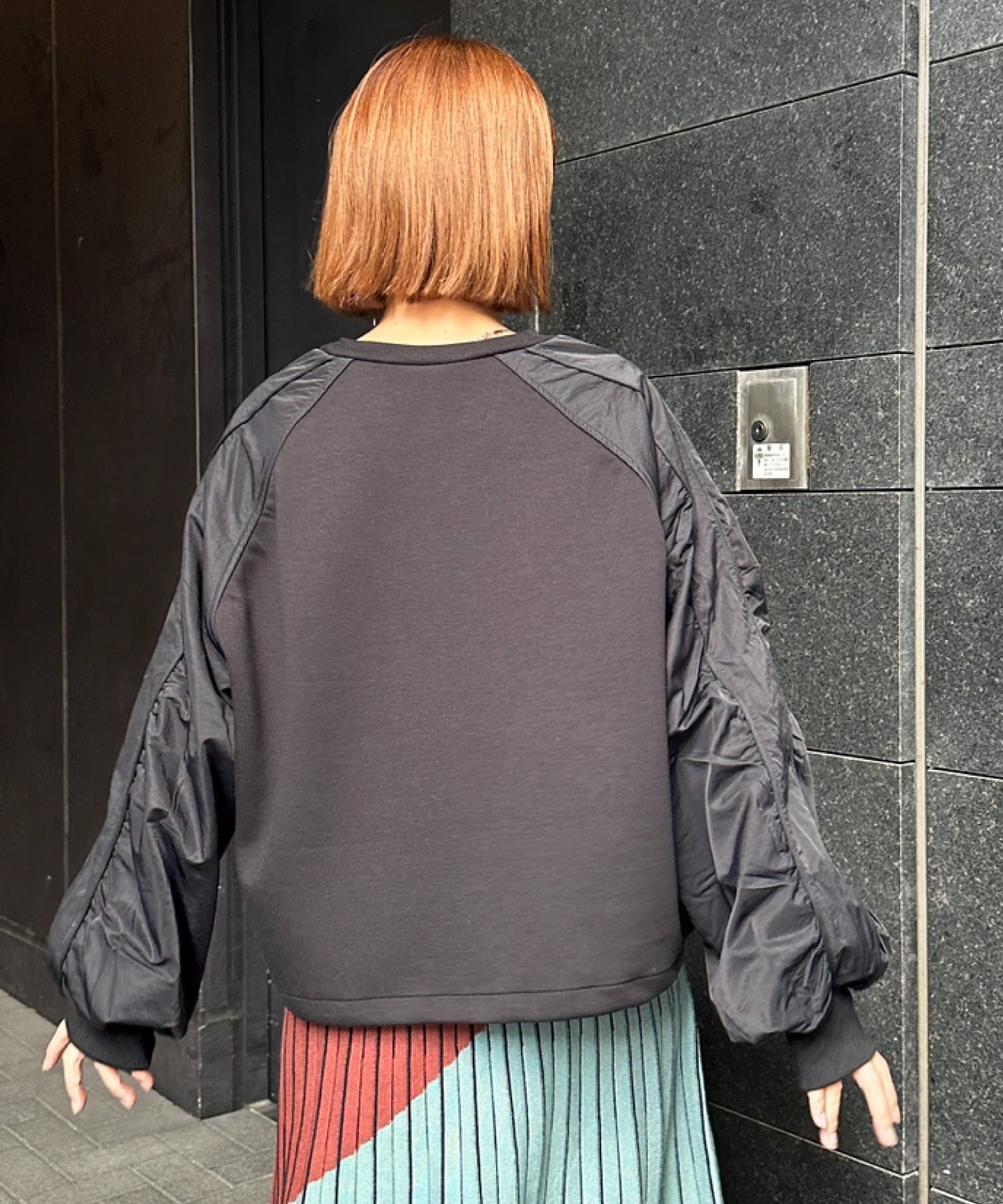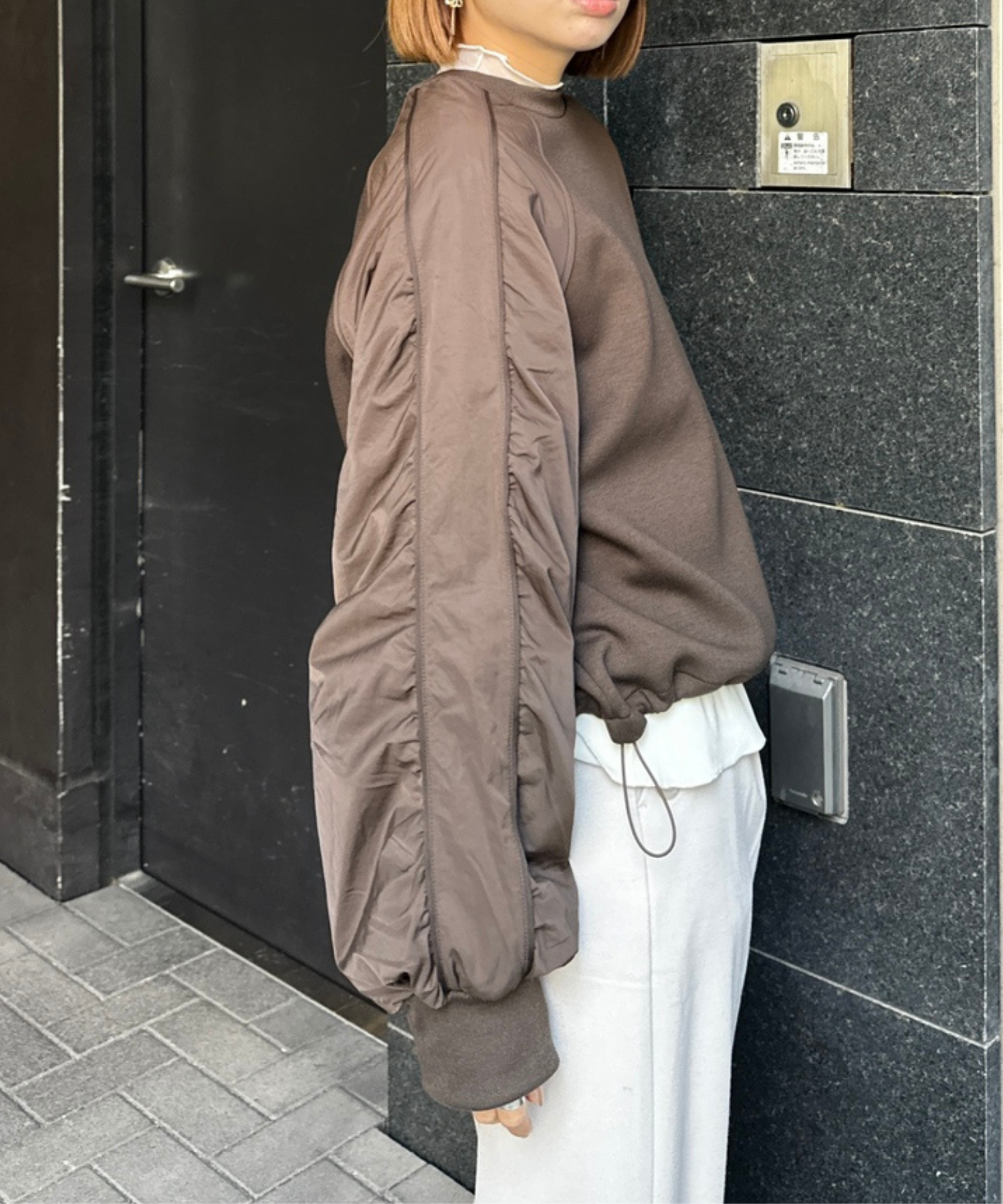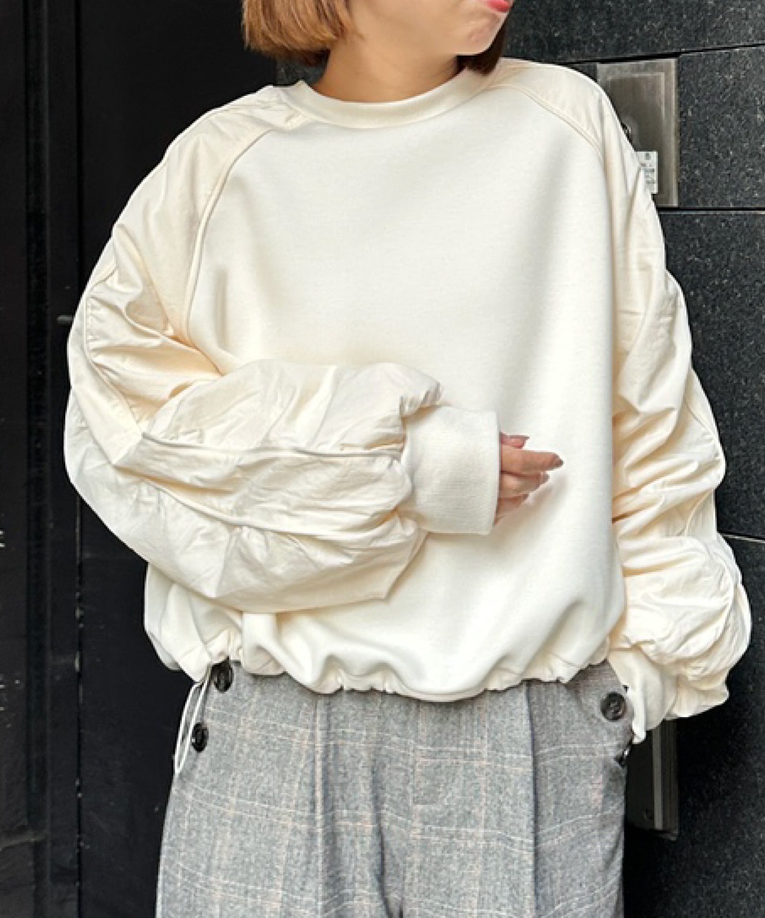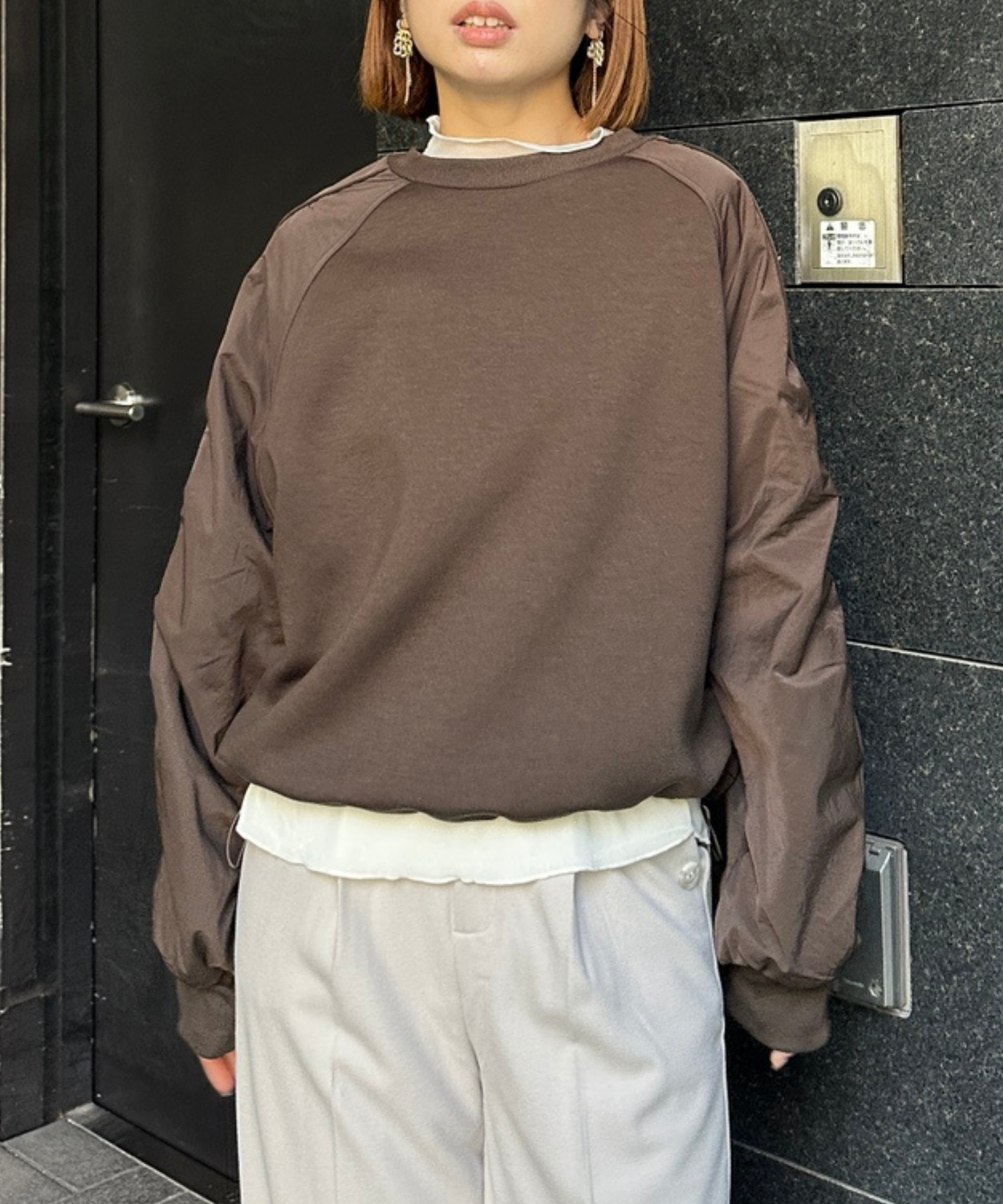#異素材スウェット #ナイロン切替 #モードカジュアル #大人カジュアル #秋冬スタイル #JETSETSOLOPLUS