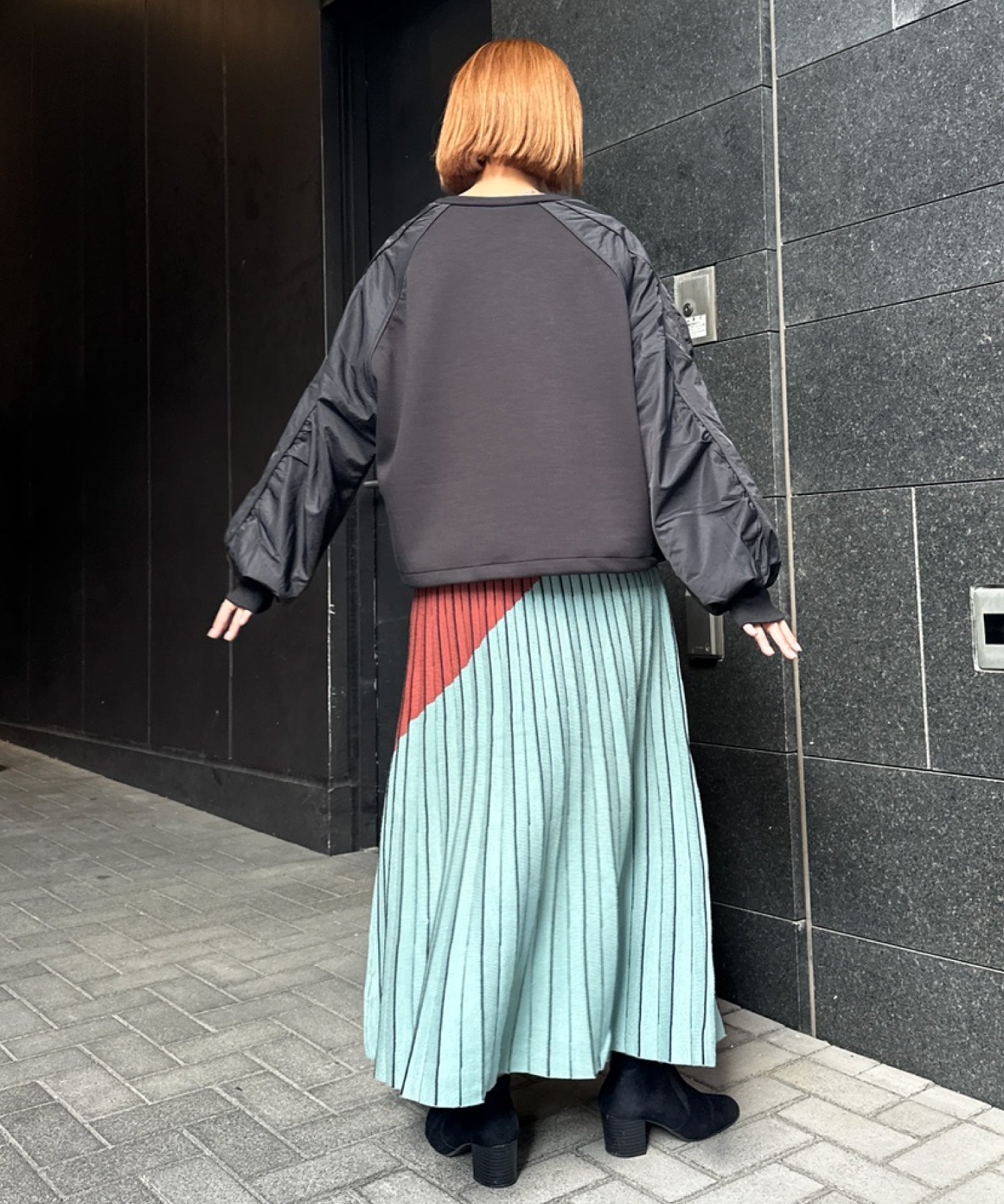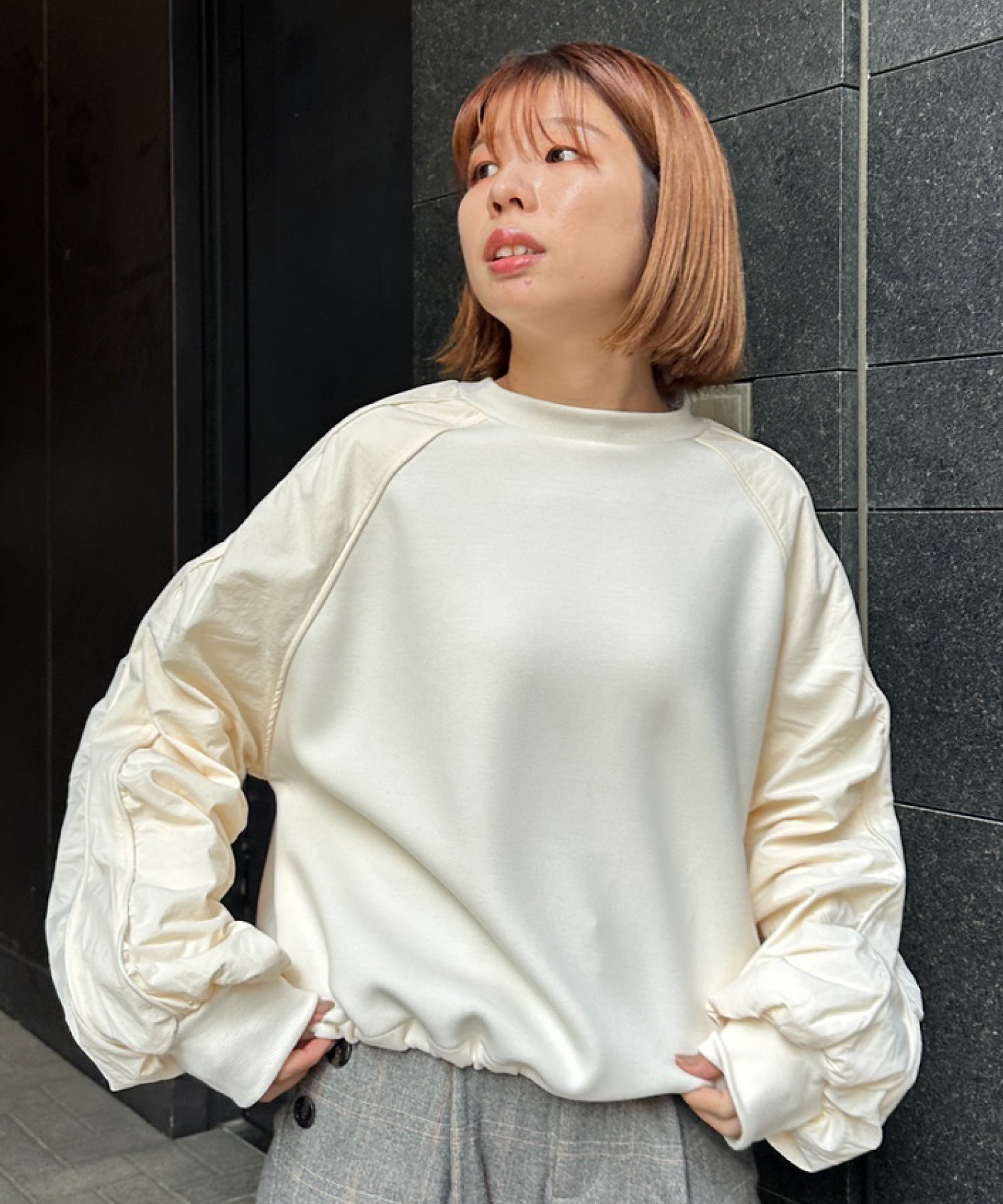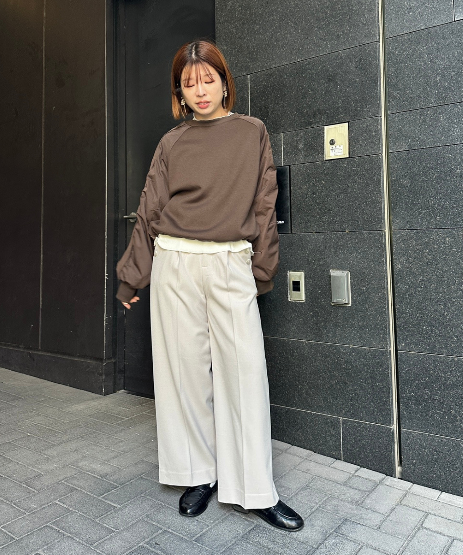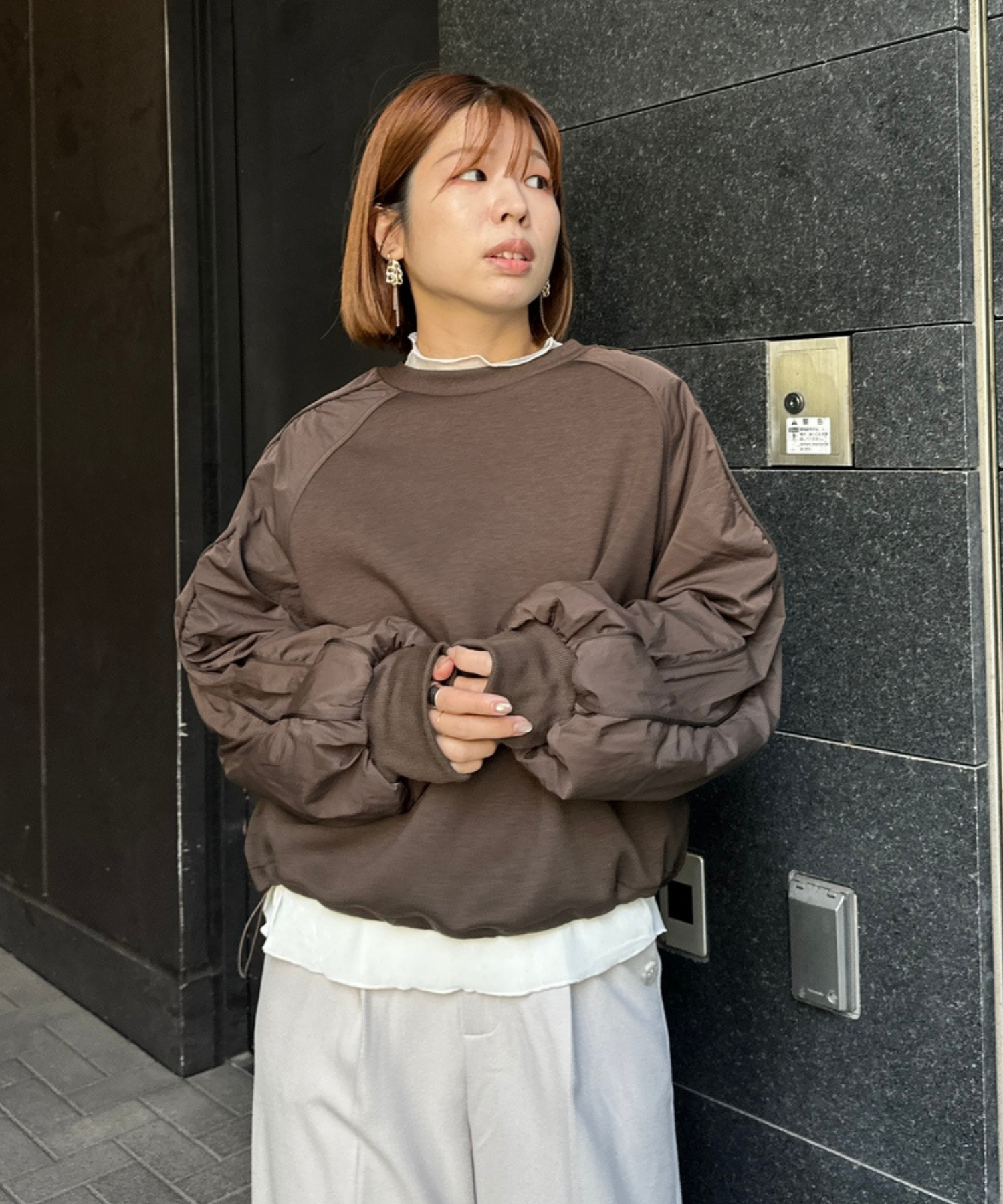 #異素材スウェット #ナイロン切替 #モードカジュアル #大人カジュアル #秋冬スタイル #JETSETSOLOPLUS