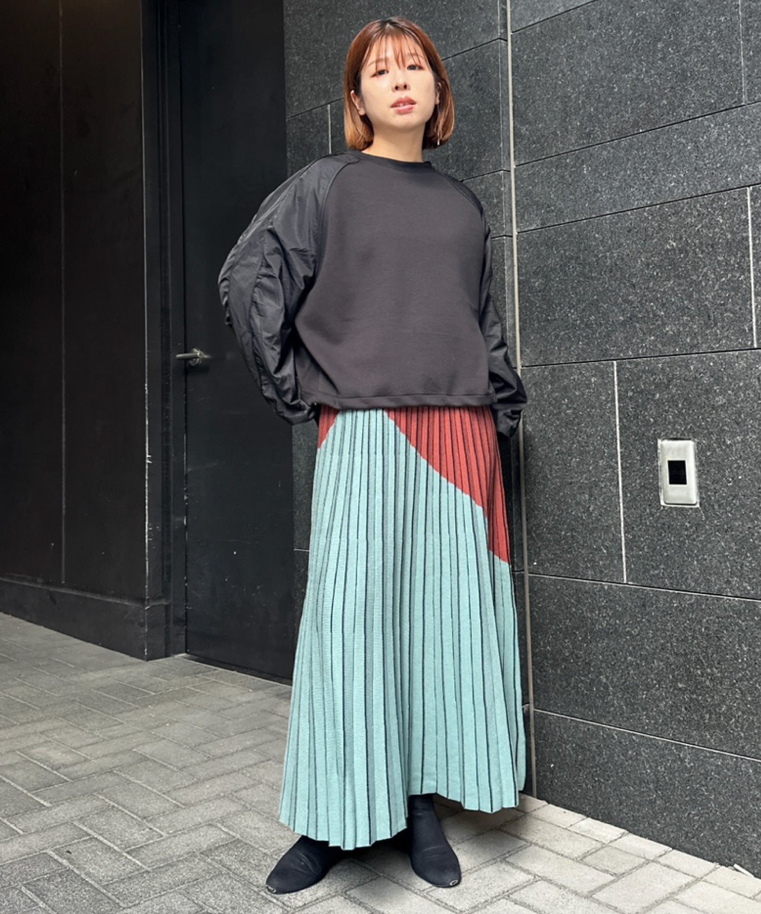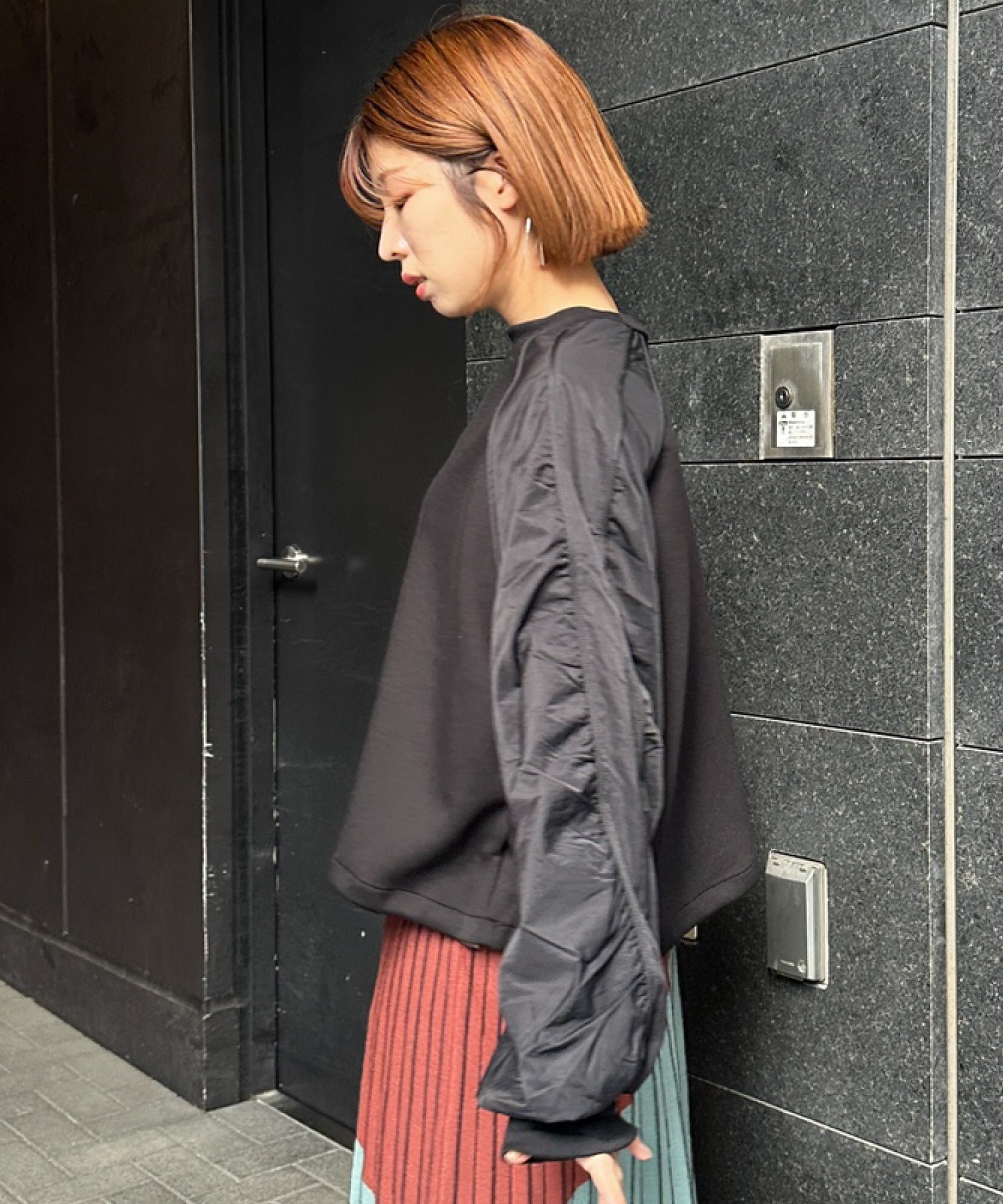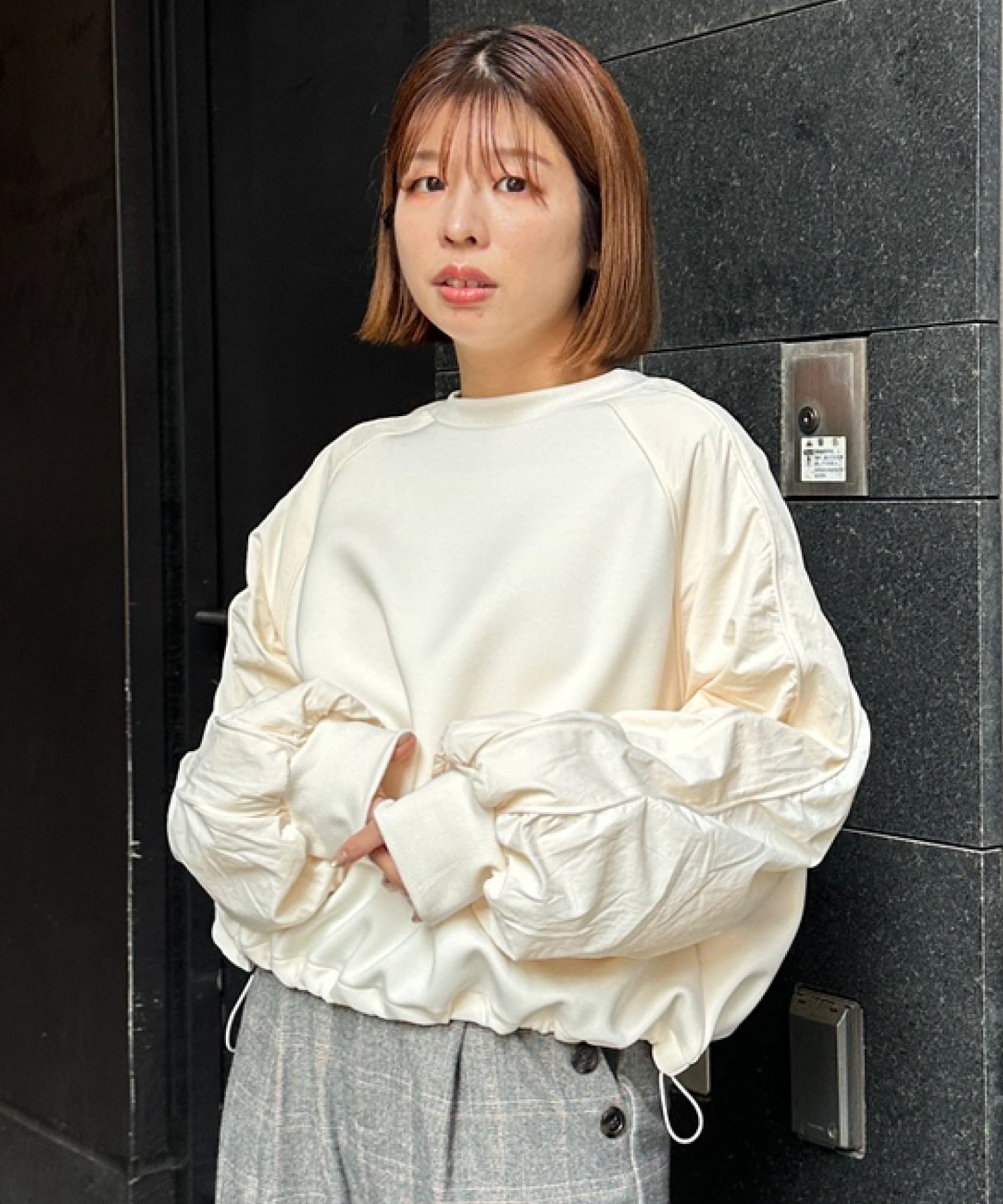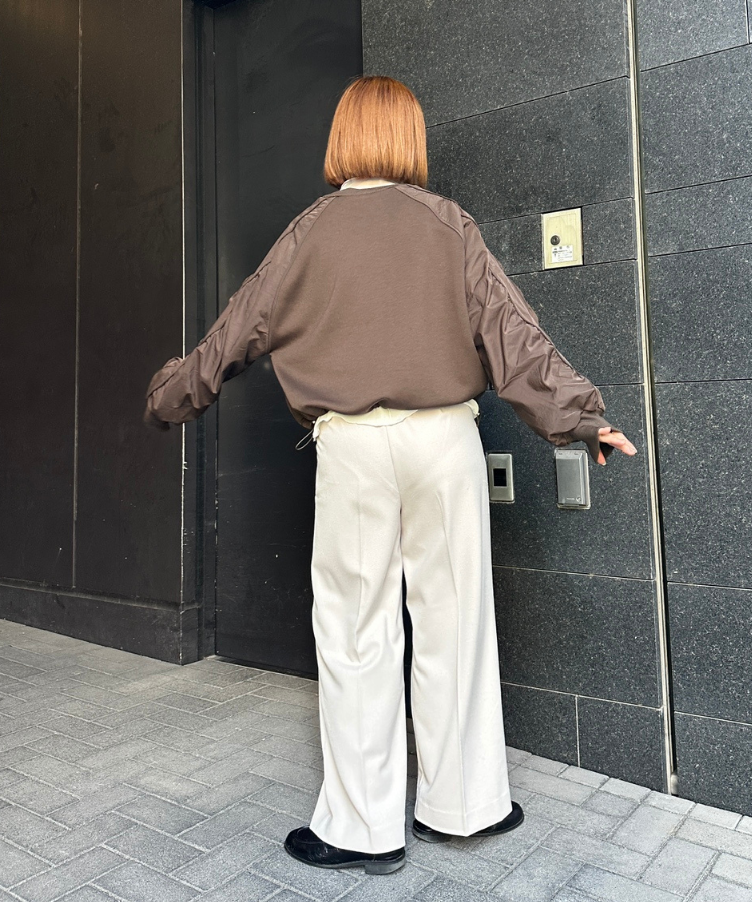 #異素材スウェット #ナイロン切替 #モードカジュアル #大人カジュアル #秋冬スタイル #JETSETSOLOPLUS