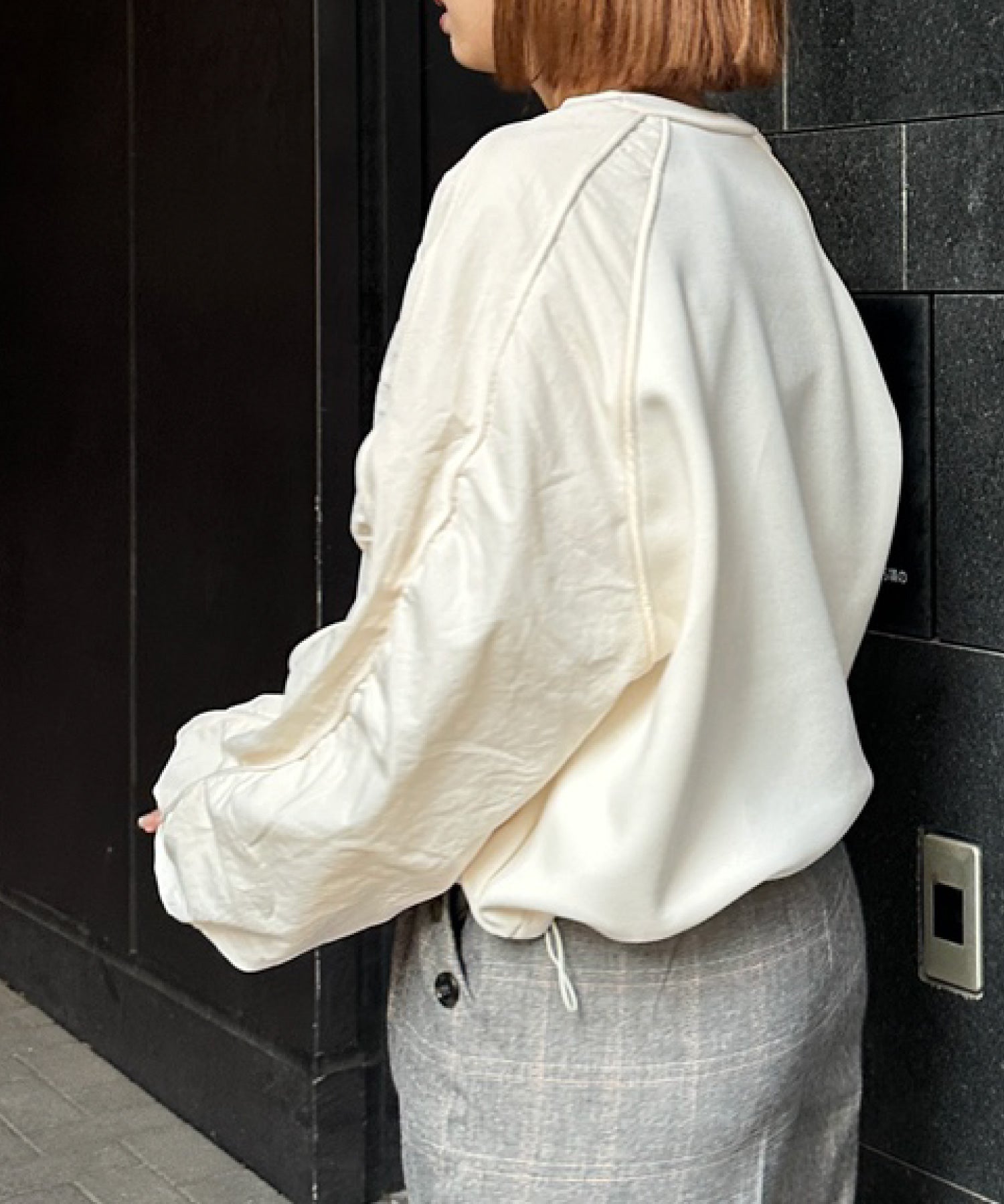 ゆったりとしたシルエットながら、裾のドロスト仕様でバランスの調整も可能。