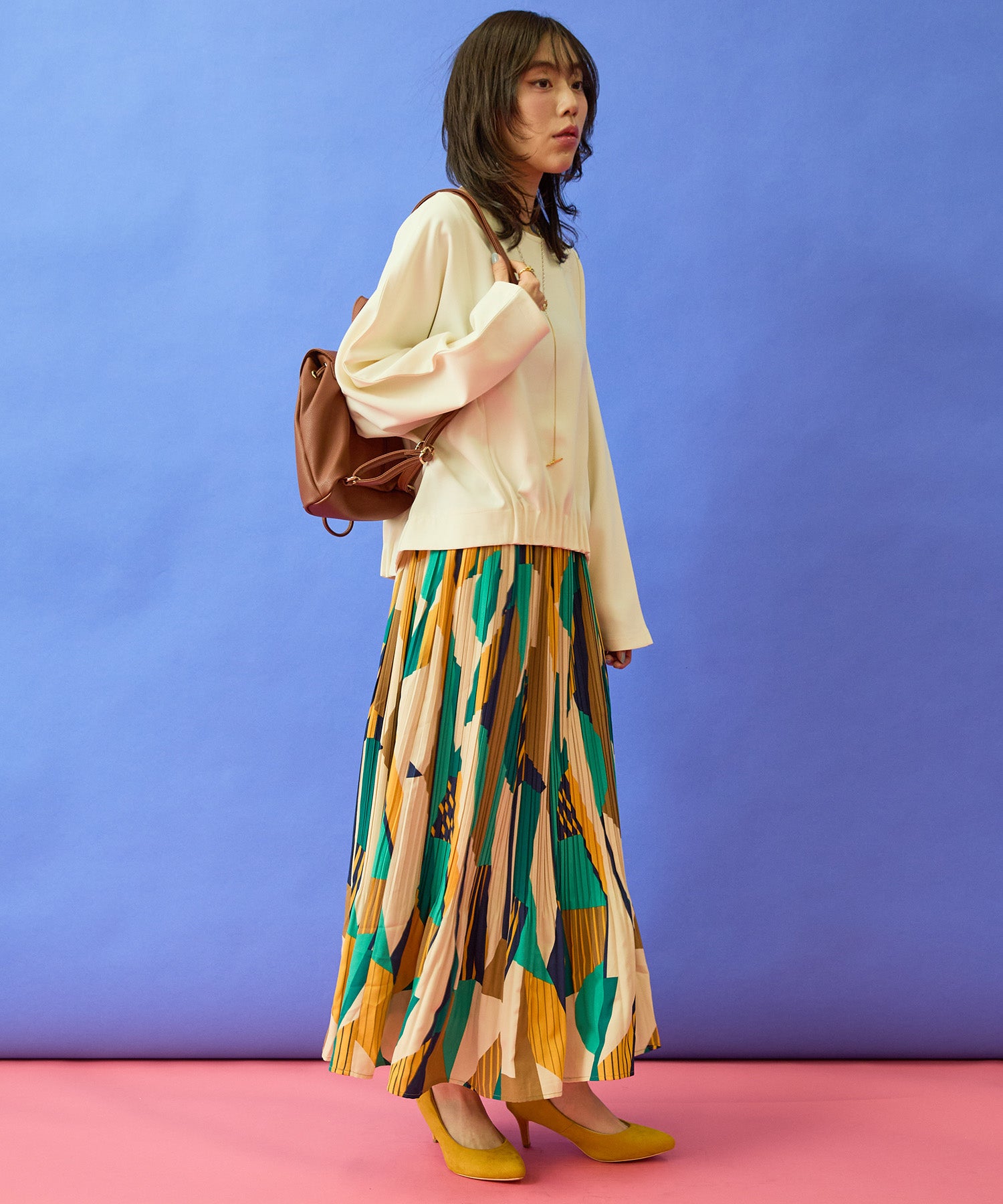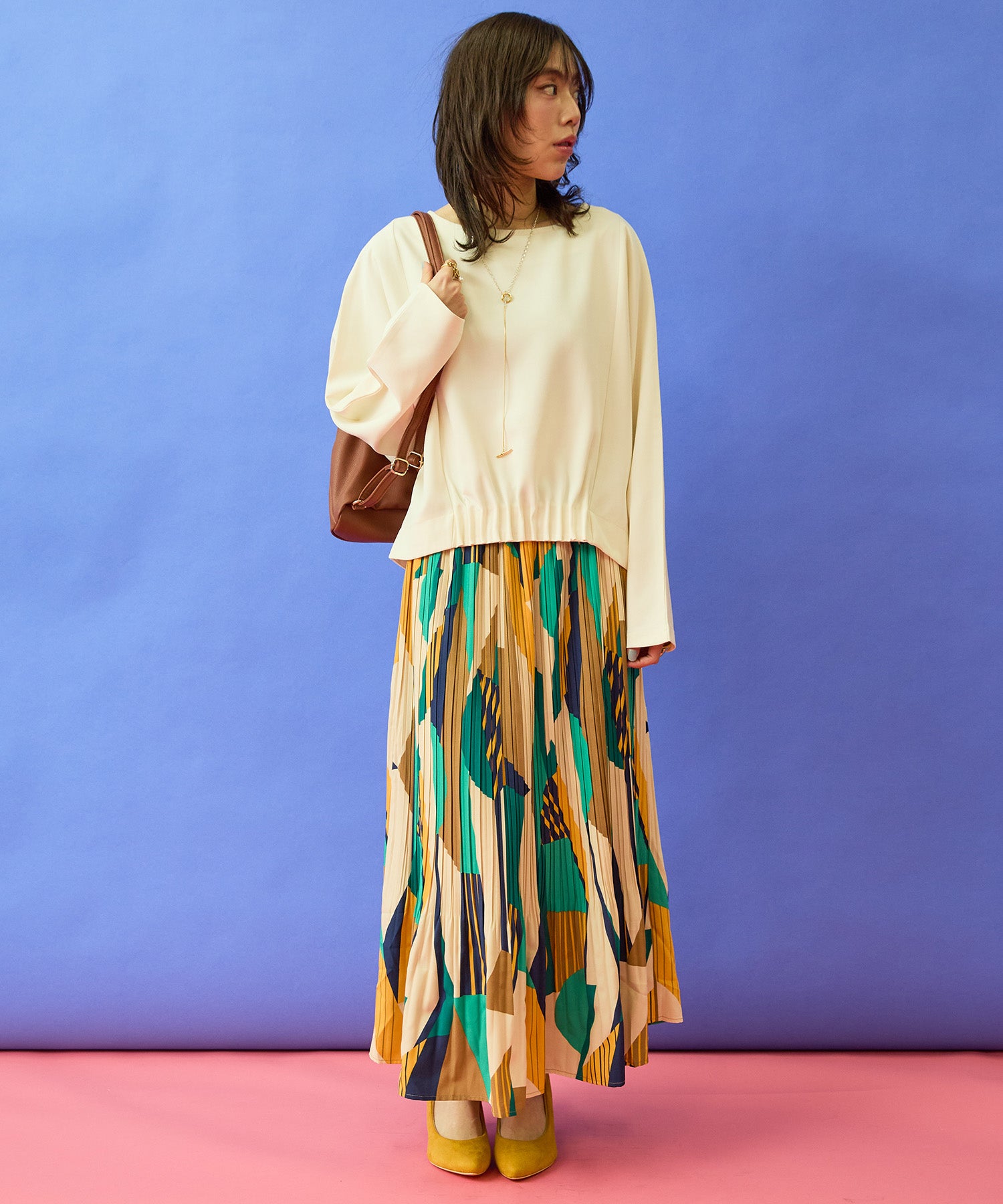 シンプルな中に奥行きが生まれ、着るだけで自然とバランスの取れた印象に。