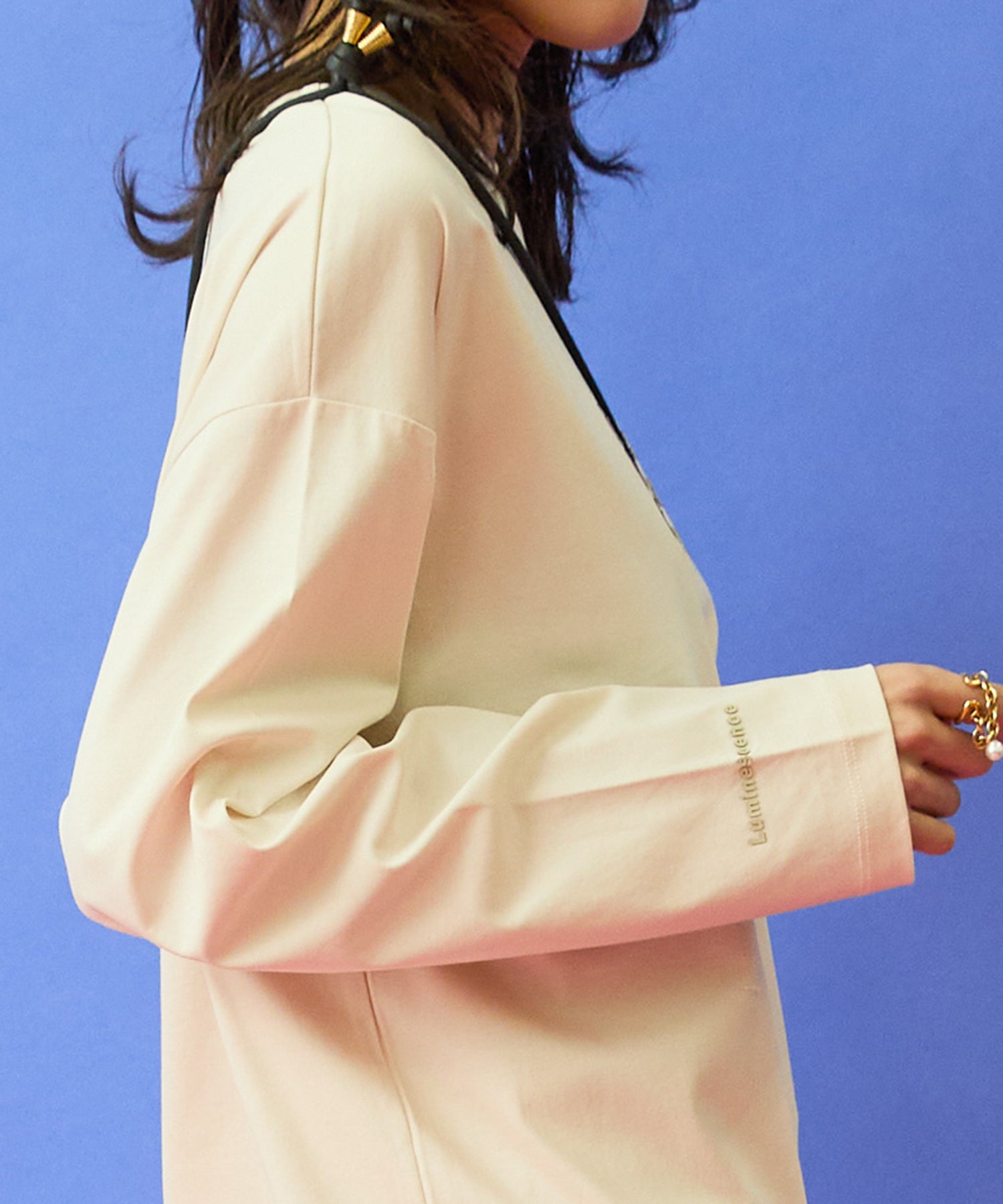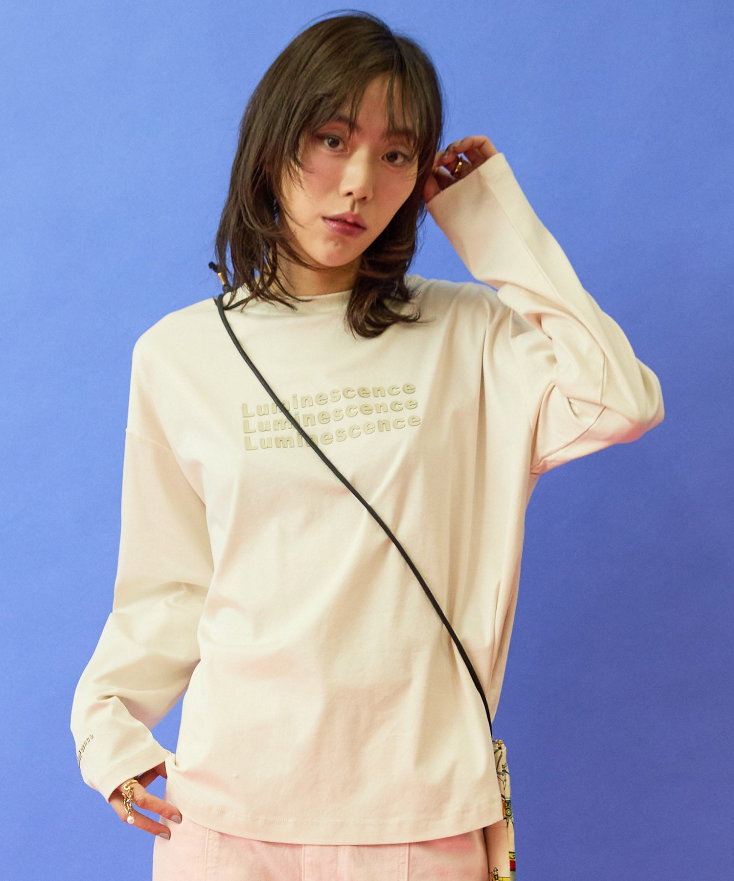 フロントに施した3Dロゴが、シンプルなロンTにさりげない存在感を添える一枚。