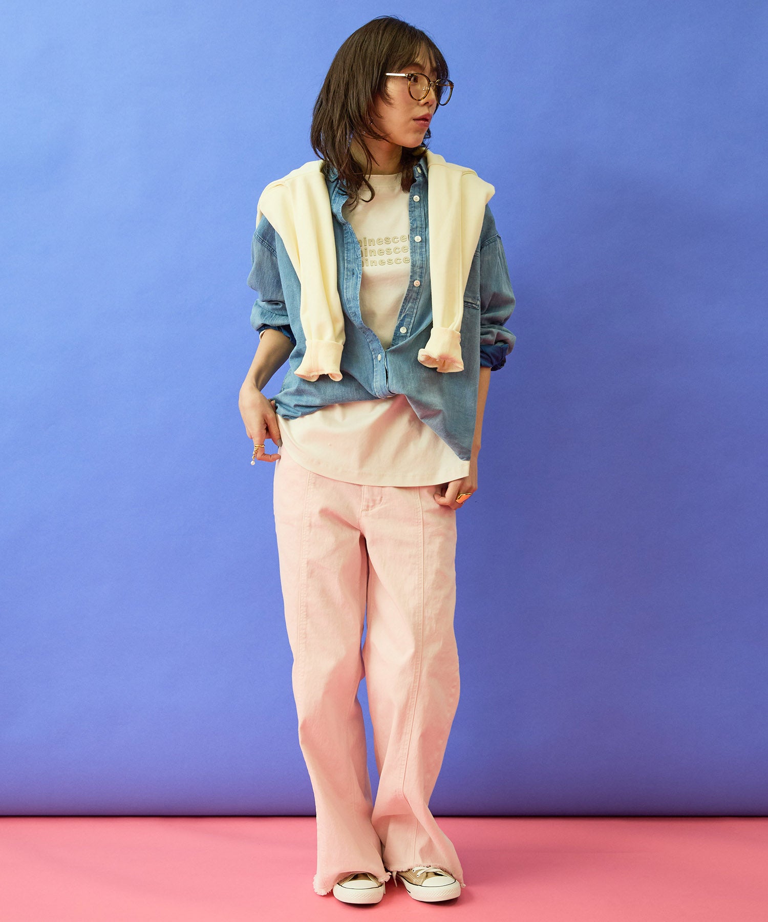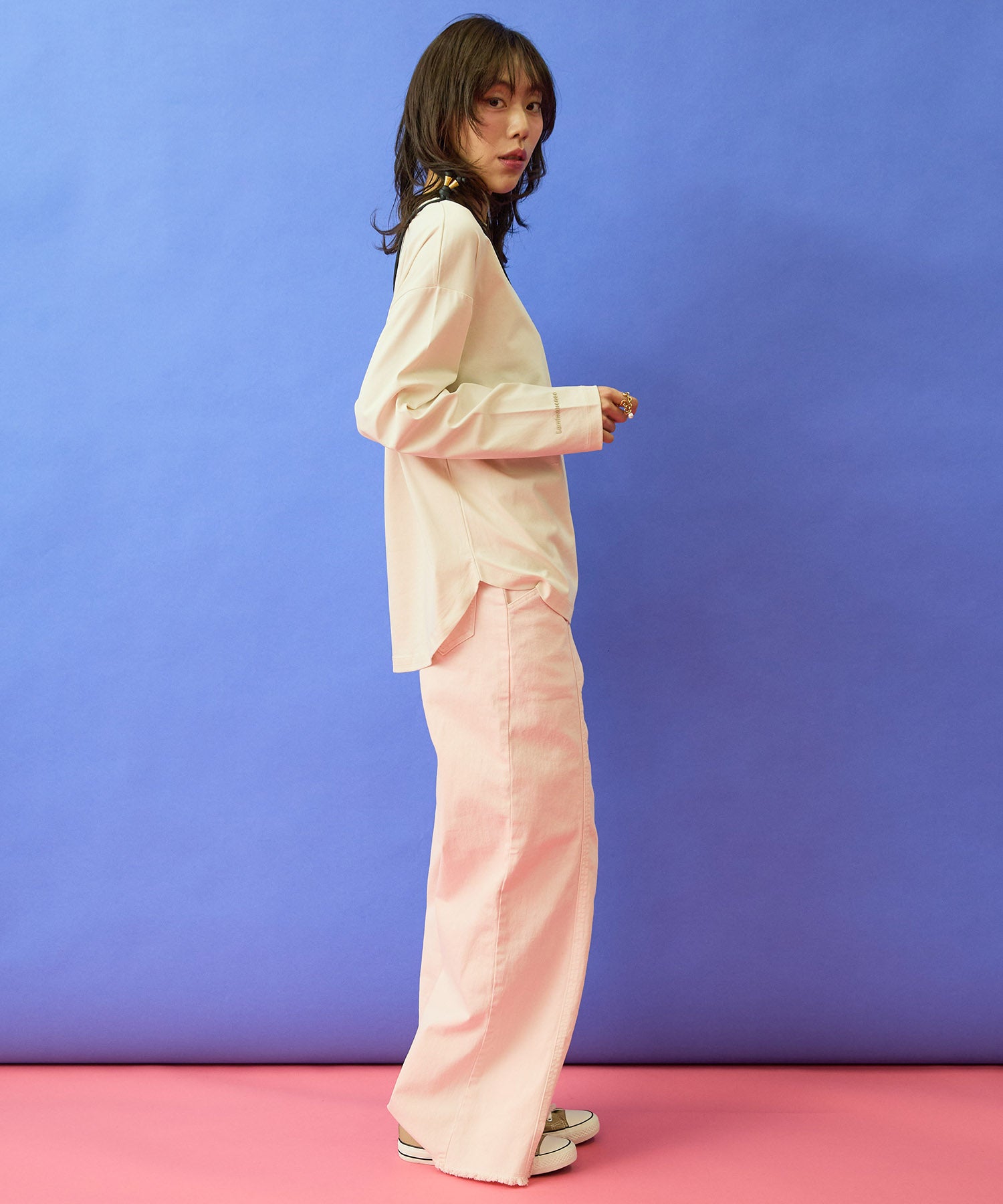 デニムやワイドパンツで、肩の力を抜いたデイリースタイルもおすすめ。