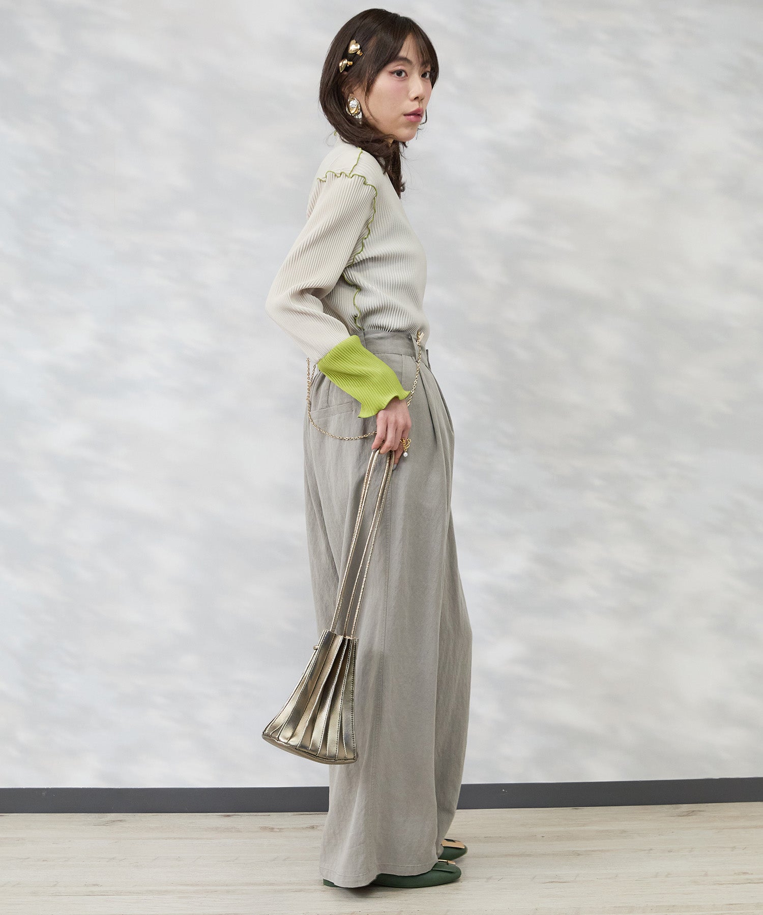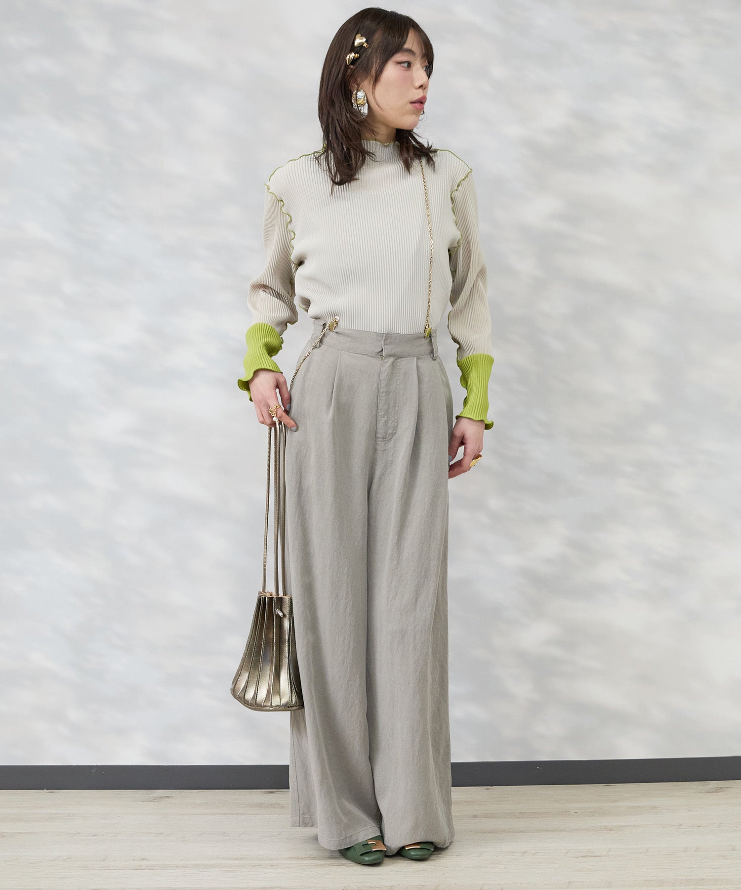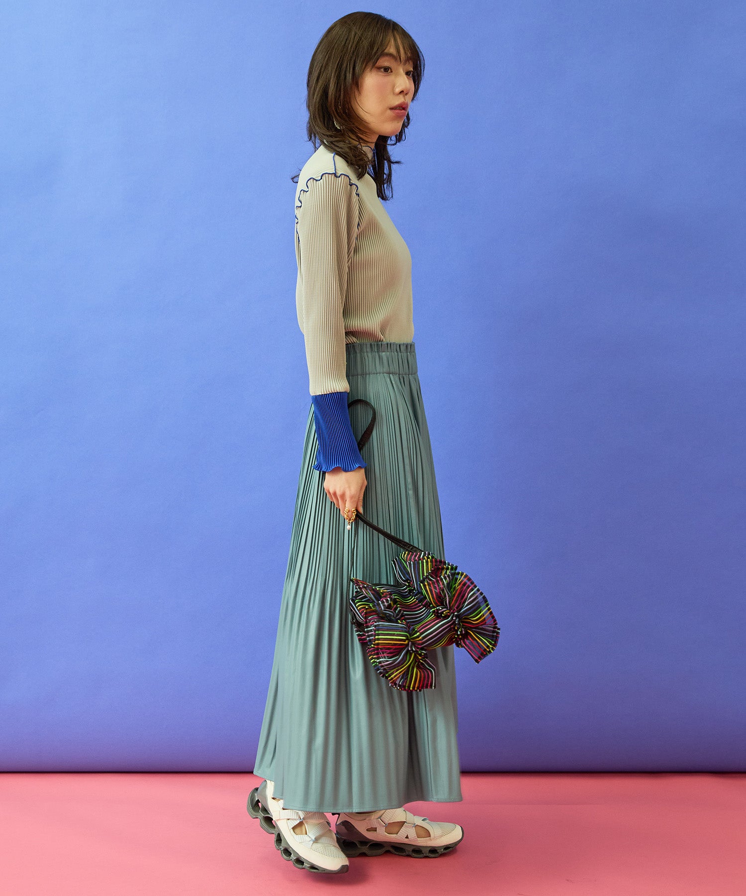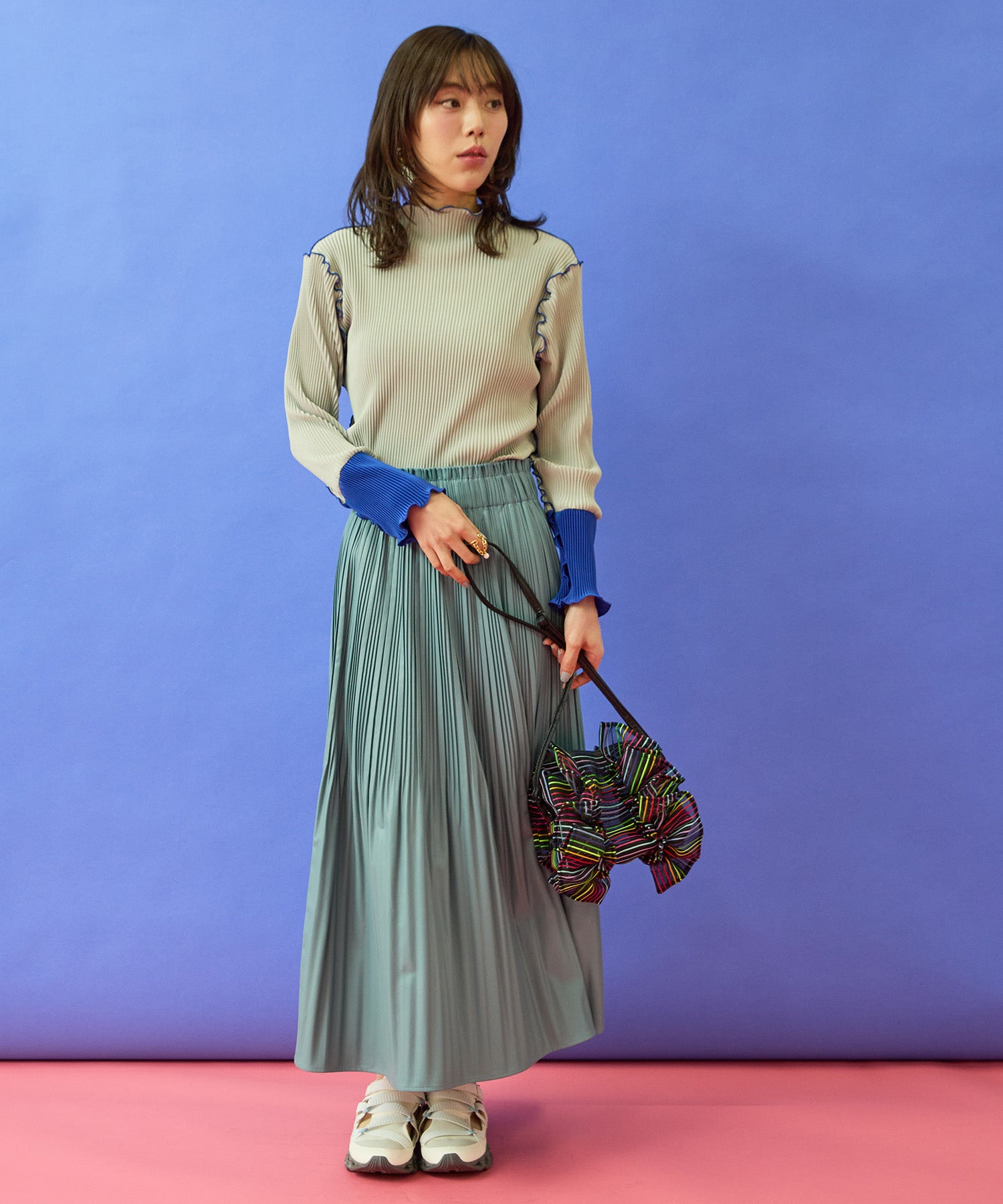 #プリーツカットソー #バイカラートップス #ちびハイネック #きれいめカジュアル #大人コーデ #春秋コーデ #JETSETSOLOPLUS