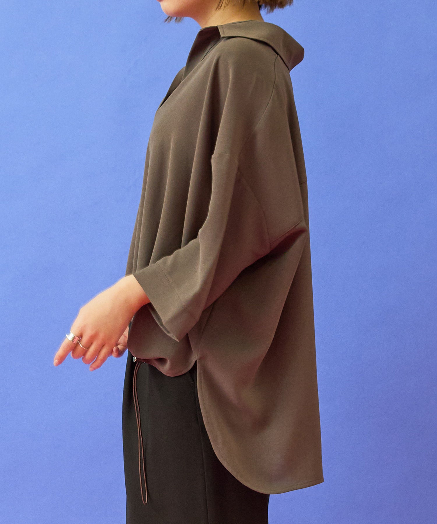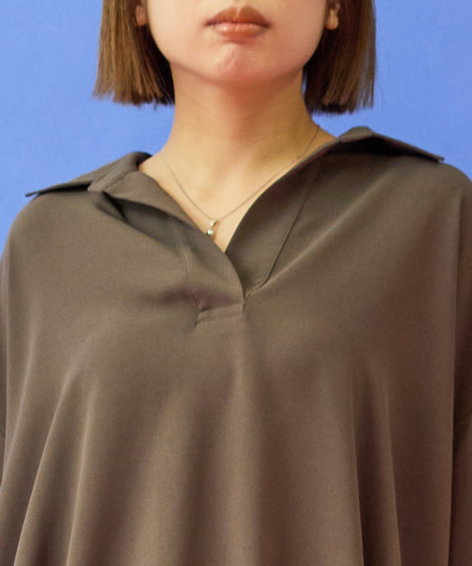 ライトジョーゼットならではの柔らかな表情が、大人の装いに自然になじむスキッパーカットソー。