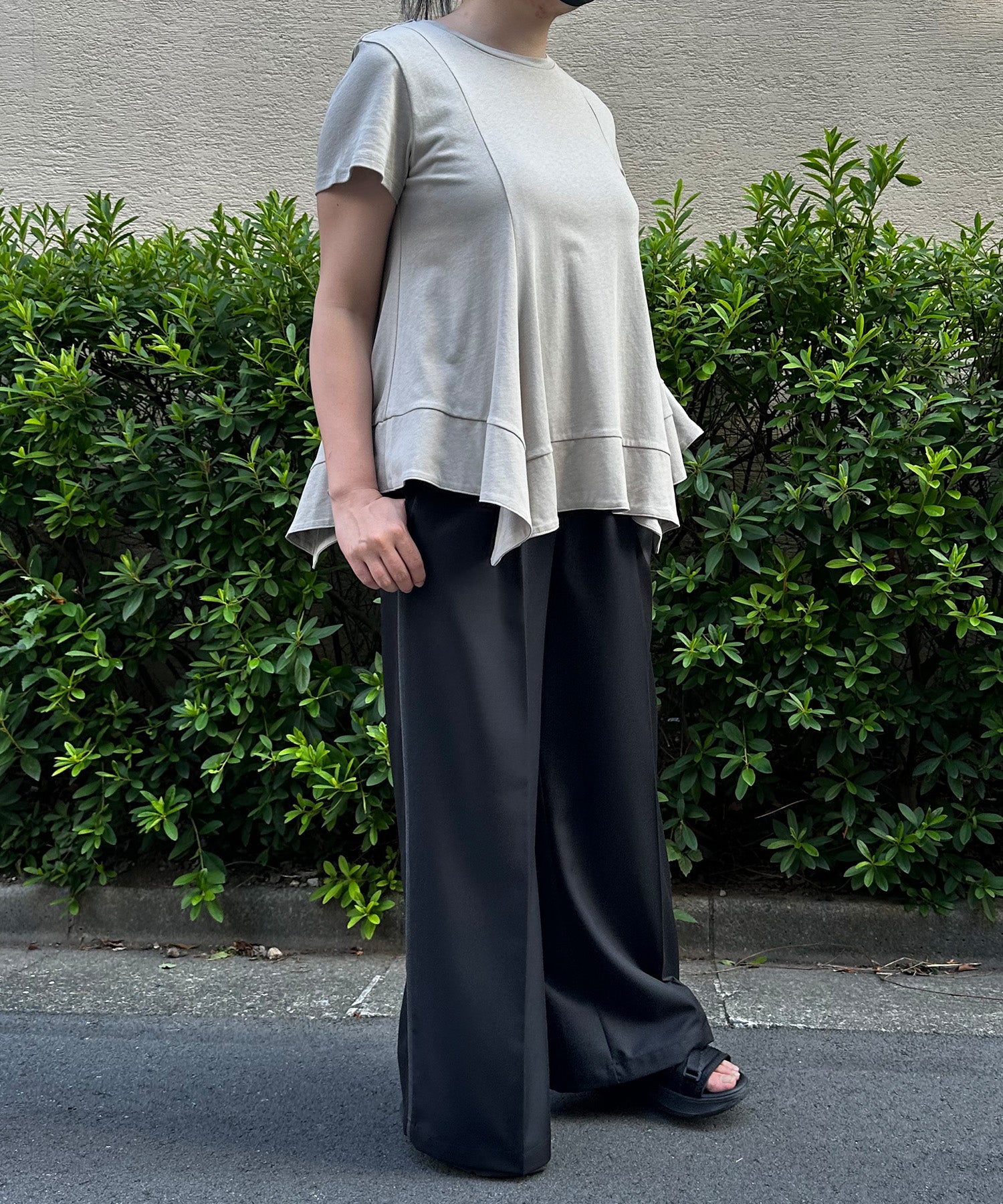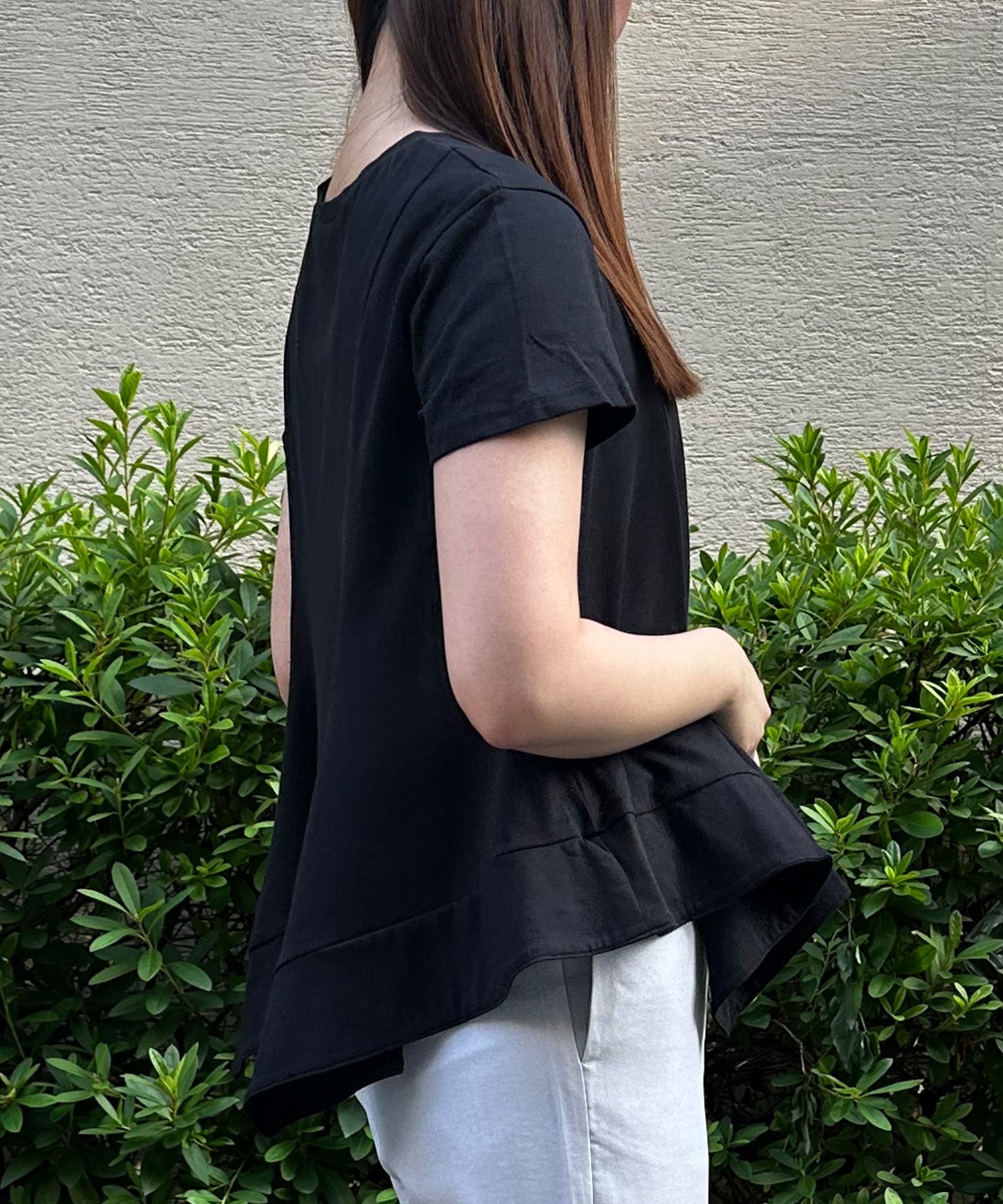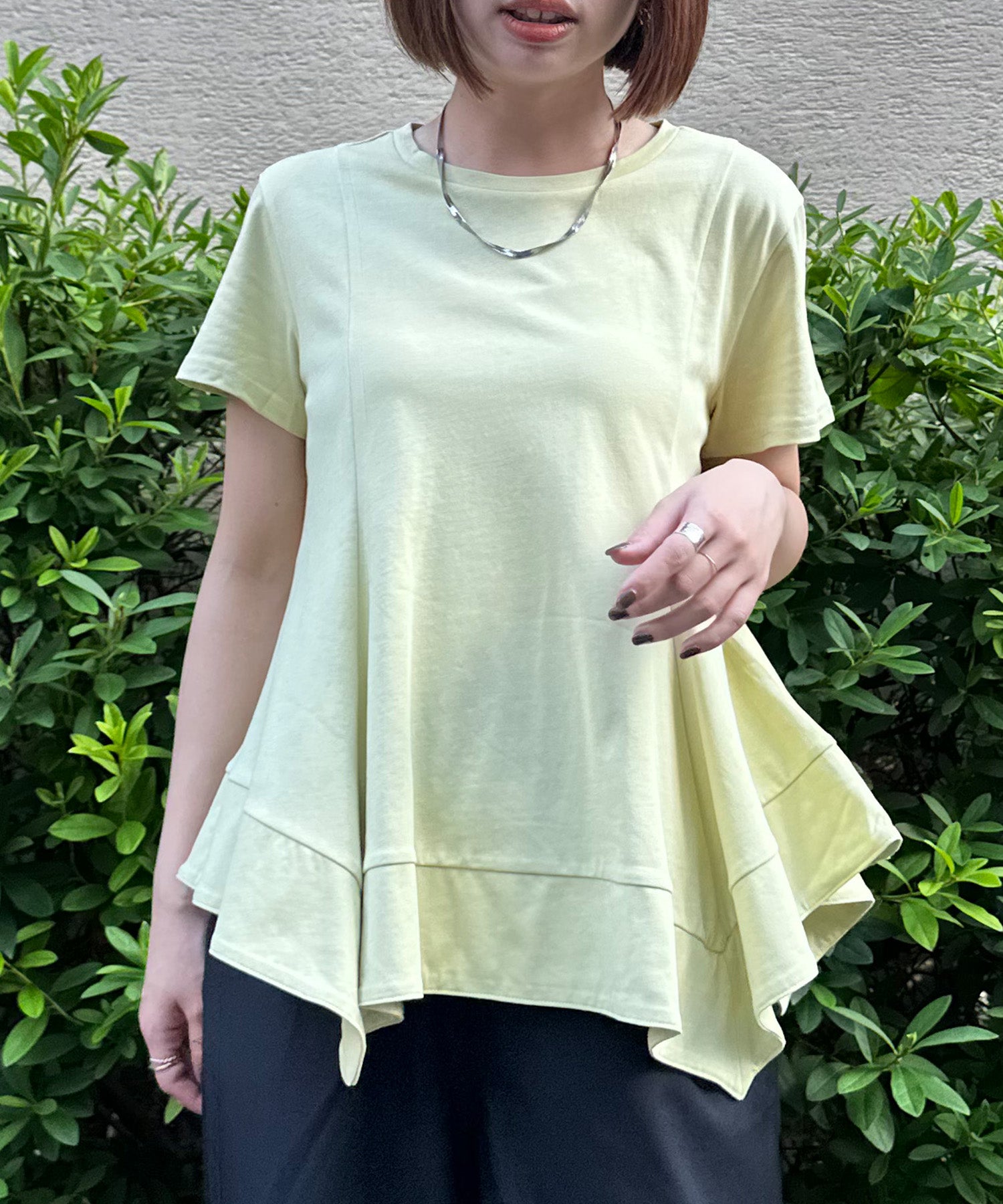 デザインへムで動きをつけた、シンプルなのに印象的な夏のカットソー。